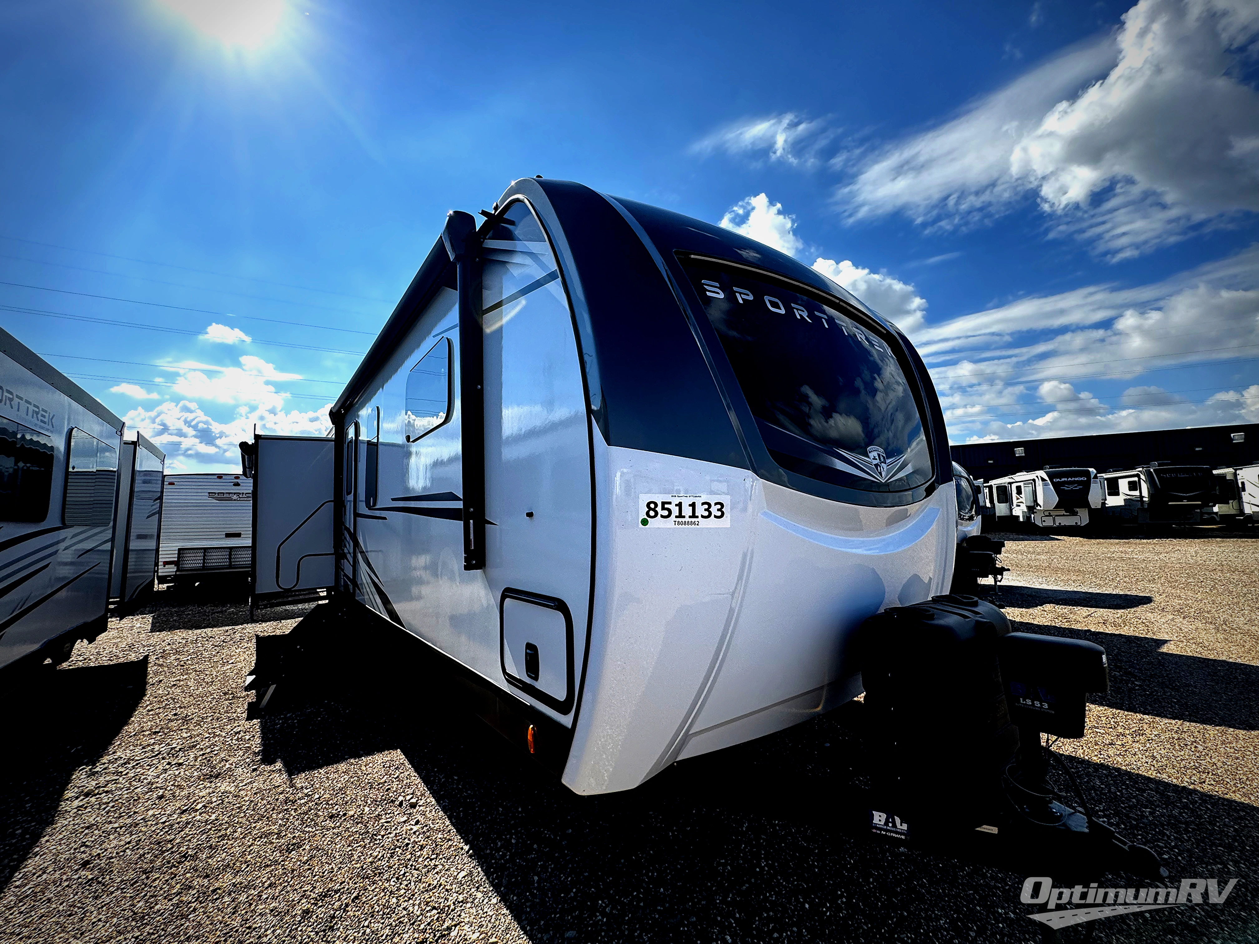 An elegant design and new features come with every one of these Venture RV SportTrek Touring Edition travel trailers! The NXG Huck bolt frame holds these units together and a walkable roof covers them. Heads will turn down the highway and at the campsite with an upgraded graphics package and a painted fiberglass front cap with integrated LED light. The exterior pass-through storage area has slam latch baggage doors with magnetic catches so you don't have to worry about them closing on you and a motion activated light to see your items clearly even at night. Luxury abounds throughout these units, especially with the mandatory Interior Luxury package which comes with solid surface kitchen countertops, designer valances with fabric nightshades, two 30" frameless fireplaces, and Beauflor wood plank flooring that is easy to clean. Come find your favorite model today!