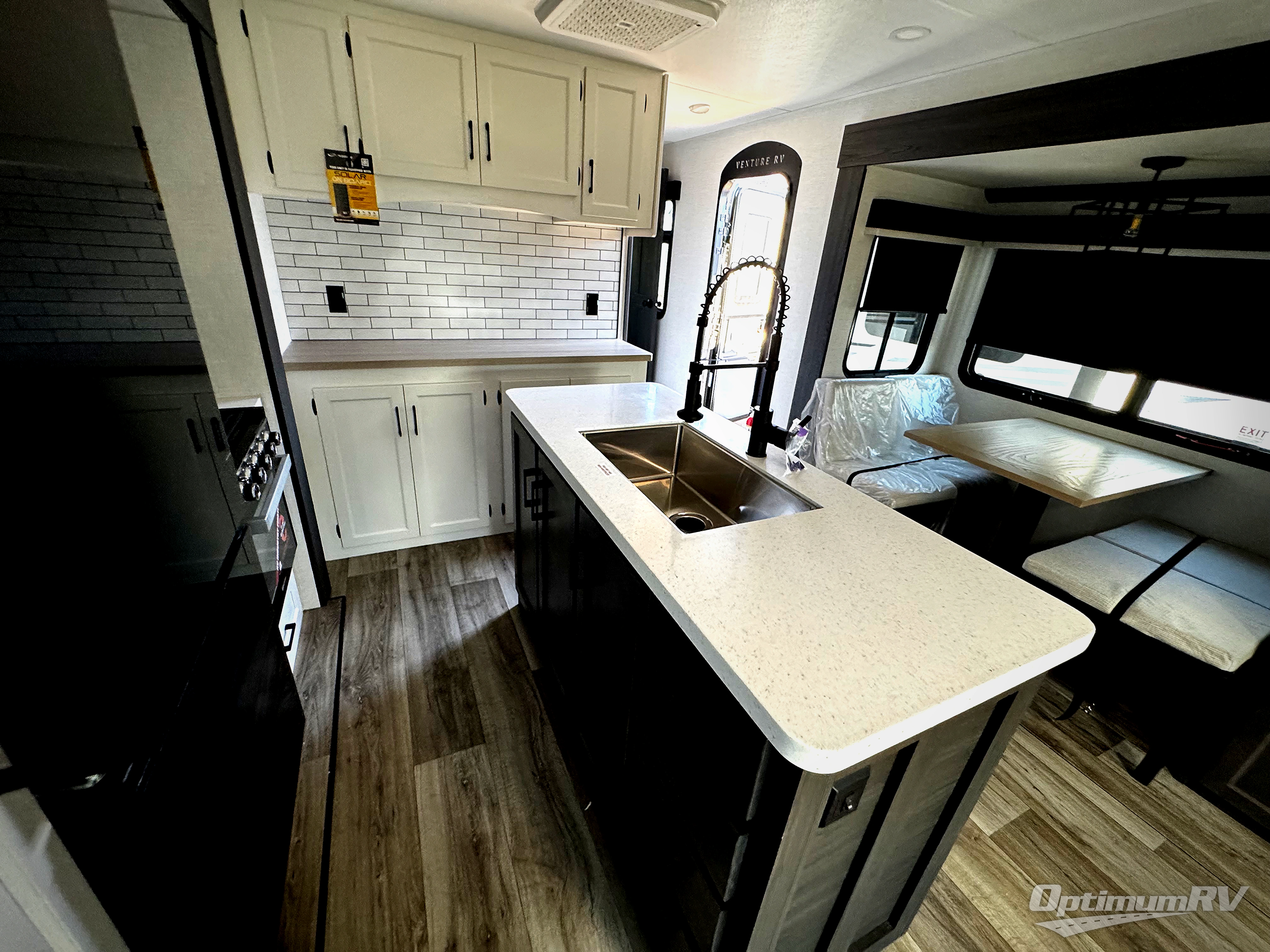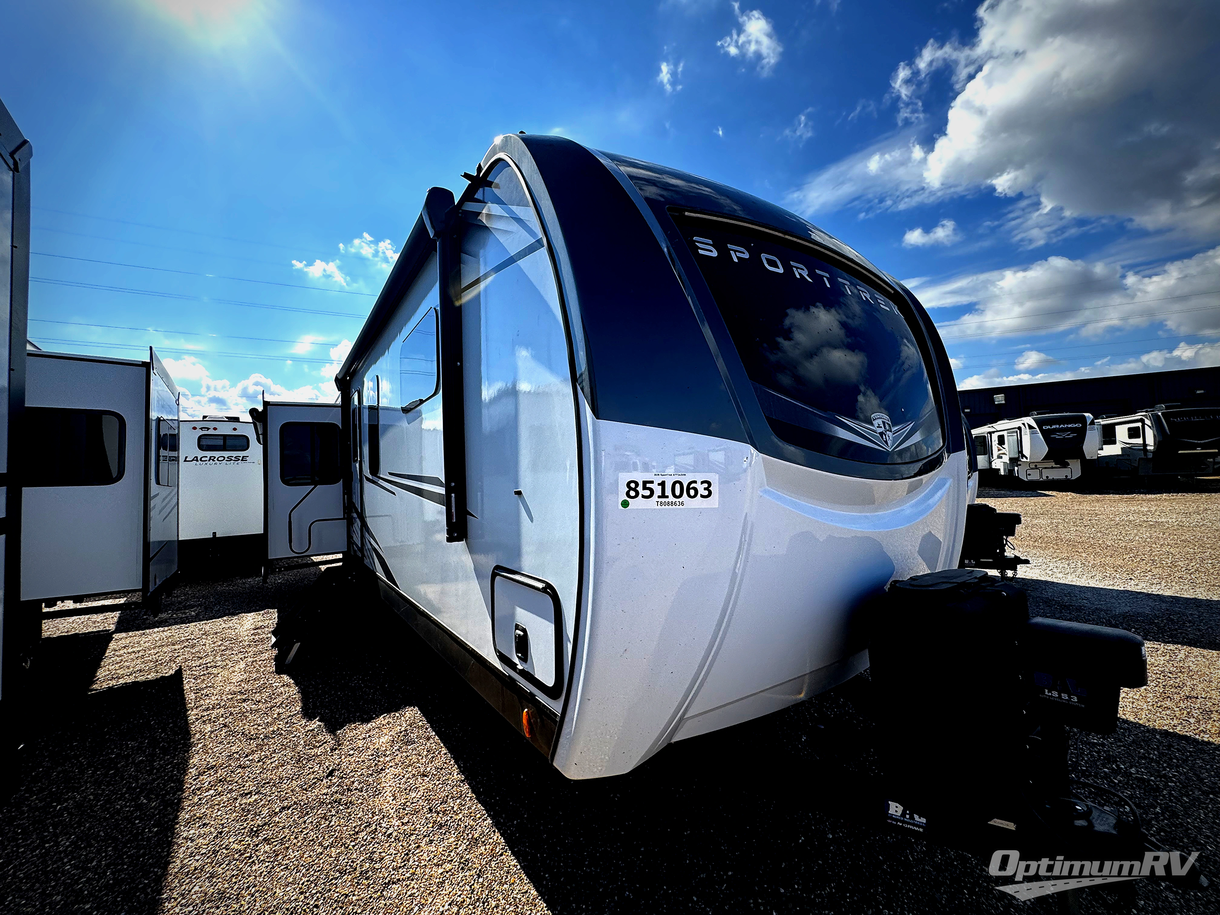 An elegant design and new features come with every one of these Venture RV SportTrek Touring Edition travel trailers! The NXG Huck bolt frame holds these units together and a walkable roof covers them. Heads will turn down the highway and at the campsite with an upgraded graphics package and a painted fiberglass front cap with integrated LED light. The exterior pass-through storage area has slam latch baggage doors with magnetic catches so you don't have to worry about them closing on you and a motion activated light to see your items clearly even at night. Luxury abounds throughout these units, especially with the mandatory Interior Luxury package which comes solid surface kitchen countertops, designer valances with fabric nightshades, two 30" frameless fireplaces, and Beauflor wood plank flooring that is easy to clean. Come find your favorite model today!