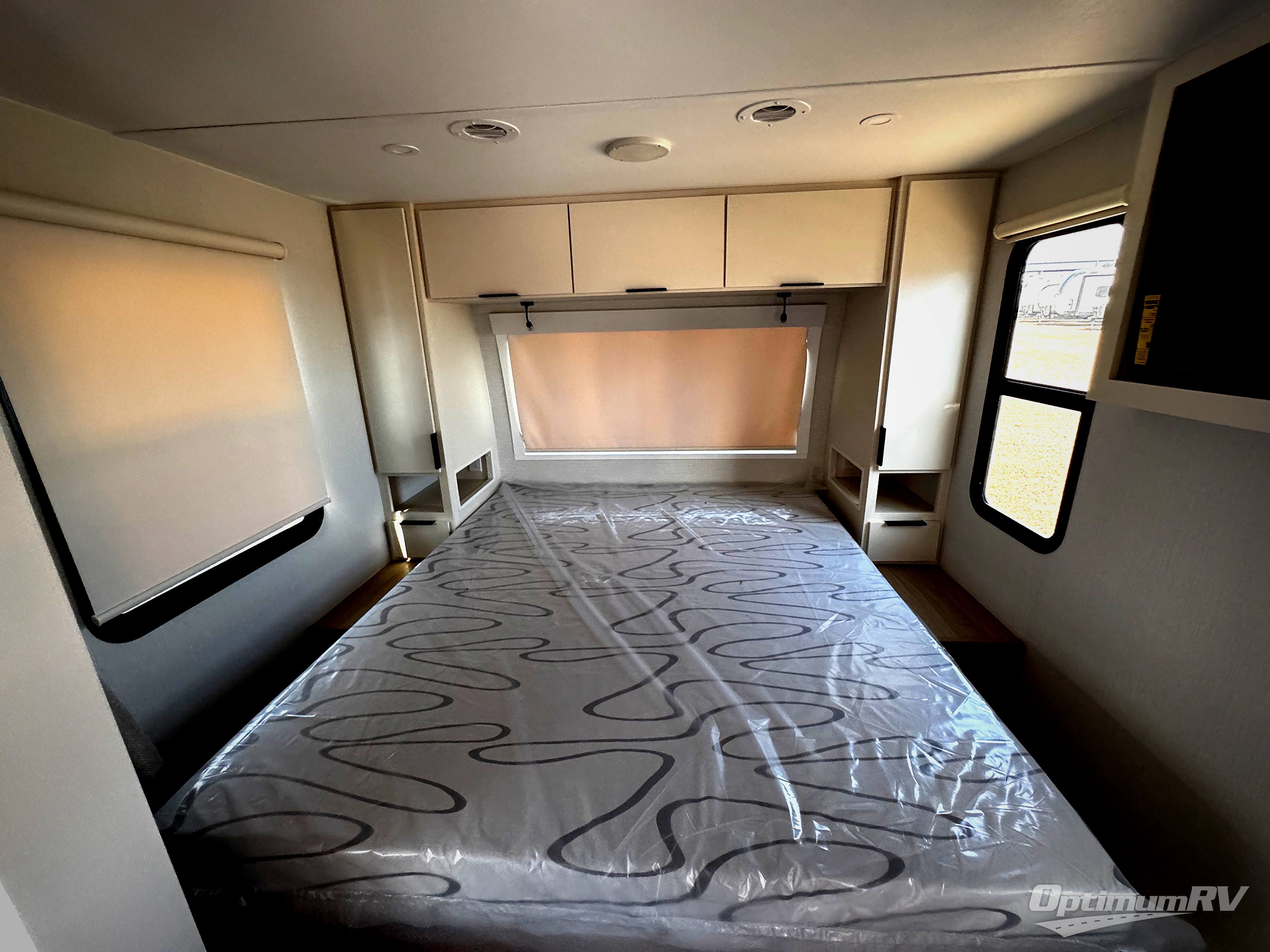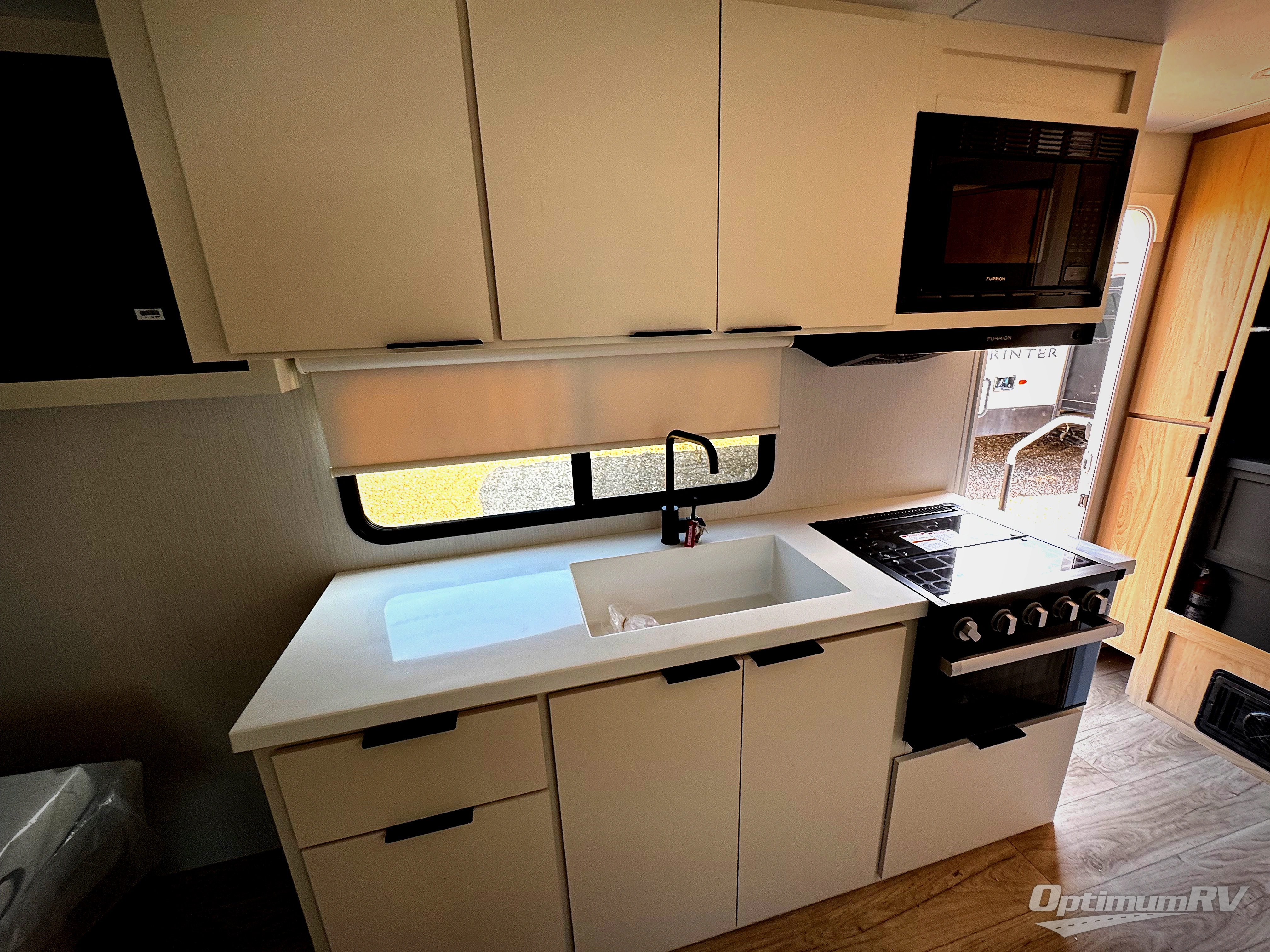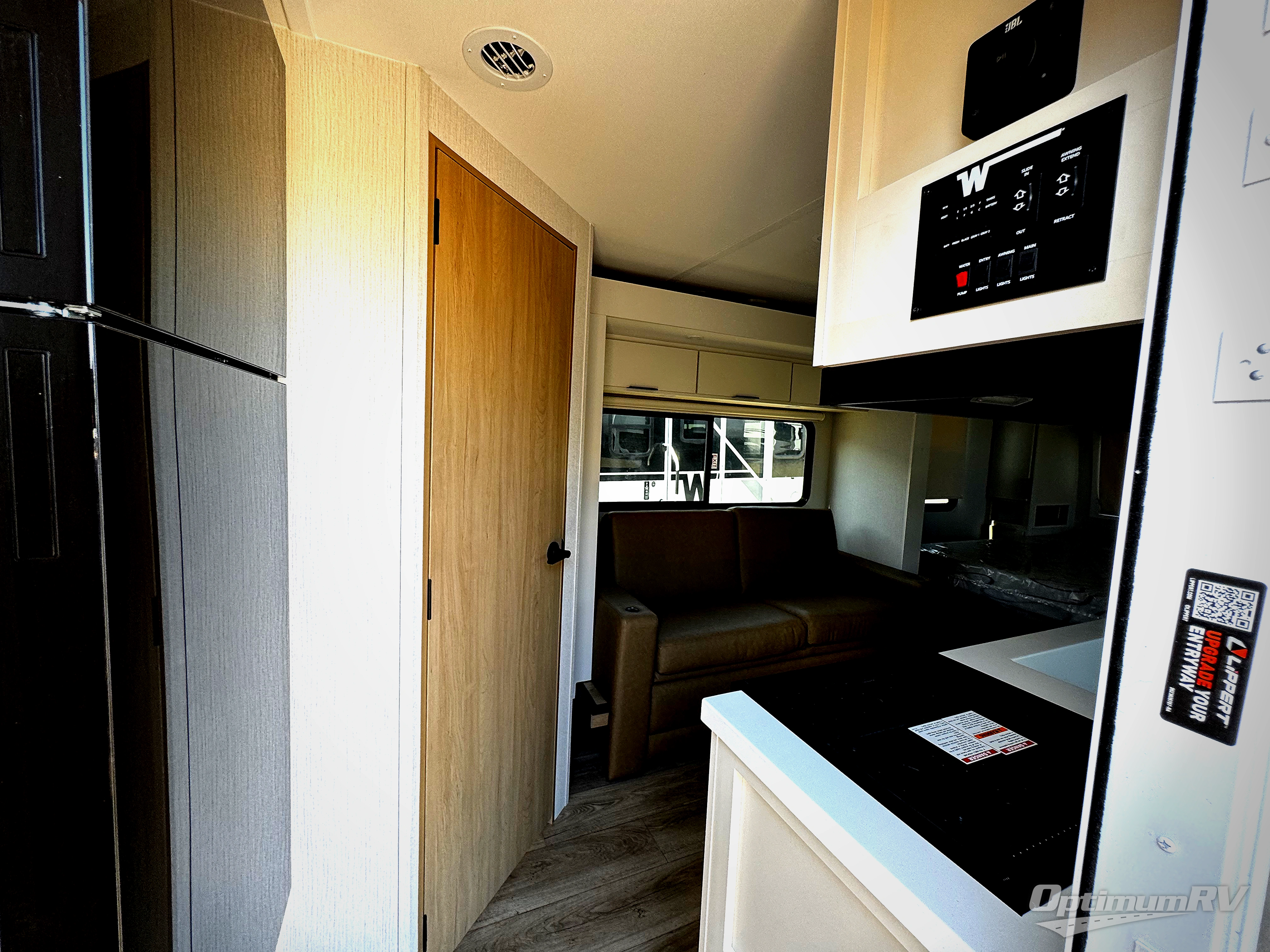 With any Thrive travel trailer by Winnebago, you can camp with functionality, comfort, and convenience! The large front viewing window will be the first thing that catches your eye, and the fiberglass sidewalls with Azdel Onboard provide a durable trailer made to last. There is also an exterior ladder, along with front radius profile lights, power stabilizer jacks, and a powered awning with LED lighting to name a few exterior features. You will stay powered up by the 30-amp power cord and 200-watt solar panel, plus there is a tankless water heater for endless hot showers. Inside, you'll love the custom Winnebago furniture, carpetless side outs, molded fiberglass countertops, and residential recessed ceiling lights to keep your space well lit!