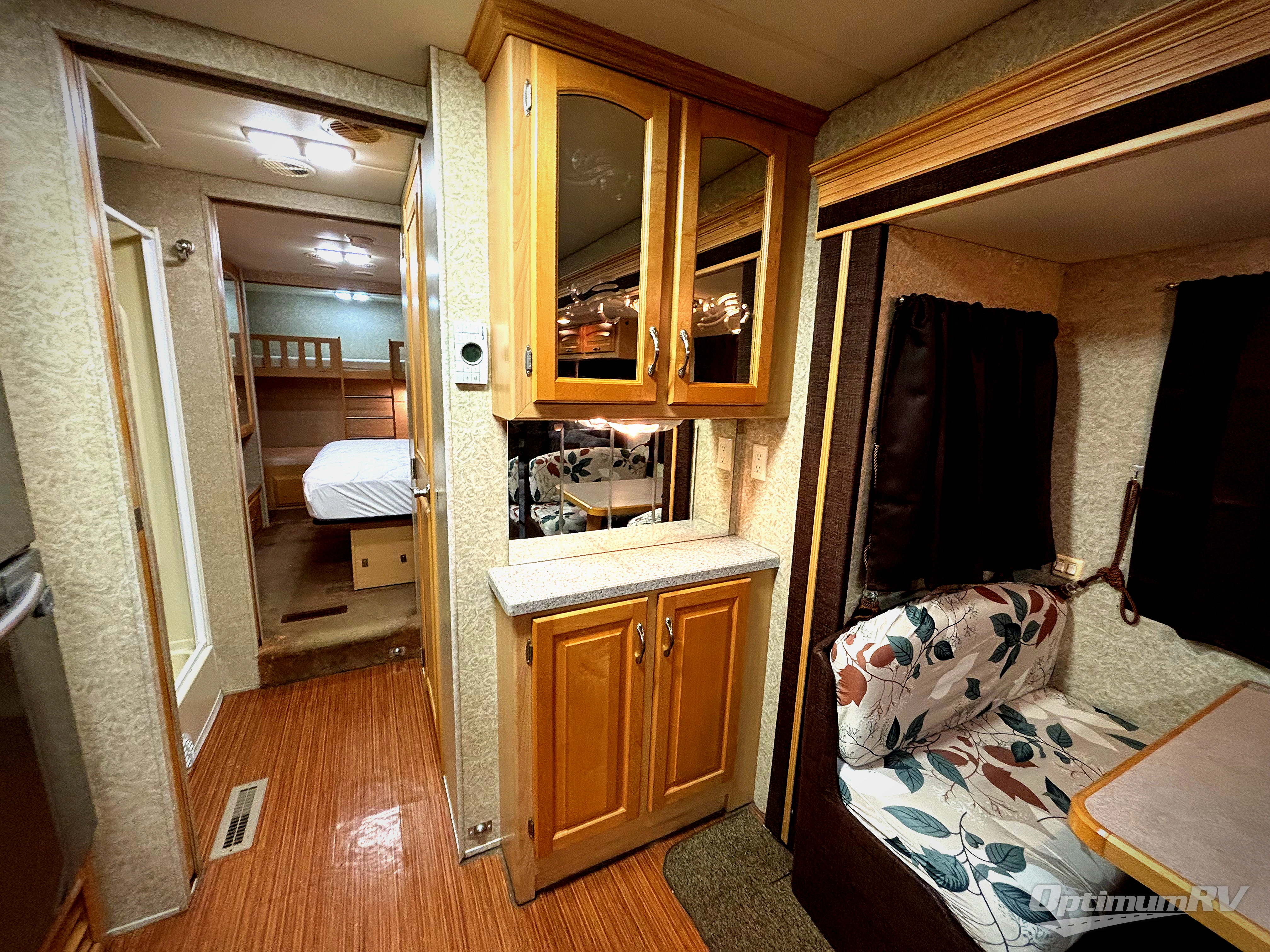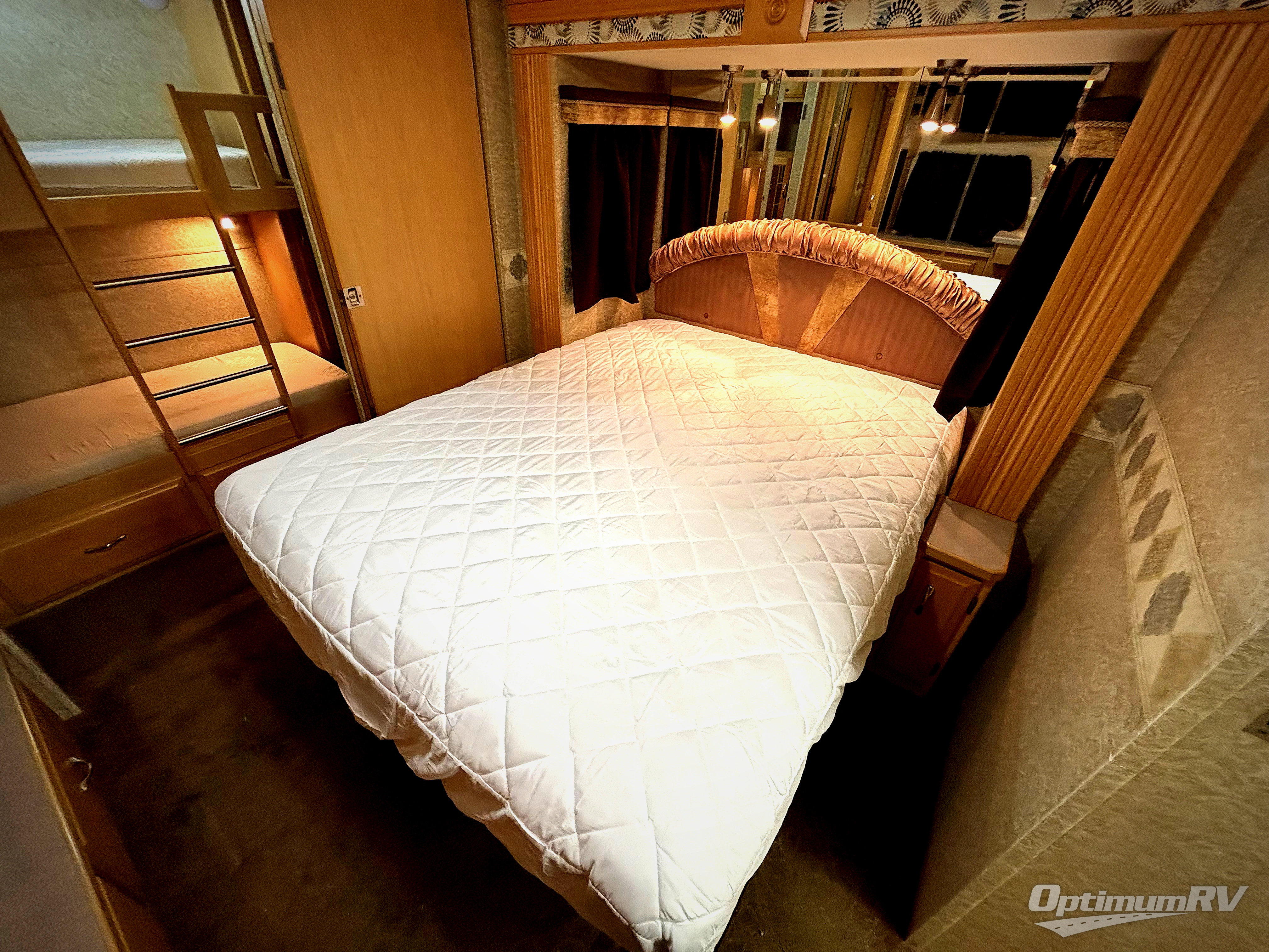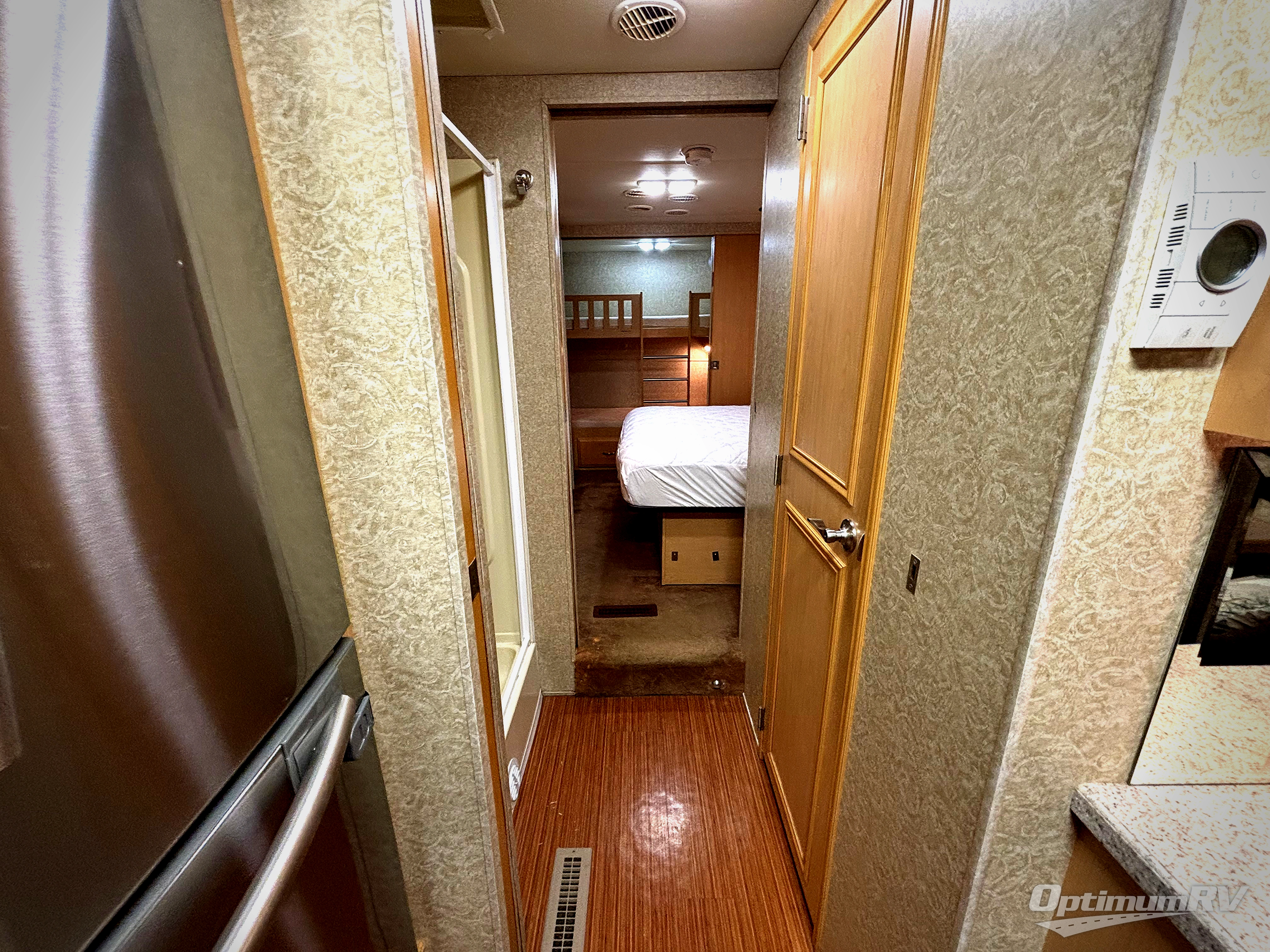 Double Slide, Rear Bunkhouse w/Wardobes & TV, Rear Side Queen Bed Slide, Chest of Drawers Below Shirt Wardrobe & TV, Lav., Shower, Seperate Stool Room w/Linen Cab., & Lav., Dry Sink, Booth Dinette & Sofa Slideout, Recliner, TV Above Cab Area, Double Kitchen Sink, Refrig., 3 Burner Range & More.