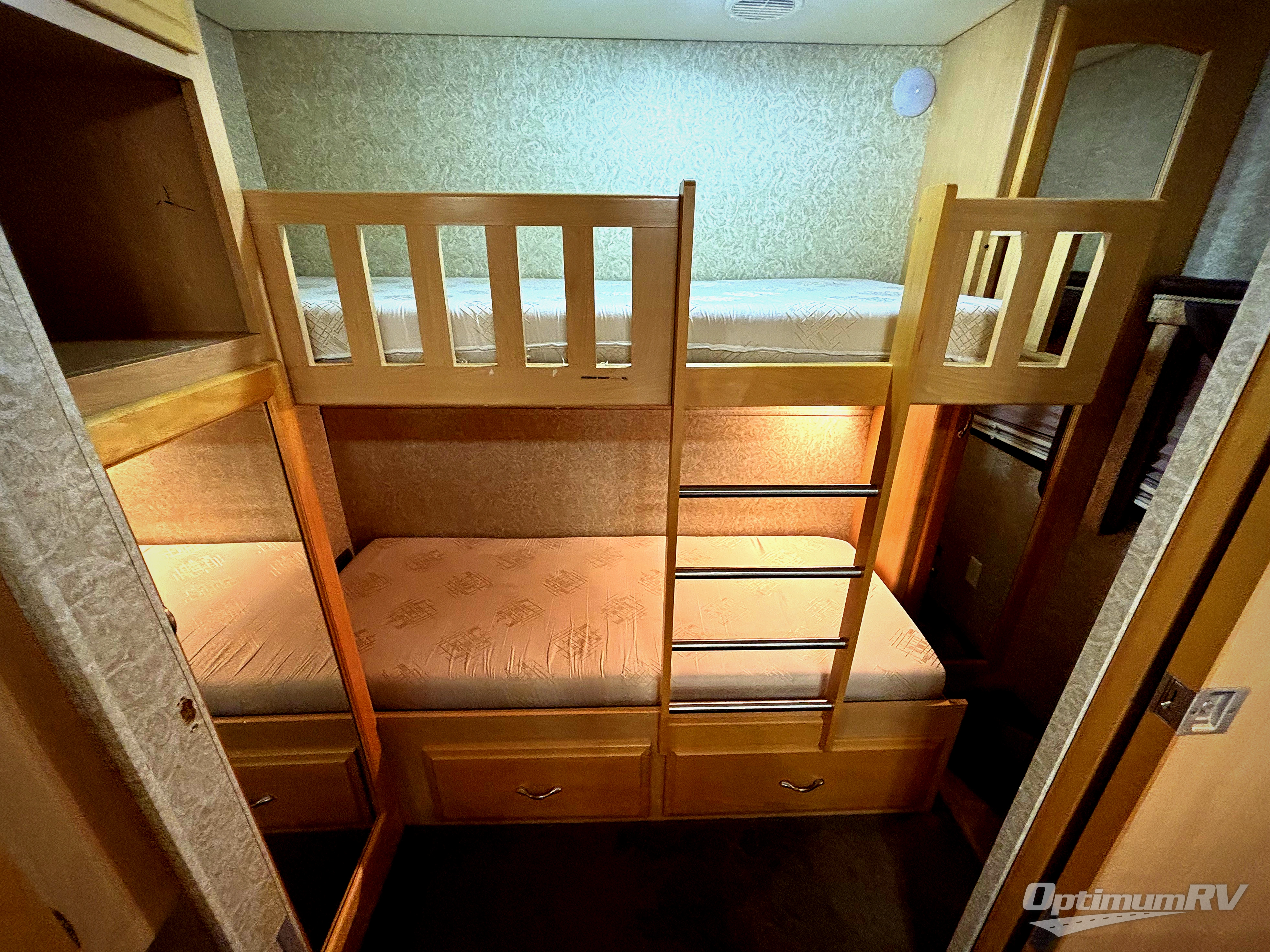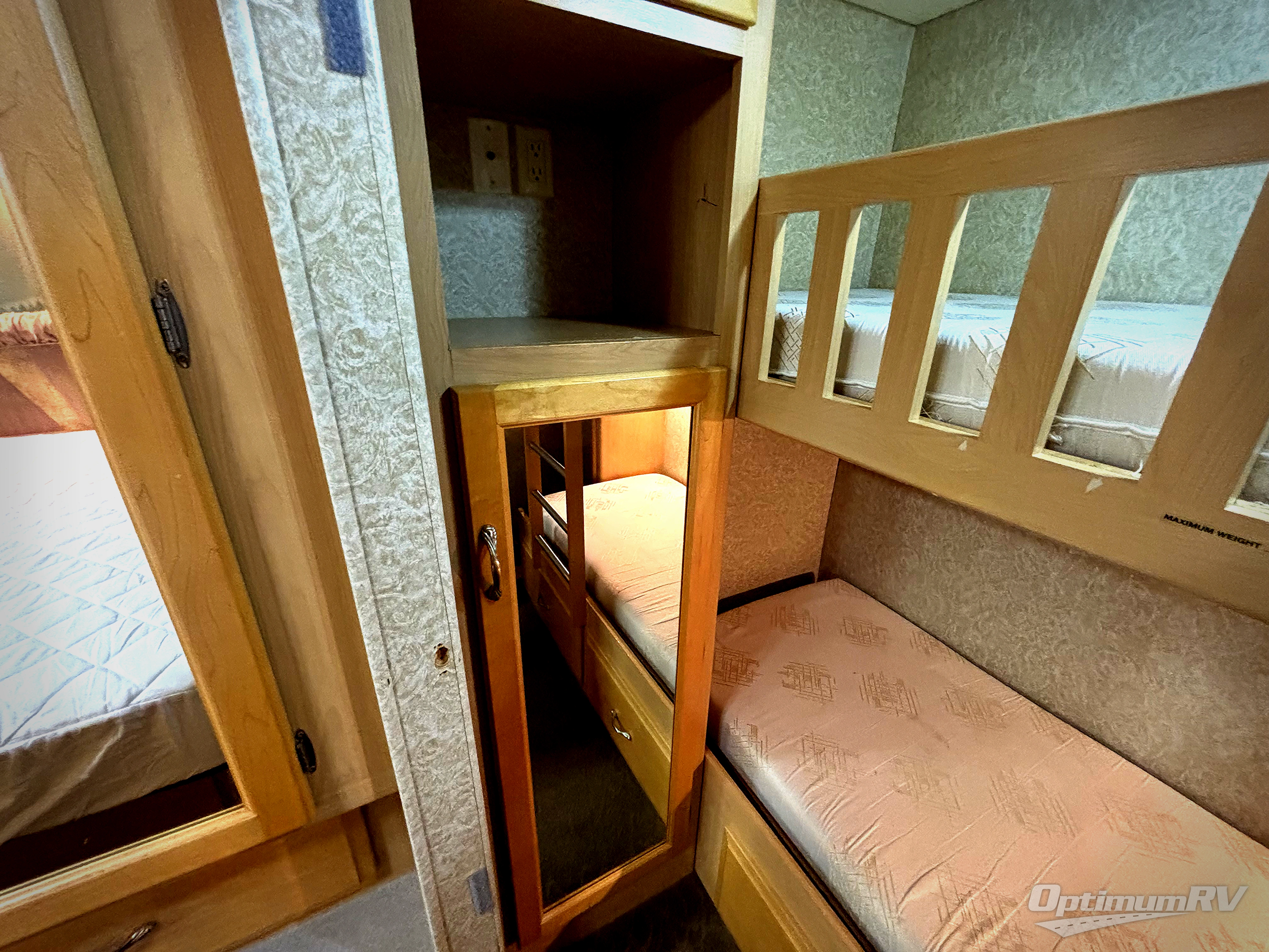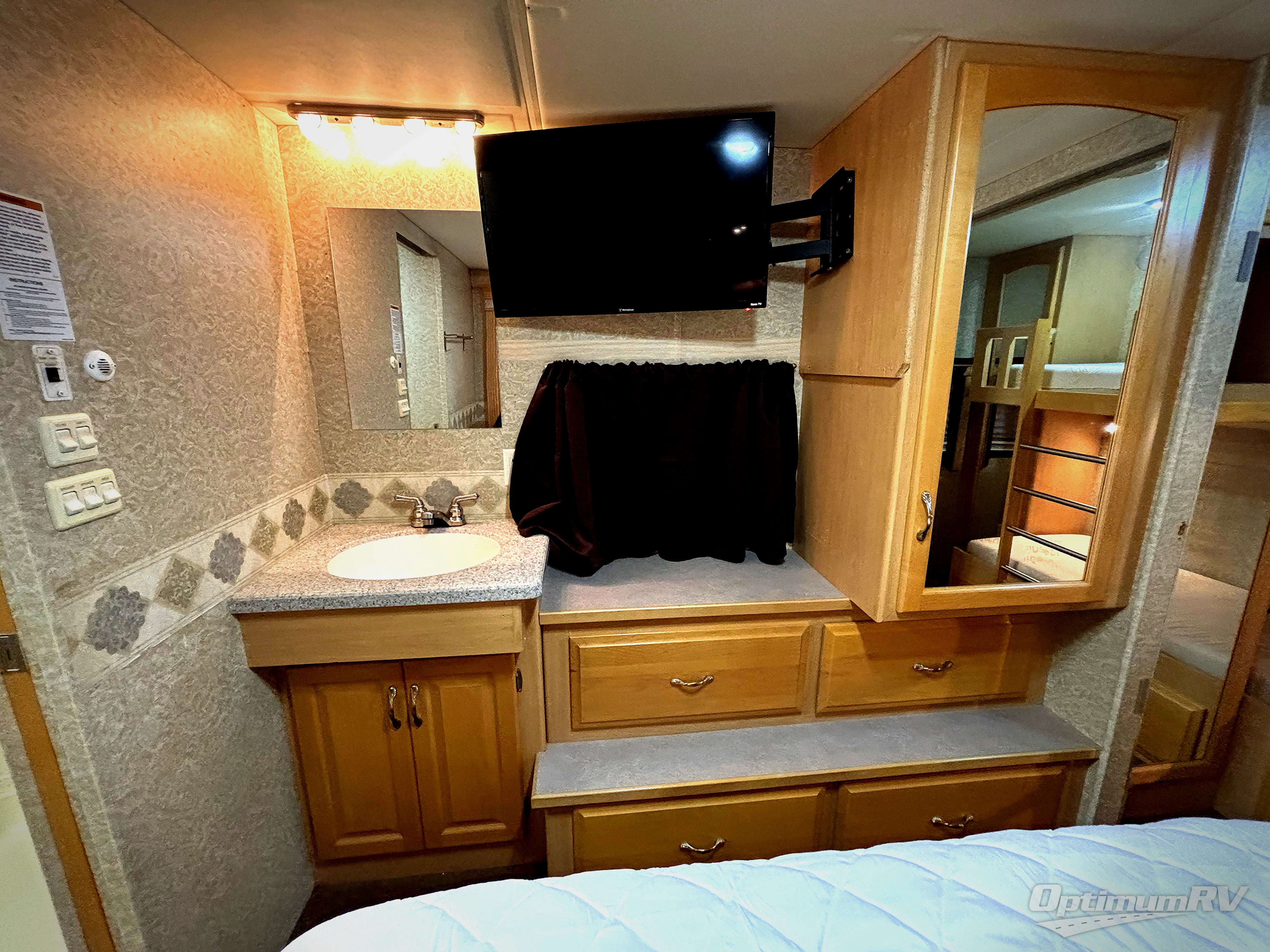 Double Slide, Rear Bunkhouse w/Wardobes & TV, Rear Side Queen Bed Slide, Chest of Drawers Below Shirt Wardrobe & TV, Lav., Shower, Seperate Stool Room w/Linen Cab., & Lav., Dry Sink, Booth Dinette & Sofa Slideout, Recliner, TV Above Cab Area, Double Kitchen Sink, Refrig., 3 Burner Range & More.