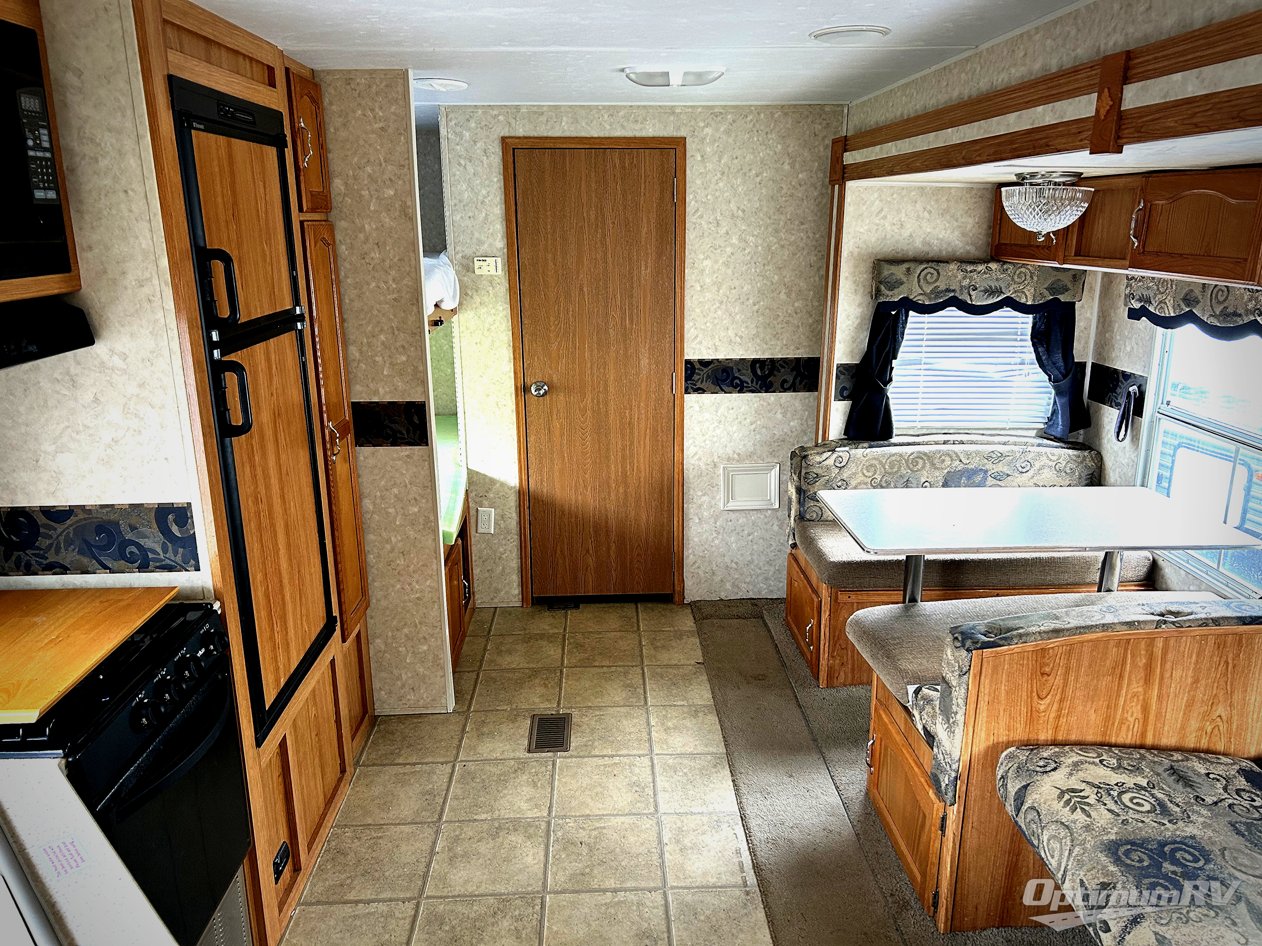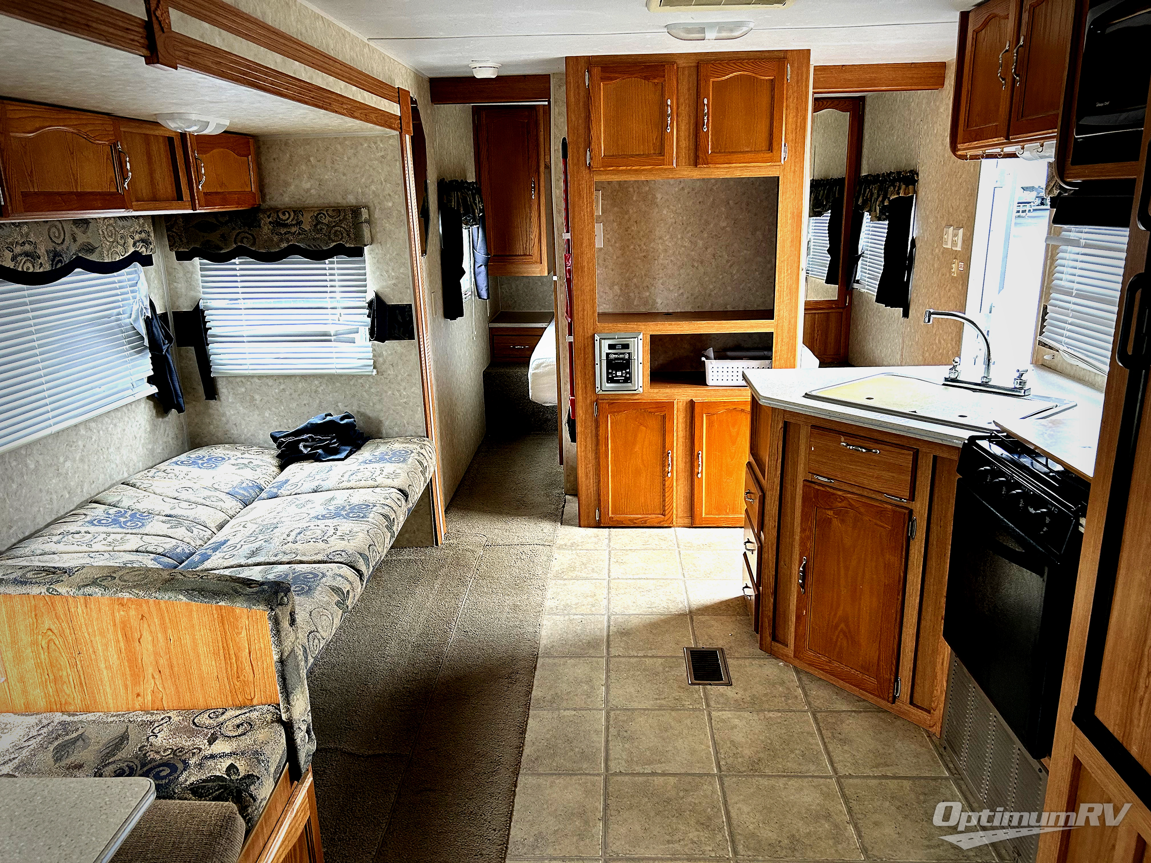 Single Slide, Rear Bath w/Lav., Tub/Shower, Rear Corner Bunk Beds, Exterior Storage, Booth Dinette & Sofa Sleeper Slideout, Ent. Center, Double Kitchen Sink, 3 Burner Range, Refrigerator, Pantry, Overhead Cabinets, Front Queen Bed w/Wardrobe, Night Stand w/Shirt Closet Above & More.