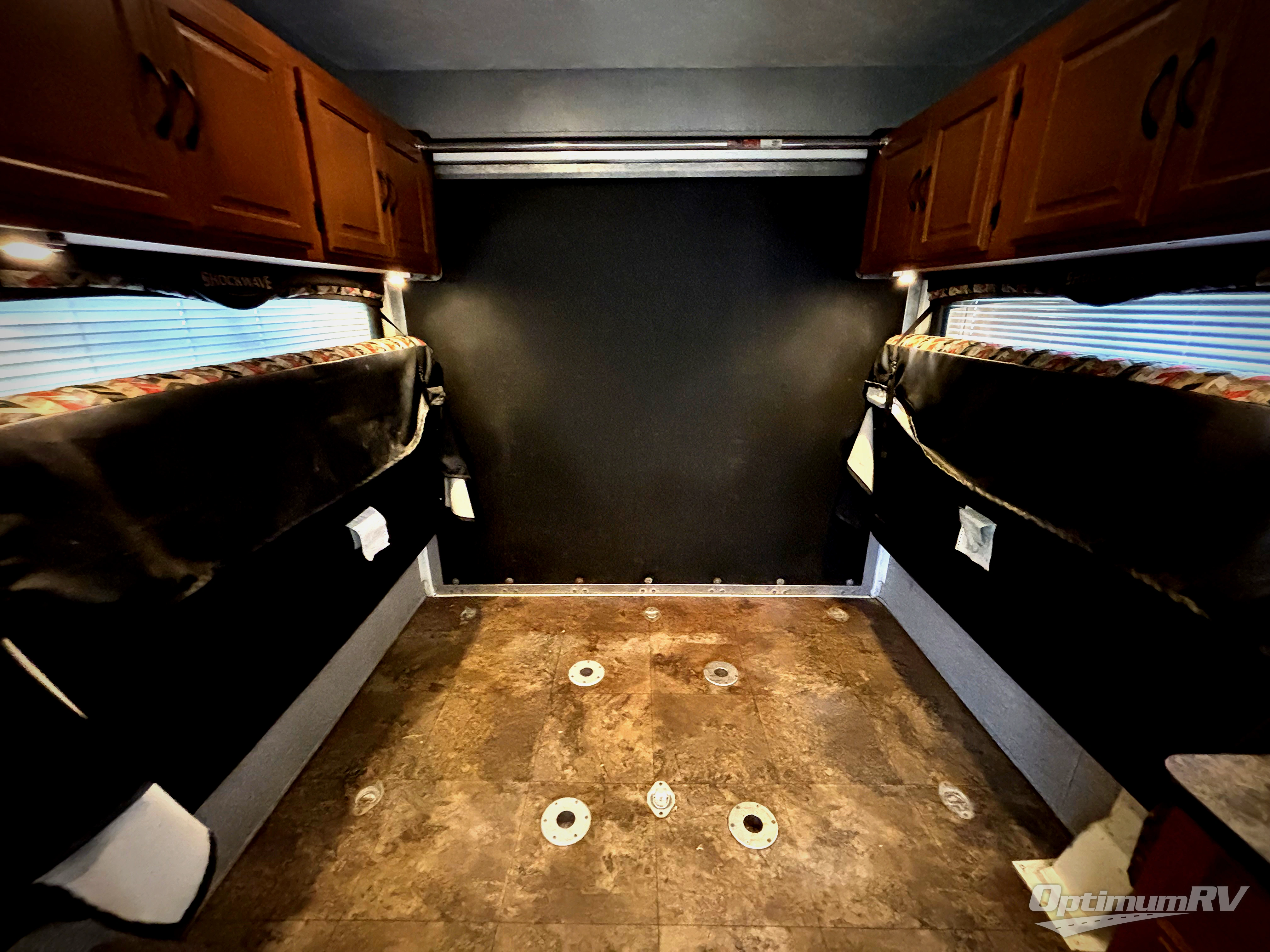 Shockwave Toyhauler Travel Trailer w/Rear 6 1/2' East Lift Sport Ramp, Fold Down Sofa (Two) w/2 Center Pedestal Tables, Overhead Cabinet, Ext. Fuel Station, Dbl. Kitchen Sink, 3 Burner Range, Refrig., Overhead Cab., Opt. LCD TV w/DVD, Pantry, Private Toilet Area w/Tub, Lavatory, Overhead Cab., Front Bed w/Nightstand, Wardrobe, Pass Thru Storage, Front Storage Rack & More.