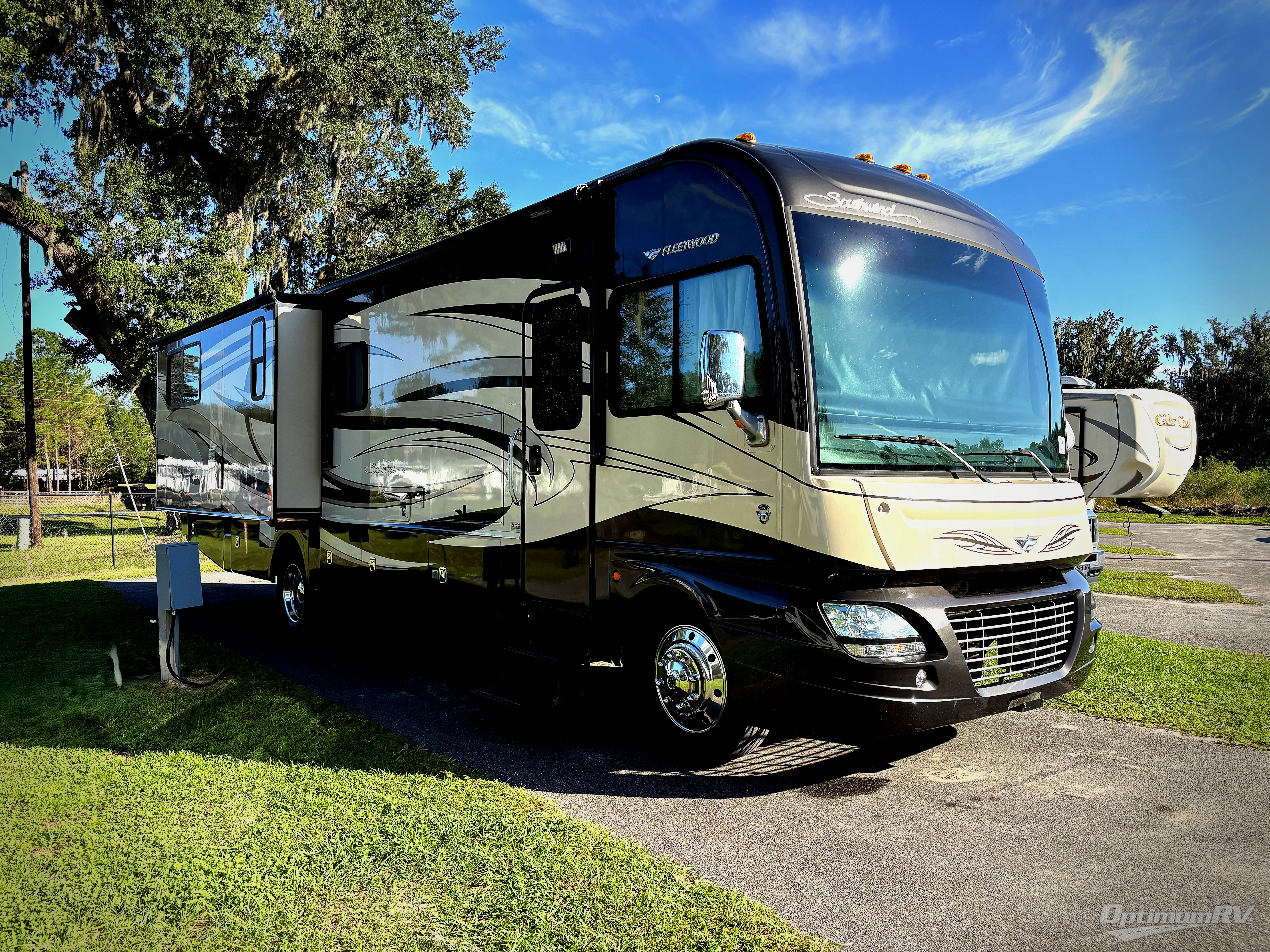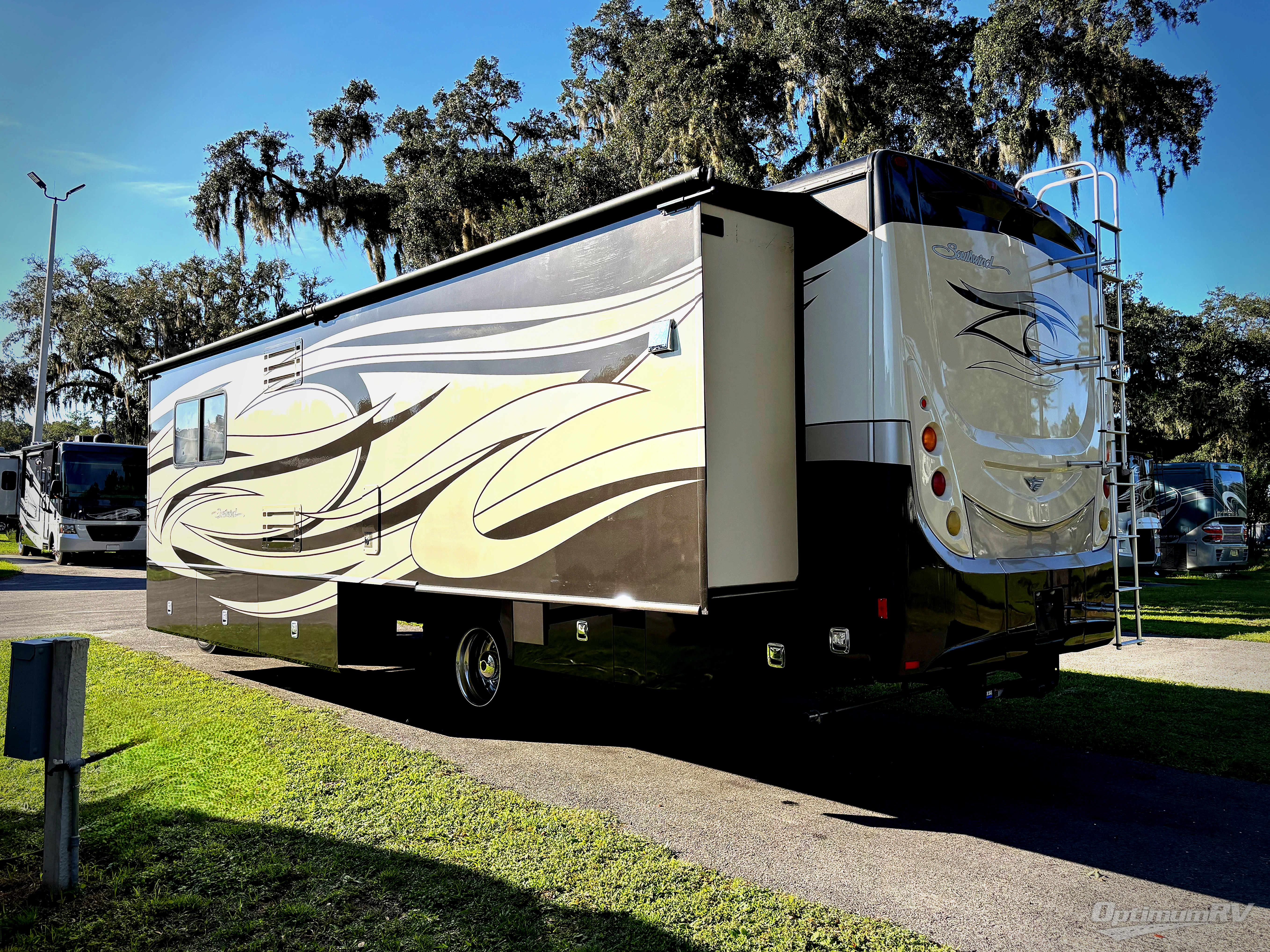 Double Slide Southwind Motor Home, Rear Bedroom w/Book Shelf, Vanity, Ward./32" LCD TV/Dresser/Ward./Walk-In Pantry/Refrigerator/Conver-Table /Sofa Dinette Slide, 46" LCD TV, 3-Burner Range, Microwave, Dbl. Kitchen Sink, Shower, Toilet/Lav./Med. Cab./Linen/Nightstands/Queen Bed Slide, Overhead Cabinets Throughout & Much More. Available Options May Include: Ext. Ent. Center, 3-Burner Range w/Oven, Washer/Dryer, Electric Fireplace, King Bed.