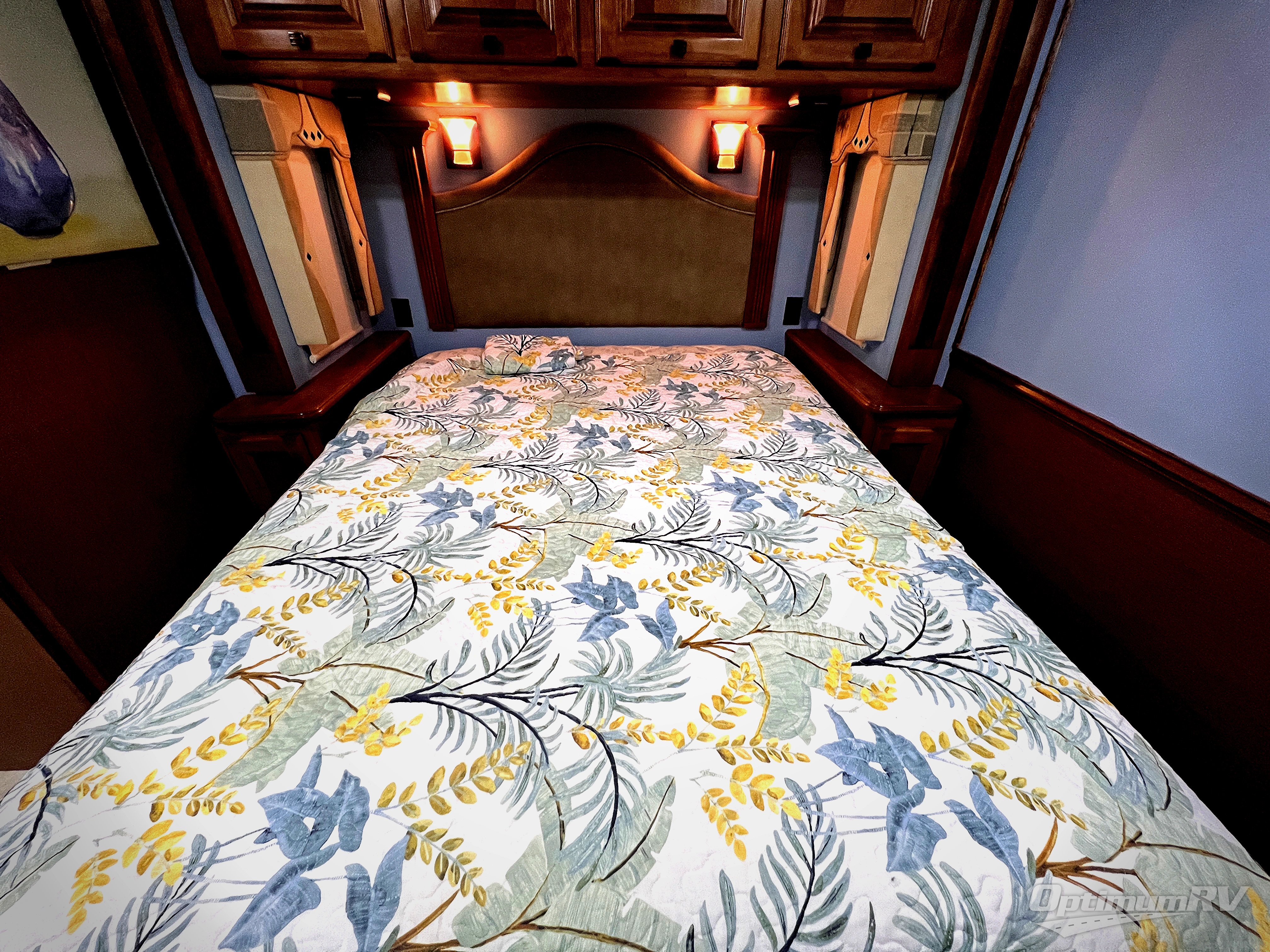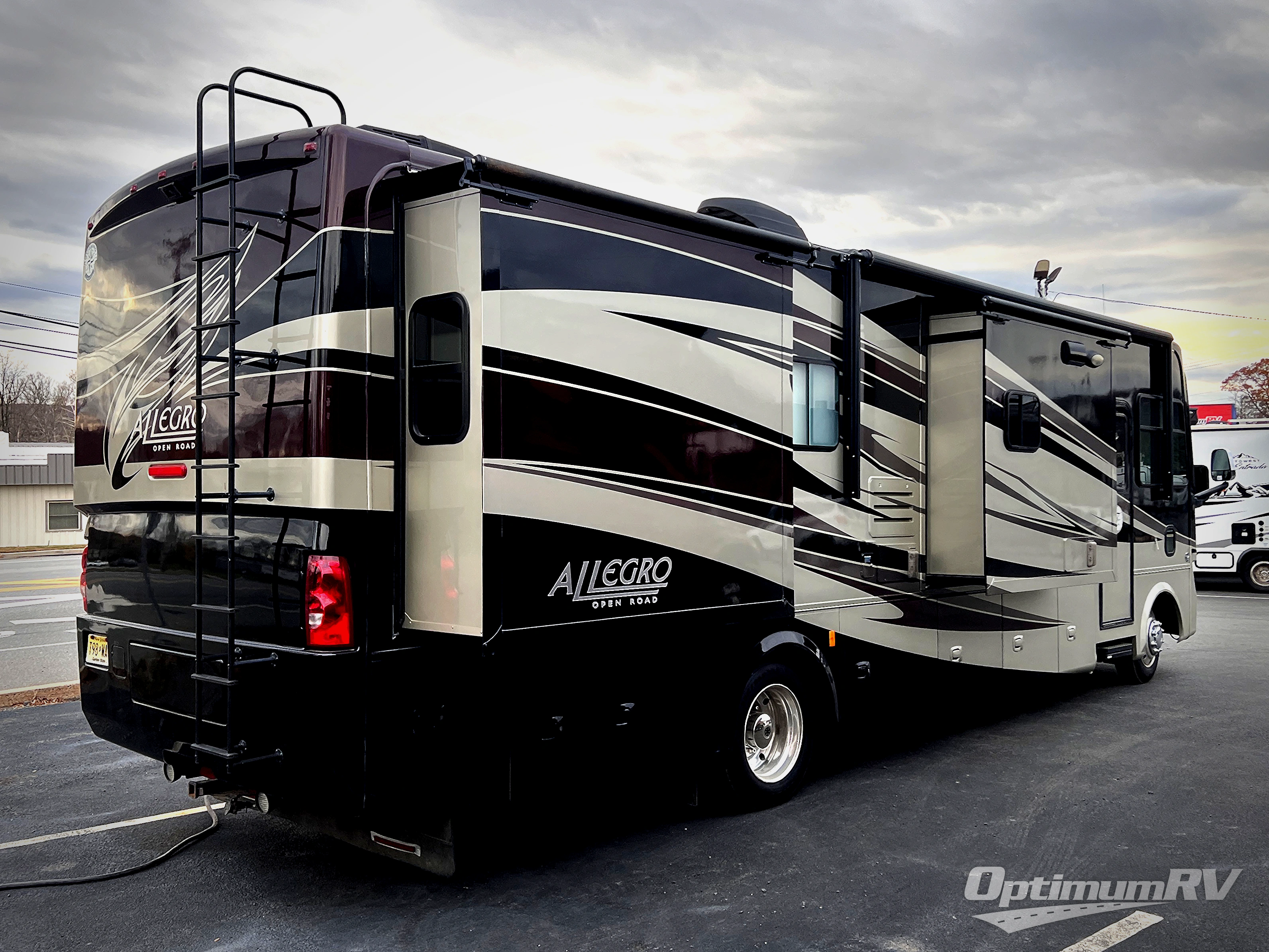 Triple Slide Allegro Class A by Tiffin w/Rear Queen Bed Slide w/Nightstands, Wardrobe w/Drawers Below, Private Toilet Area w/Lav., Corner Shower w/Lav., Refrigerator, Booth Dinette & Sofa Bed Slideout, Double Kitchen Sink & 3 Burner Range Slide w/Overhead Cabinets, Lounge Chair, 37" TV and Much More! Available Options May Include: 32" TV Above Cab Area, Driver's Door, 32" TV in Bedroom, Tile Floor in Bedroom, Free Standing Cabinet/Dinette.