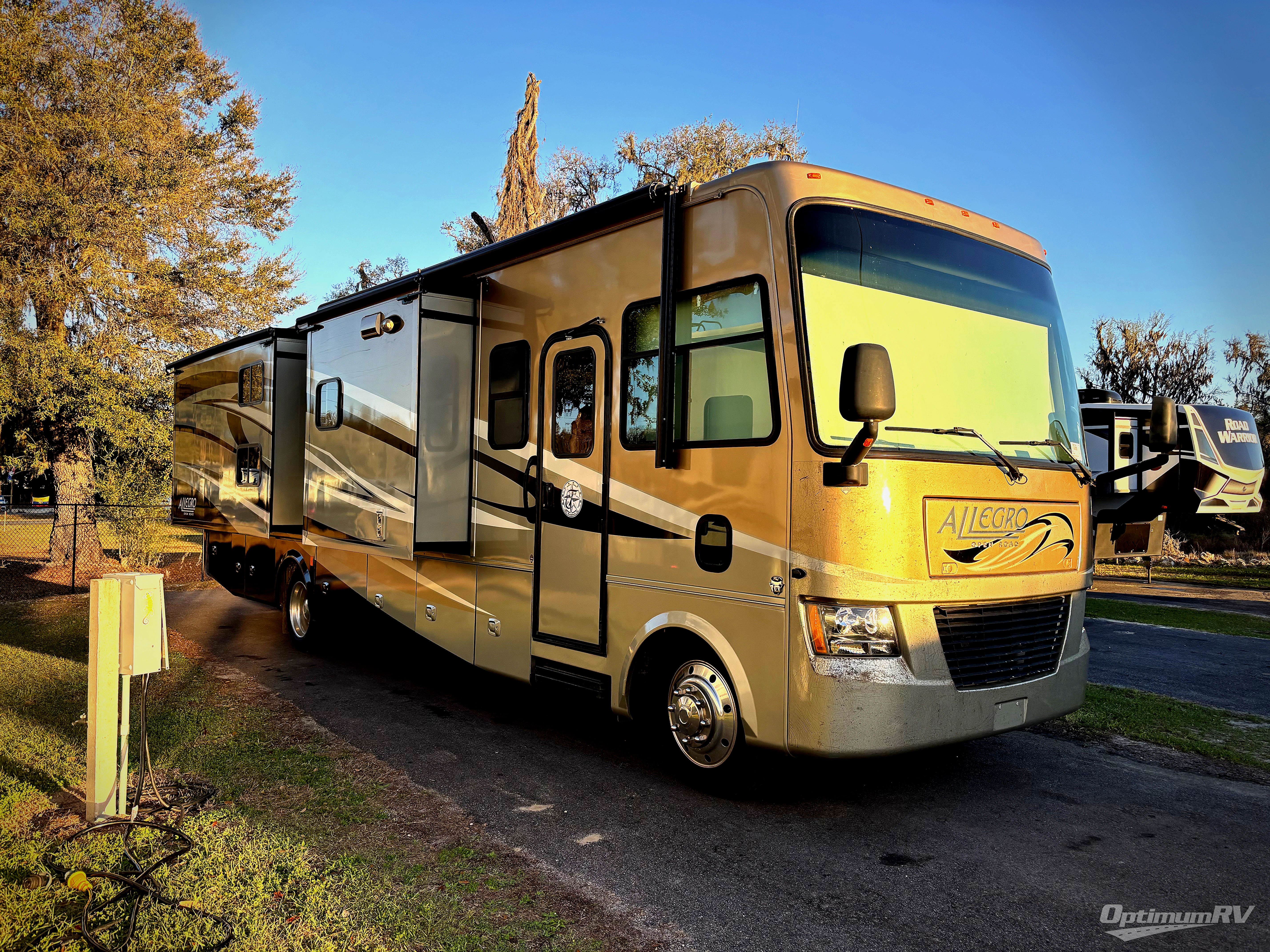 Quad Slide Allegro w/Rear Queen Bed Slide w/Nightstands, Wardrobe Above Drawers & Bunk Bed Slideout, Bath w/Corner Shower, Linen Cabinet, Lav., 37" LCD TV in Living Area, Refrigerator, Double Kitchen Sink & 3 Burner Range Slideout, Lounge Chair, Sofa Bed & Booth Dinette Slideout, Overhead Cabinets Both Driver & Passenger Sides & Throughout, and Much More! Available Options May Include: Driver's Door, Tile Floor in Bedroom, 32" TV in Bedroom, Free Standing Cabinet/Dinette.