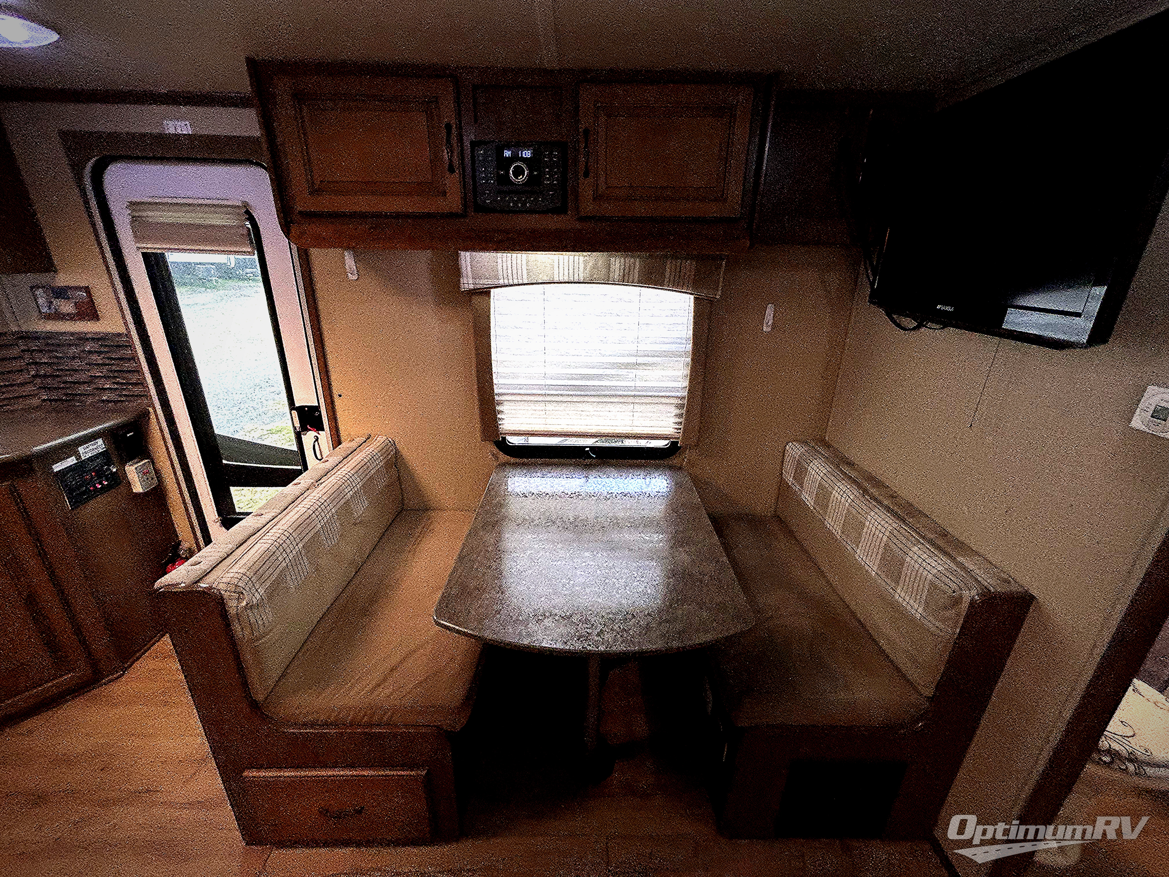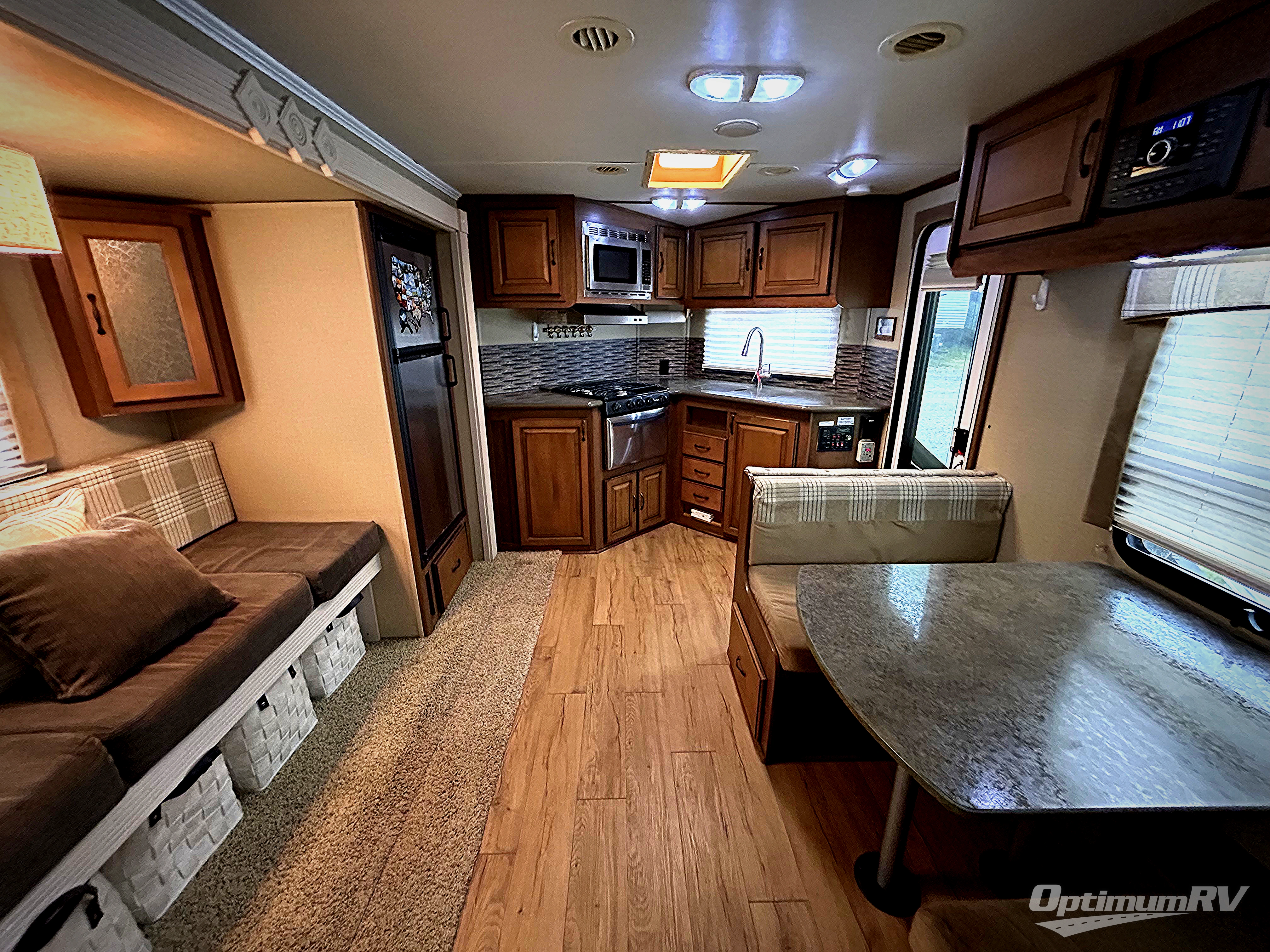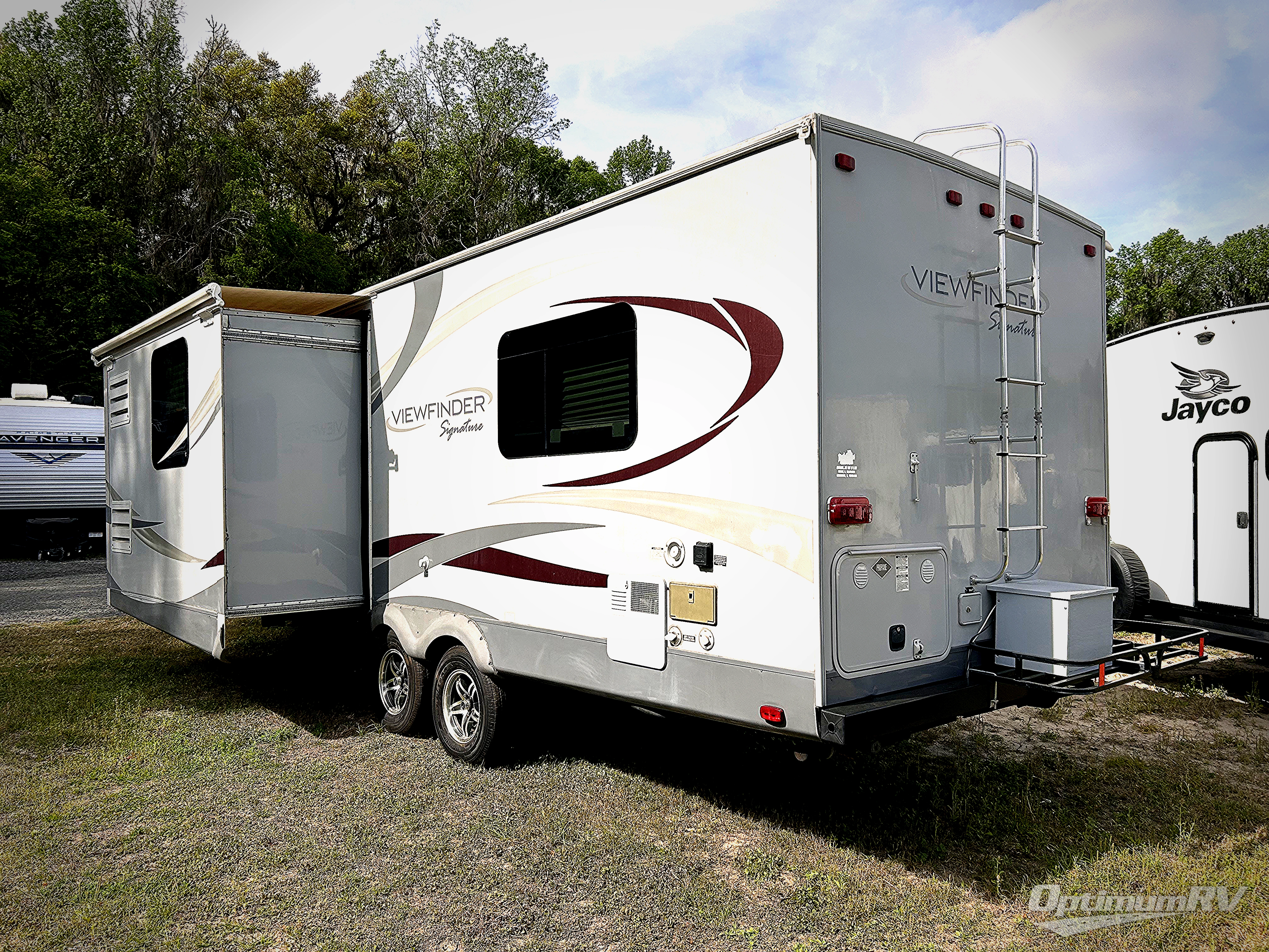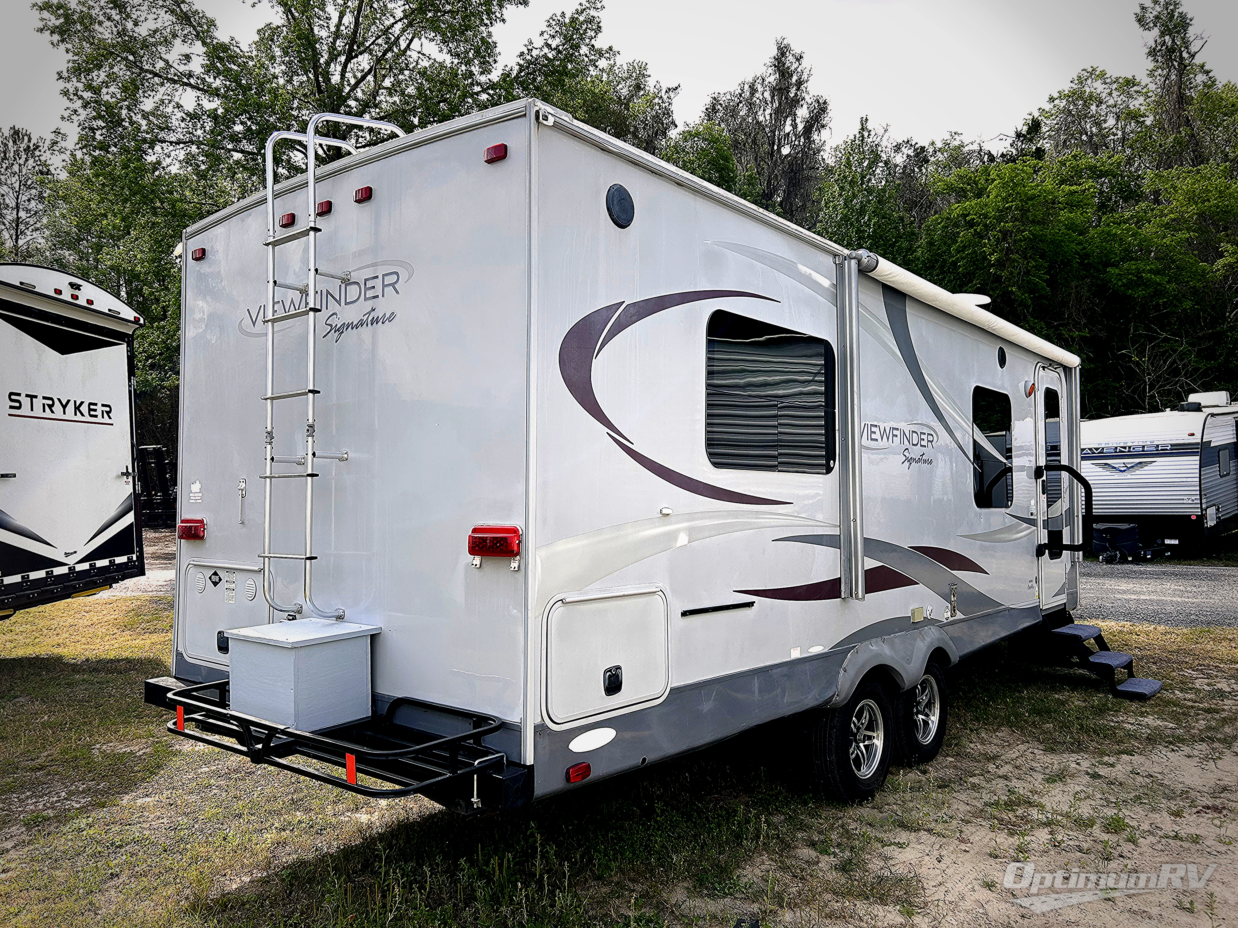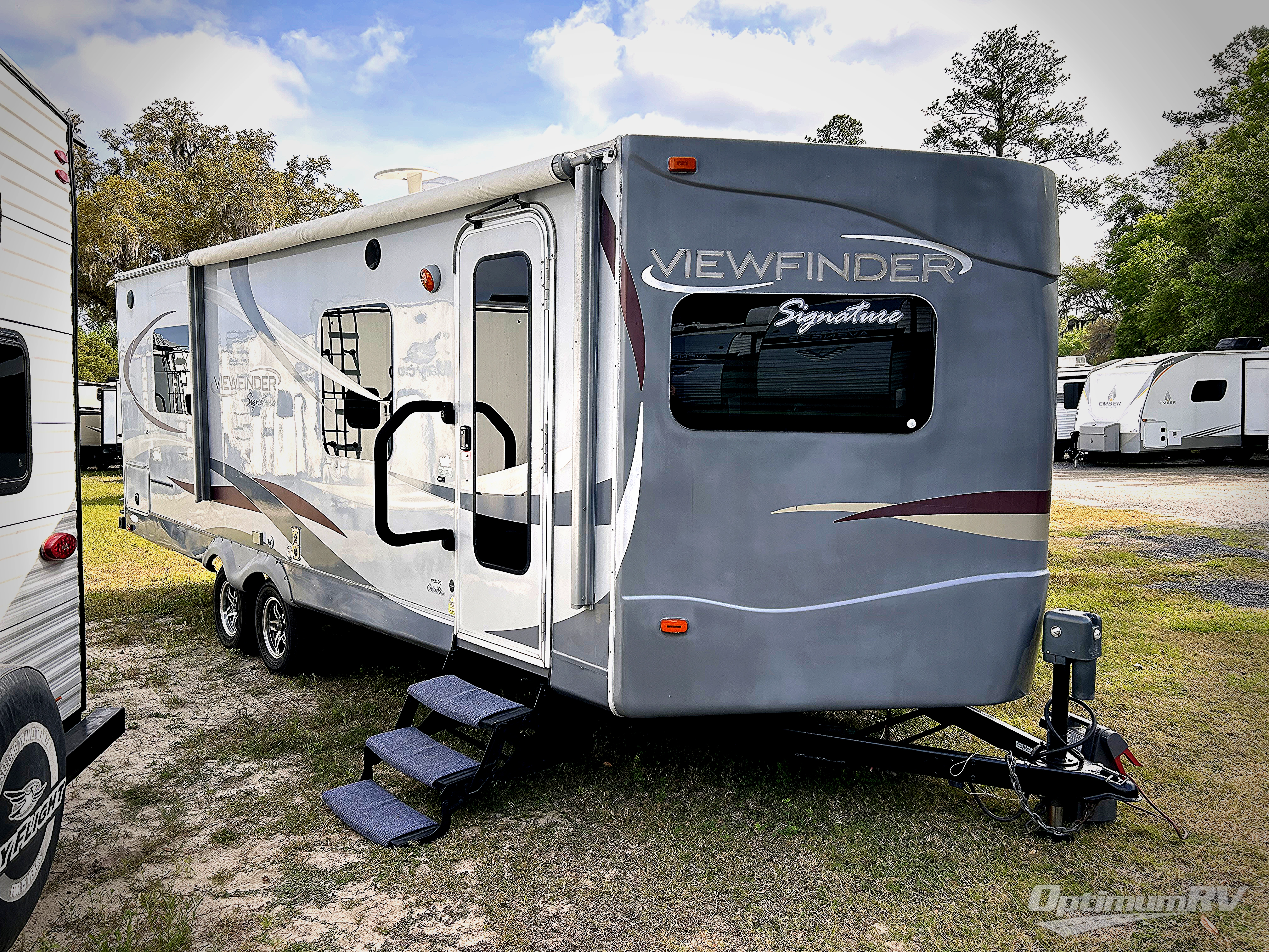 Single Slide V-Nose ViewFinder Signature Travel Trailer by Cruiser w/Rear Lift-Up Queen Bed w/Overhead Cabinets, Wardrobes Both Sides of Bed, Rigid Privacy Curtain, Tub/Shower, Toilet, Sink & Linen Cabinet, Booth Dinette w/Overhead & LCD TV, Jack-Knife Couch & Refrigerator Slide w/Dbl. Corner Overhead Shelves Above Sofa, Front Kitchen in V-Nose w/Microwave w/Oven Below, Dbl. Kitchen Sink & Overhead Cabinets & More!