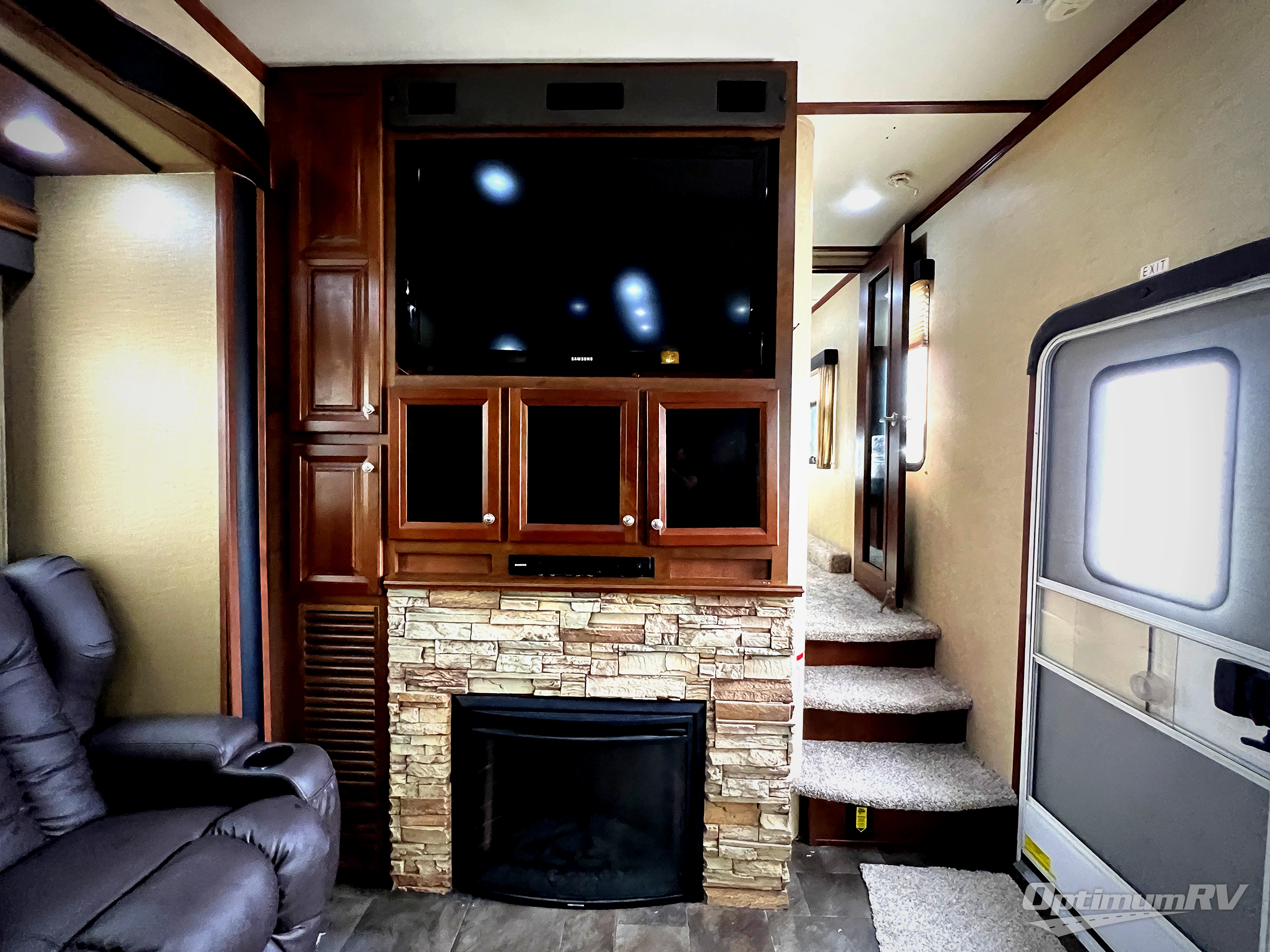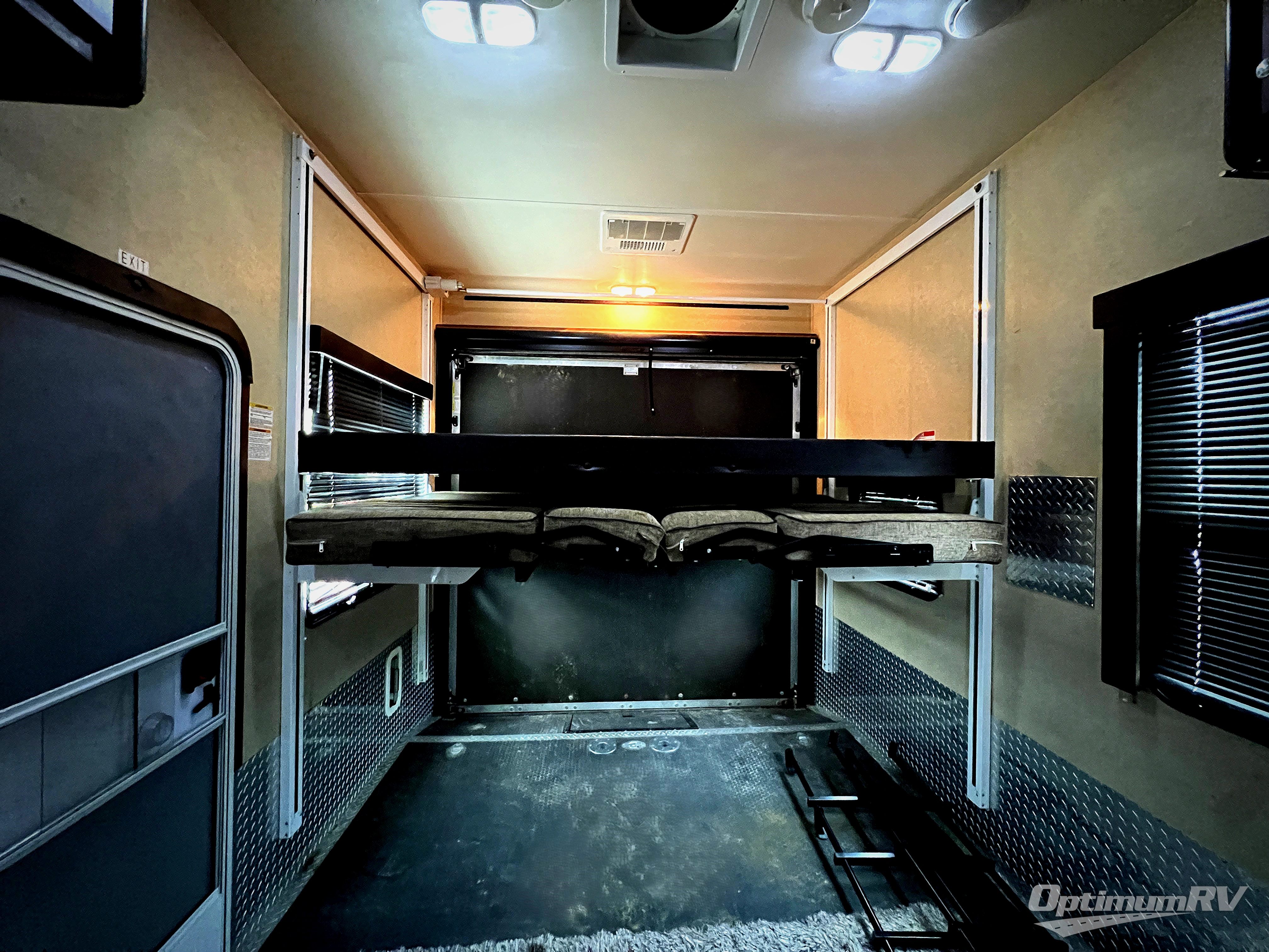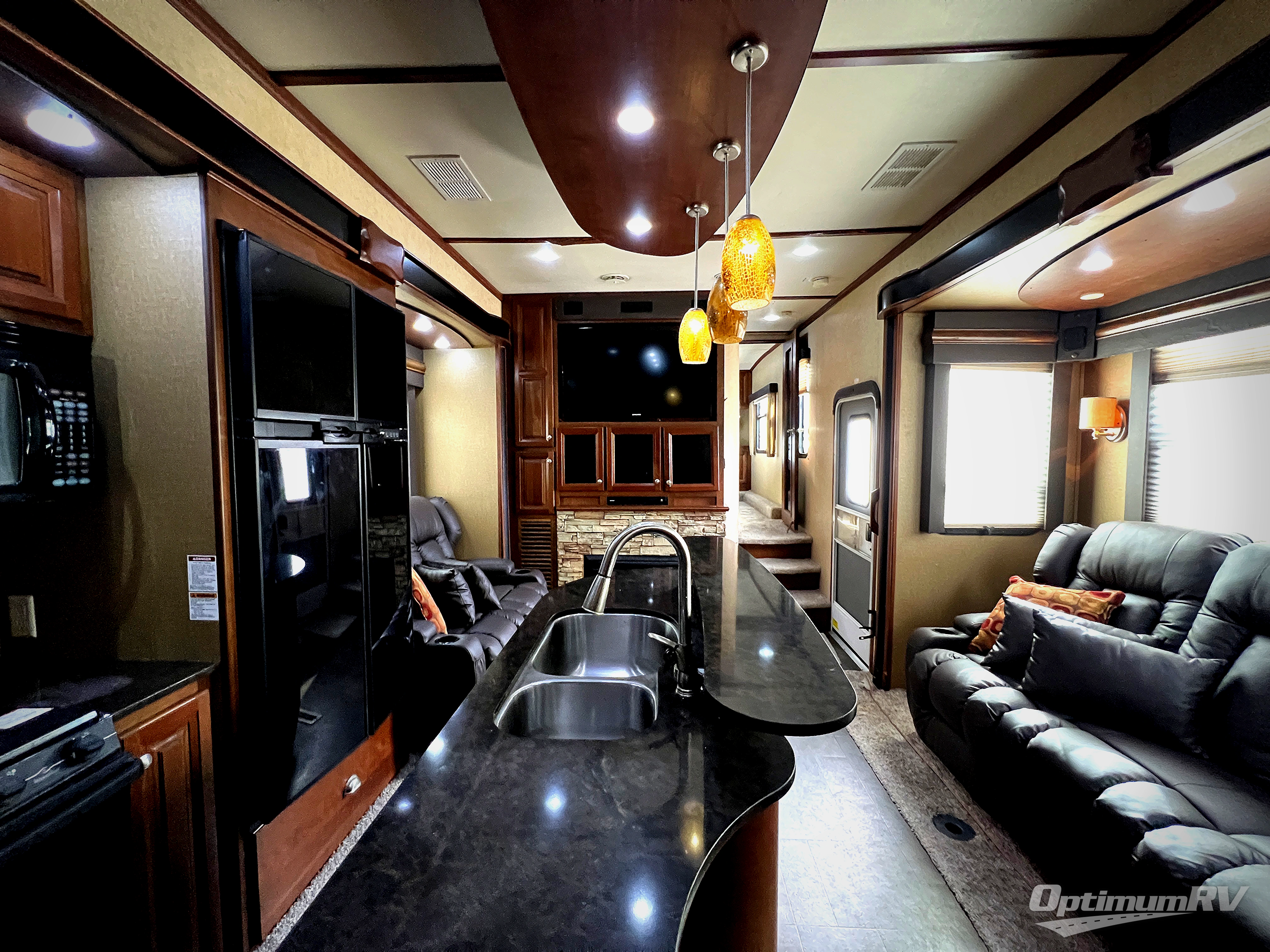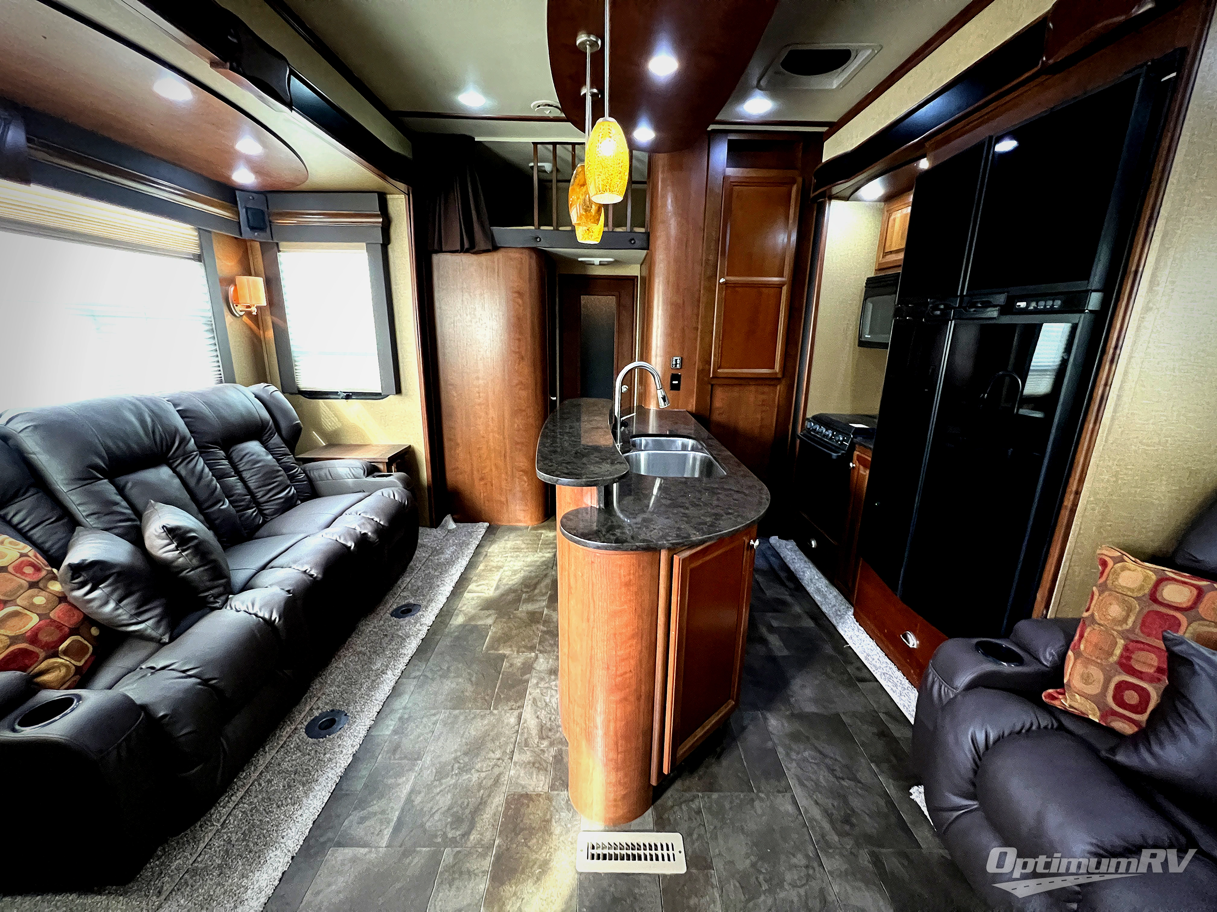 Voltage FW Toy Hauler w/Rear Ramp Door to 12' Cargo Area w/Side Man Door, Lounge Chair, Overhead Storage Cabinets, Stackable Washer/Dryer Prep/Closet, 1/2 Bath in Cargo, Door to Living Area w/Slideout Dinette/Sofa w/Stowable Table, Counter w/Bar Stools, Dbl. Kitchen Sink, 3 Burner Range/Refrig./Pantry & Theater Seat Slideout, 40" LCD TV, Step Up to Side Aisle Bath w/Shower, Toilet & Vessel Sink, Pass-Thru Storage, Front Queen Hinged Top Bed w/Nightstands, Slideout His & Her Wards. & More!