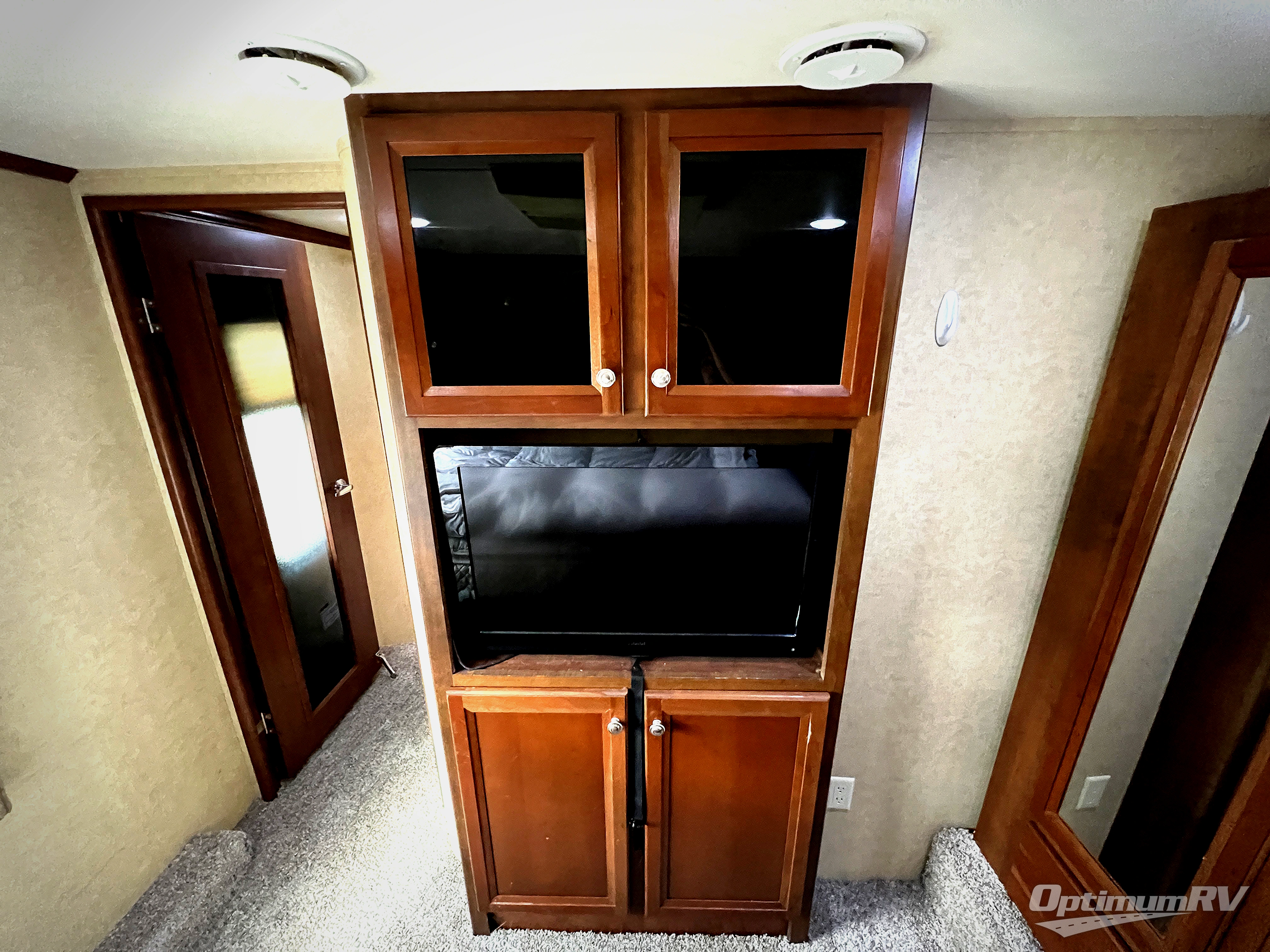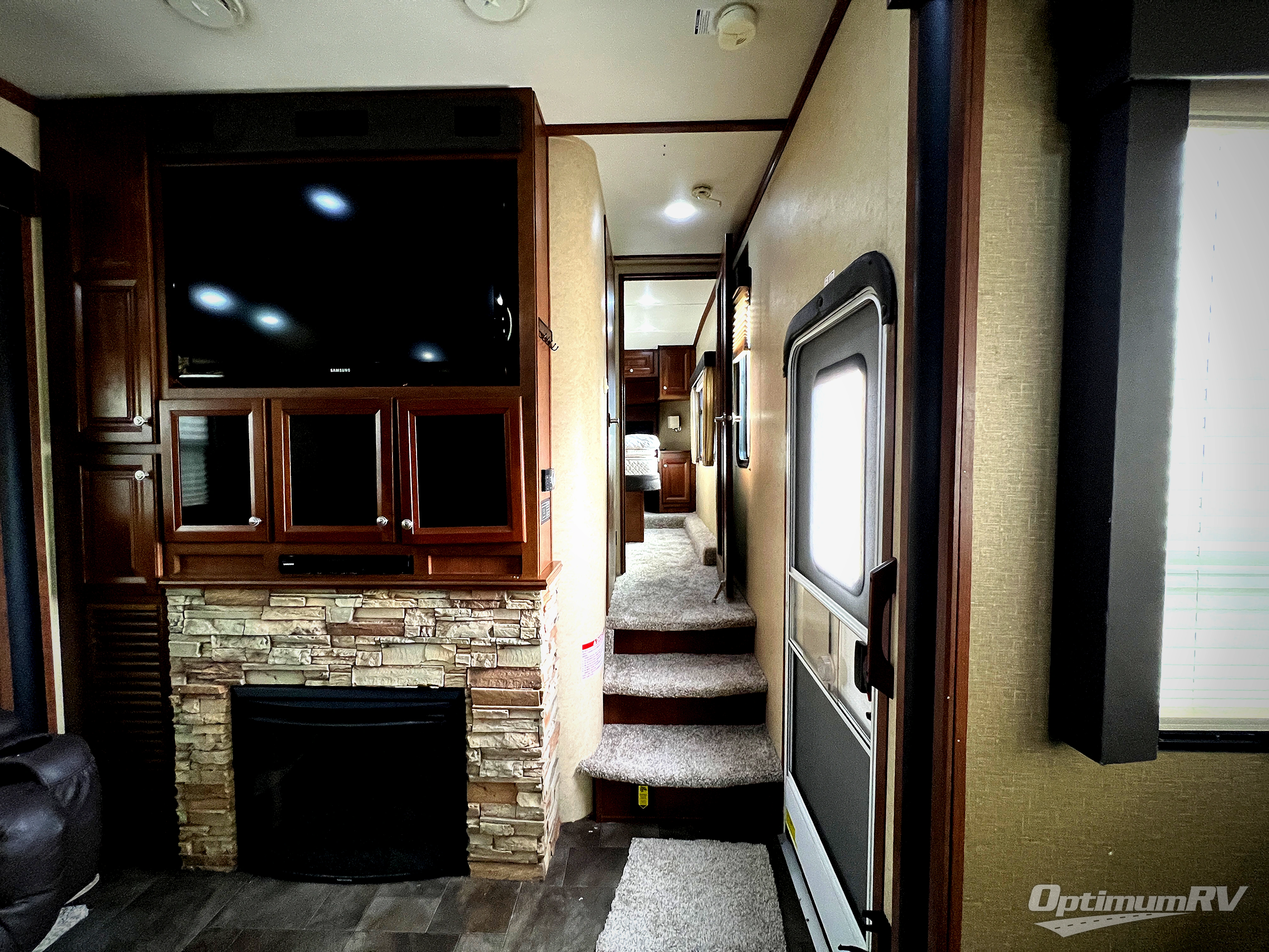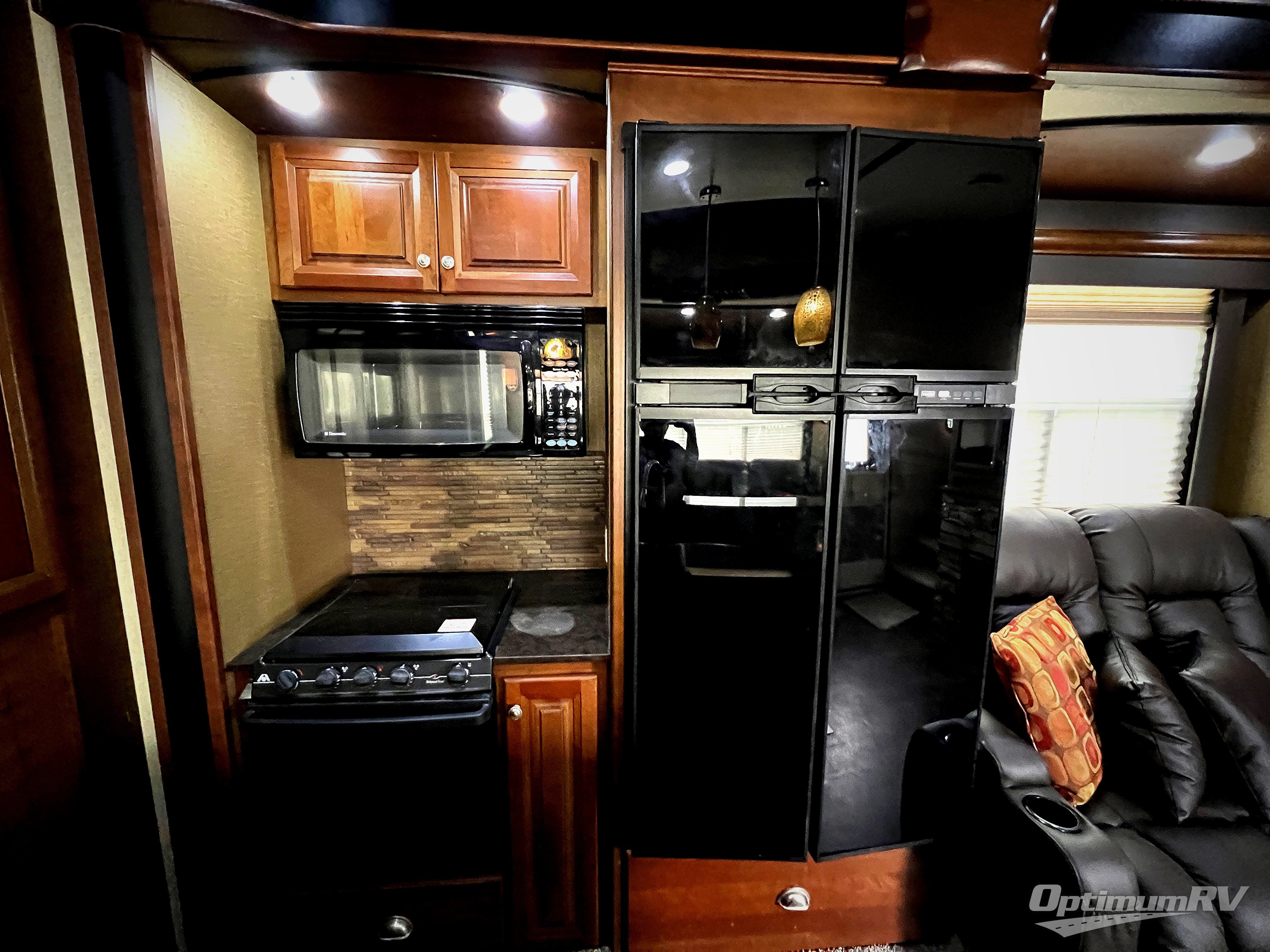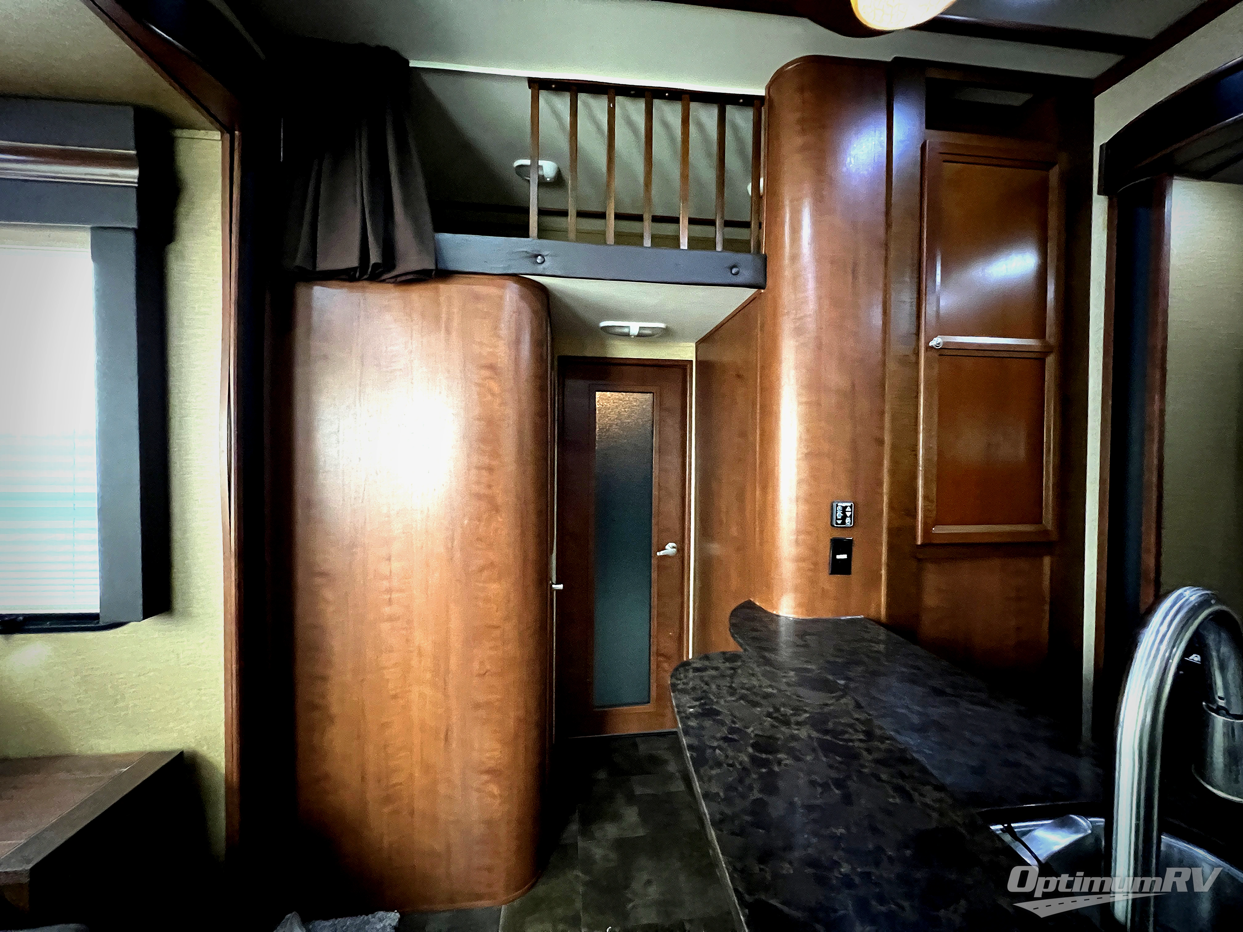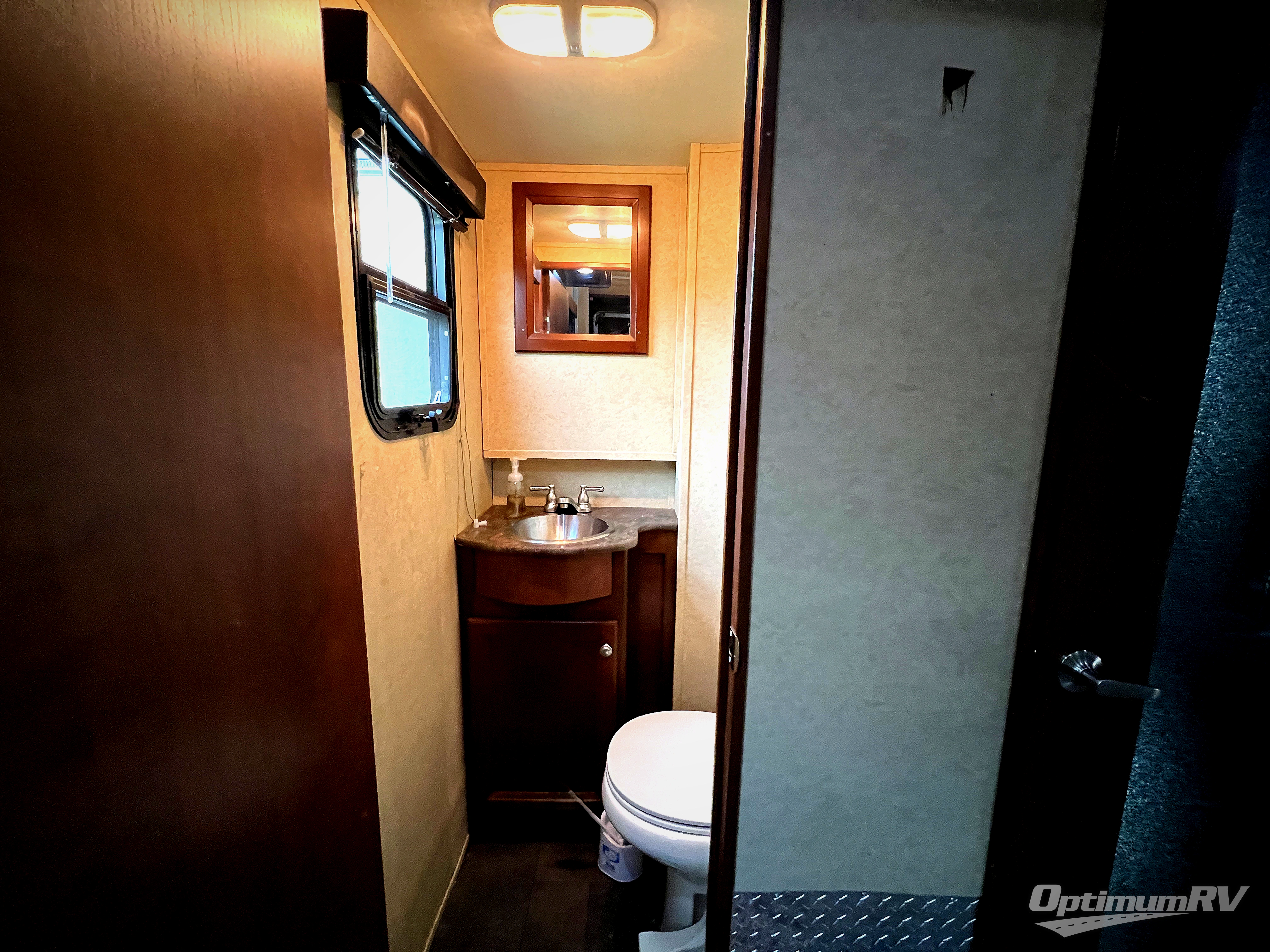 Voltage FW Toy Hauler w/Rear Ramp Door to 12' Cargo Area w/Side Man Door, Lounge Chair, Overhead Storage Cabinets, Stackable Washer/Dryer Prep/Closet, 1/2 Bath in Cargo, Door to Living Area w/Slideout Dinette/Sofa w/Stowable Table, Counter w/Bar Stools, Dbl. Kitchen Sink, 3 Burner Range/Refrig./Pantry & Theater Seat Slideout, 40" LCD TV, Step Up to Side Aisle Bath w/Shower, Toilet & Vessel Sink, Pass-Thru Storage, Front Queen Hinged Top Bed w/Nightstands, Slideout His & Her Wards. & More!