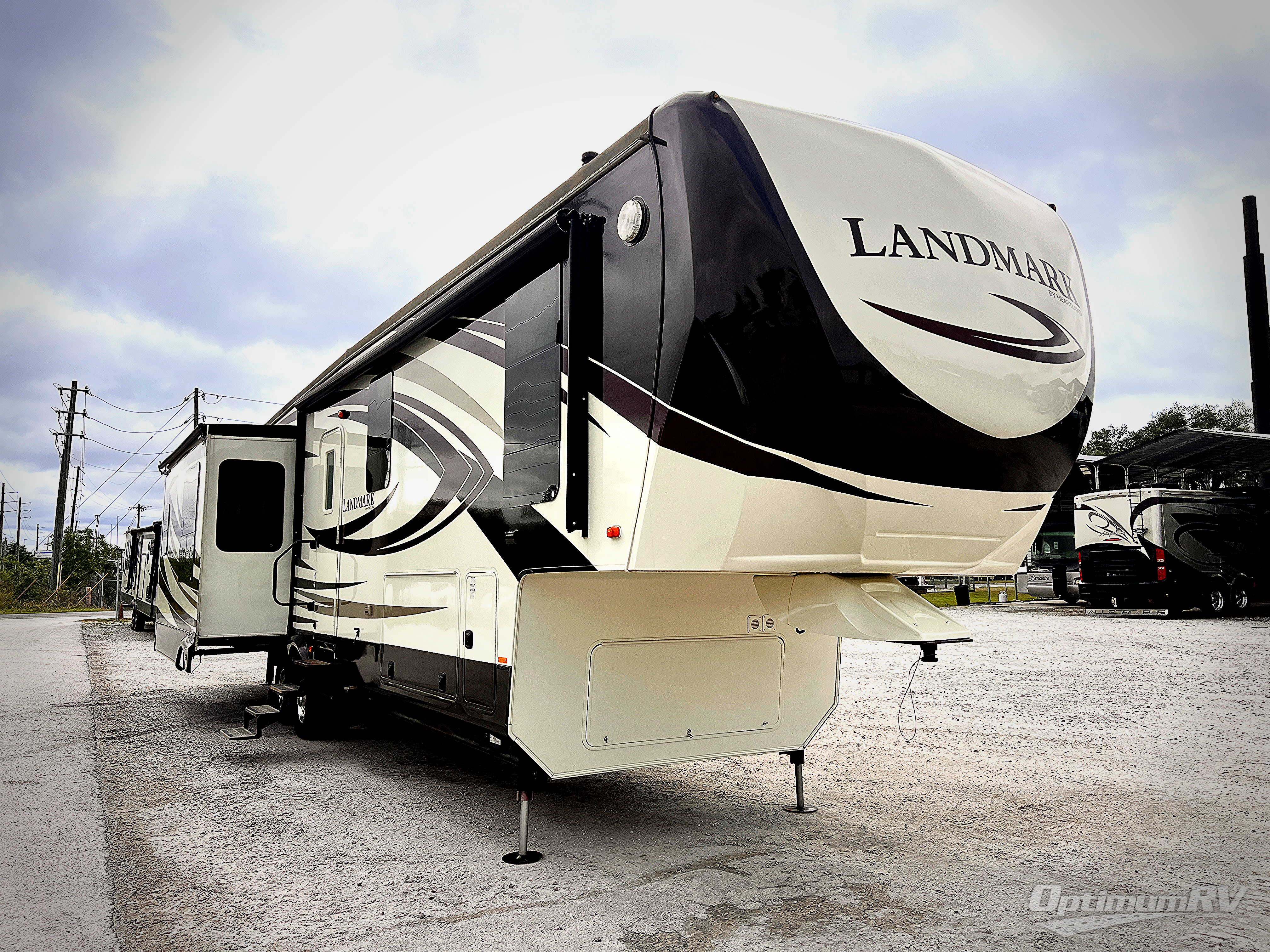 Landmark Fifth Wheel w/Rear Living Area Including: Sofa w/End Tables & Overhead Storage, Slideout Lounge Chairs w/Table Between, Opposite Slide w/LCD TV/Oval Dinette w/Chairs & Overhead Storage, Refrig., Pantry, 3 Burner Range, Counter Space w/Overhead Storage, Dbl. Kitchen Sink, Step Up to Side Aisle Bath w/Linen Cabinet, Tub/Shower, Toilet & Sink, Door to Bedroom w/King Bed Slide, Dresser, Washer/Dryer Prep and Wardrobe w/Sliding Doors and Much More!