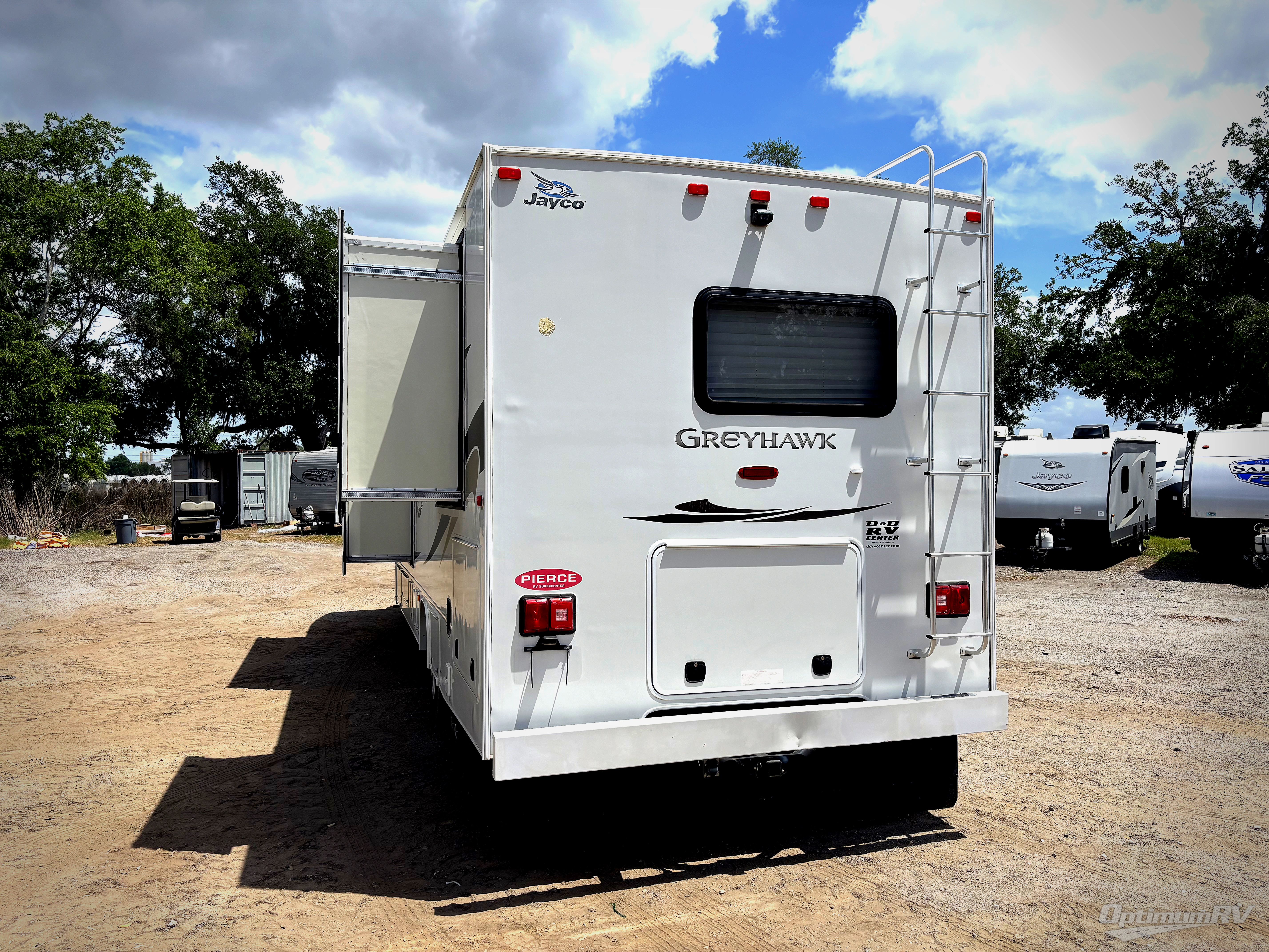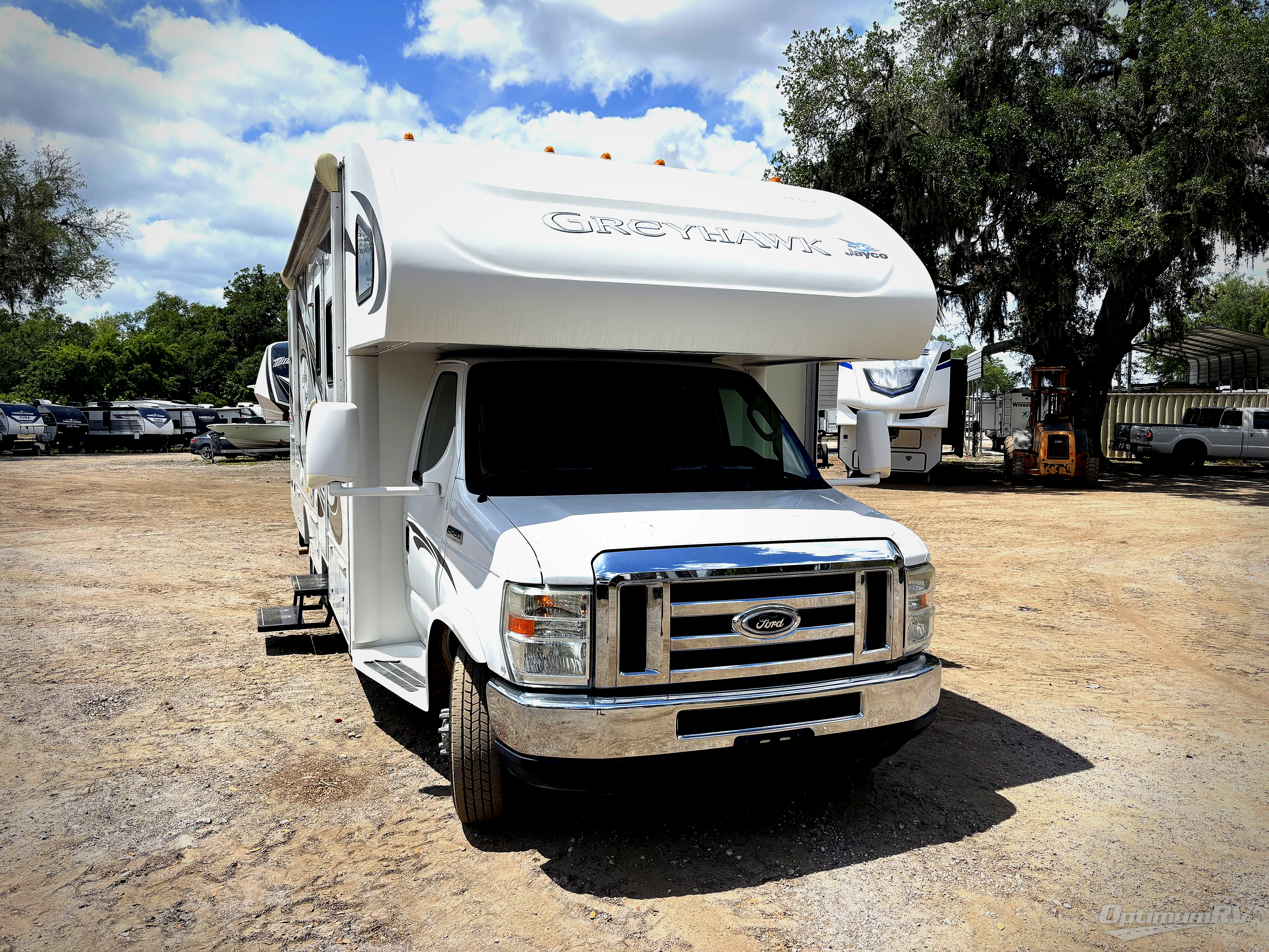Double Slide Greyhawk Motor Home Class C, Rear Queen Bed, Night Stand, Ward., Ward. Slide, Toilet, Lav., Med. Cab., Shower, Linen, Pantry, Flip Up Counter, Double Kitchen Sink, 3-Burner Range, Microwave, J-Steel Sofa, Cab-Over Bunk, LCD TV/DVD, Dinette/Refrigerator Slide, Overhead Cabinets Throughout & Much More. Available Options May Include: Entertainment Center w/Pullout Bunk.