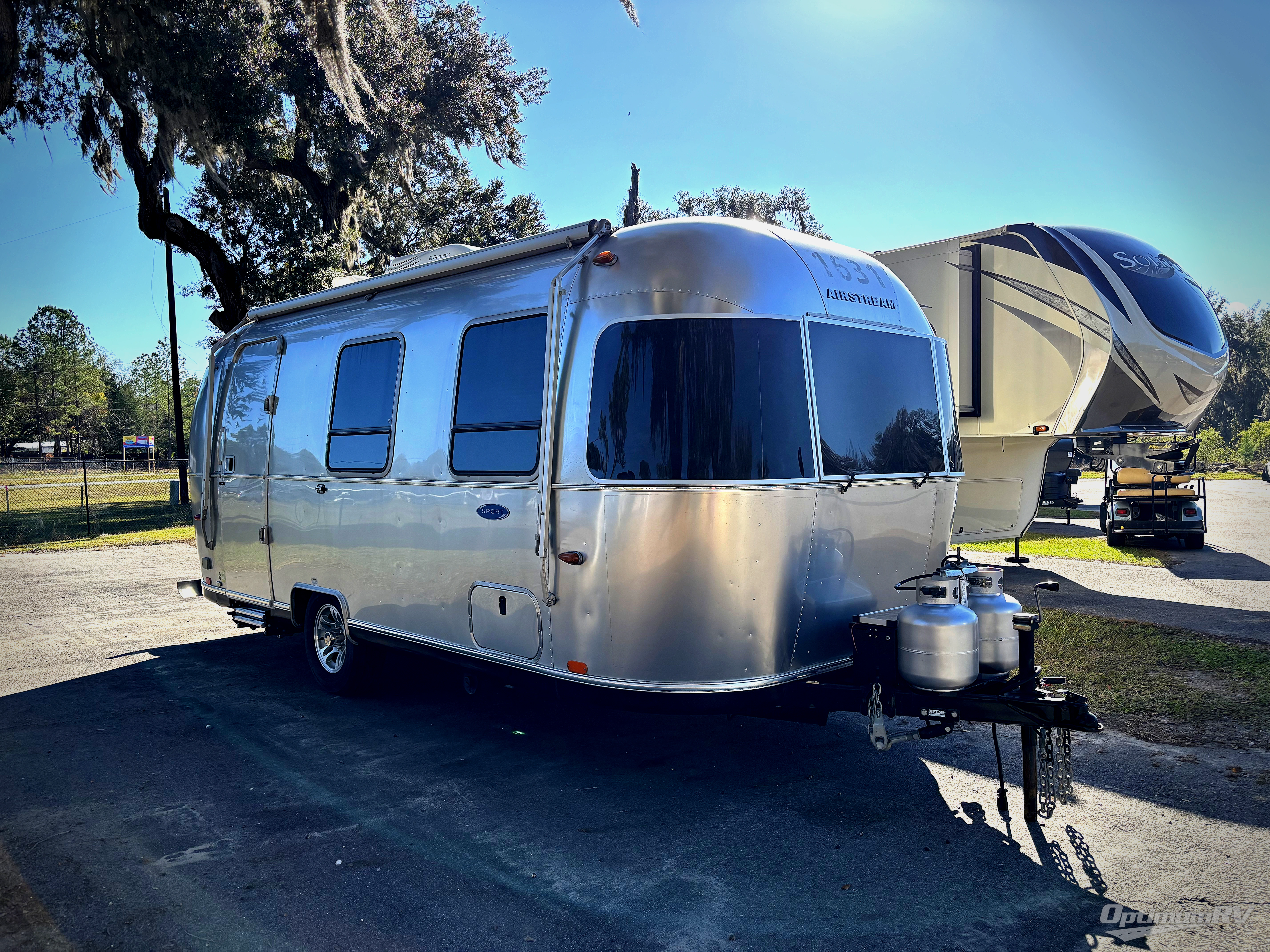 The Sport 22FB travel trailer by Airstream offers a rear bath and a front bedroom.