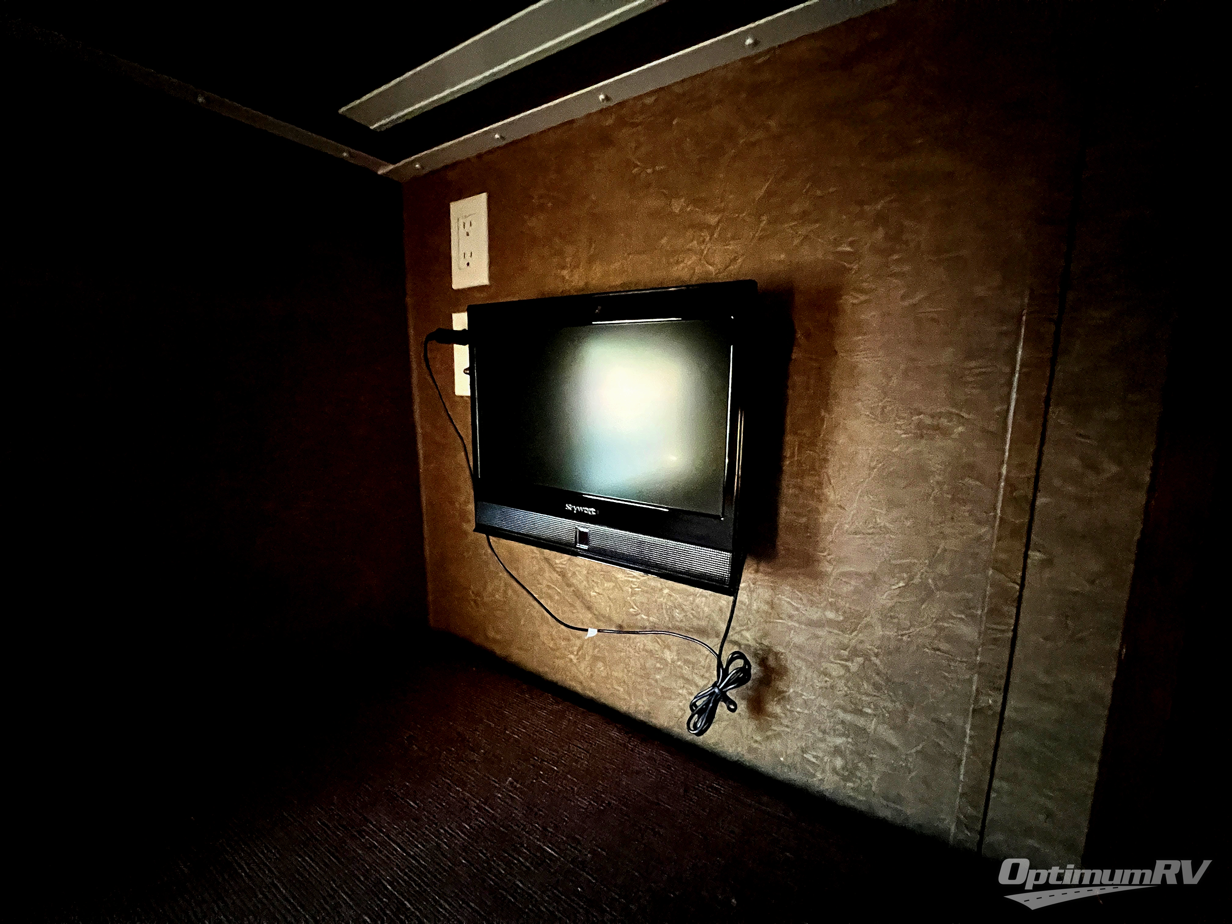 A half bath featuring a toilet, sink, and linen cabinet are just off the living area across from a set of bunk beds in the hall. The bunks along with the master bedroom wardrobe slide out provide a bit more interior space. You can also add 13" TV w/DVD player for each of the bunks if you like.
