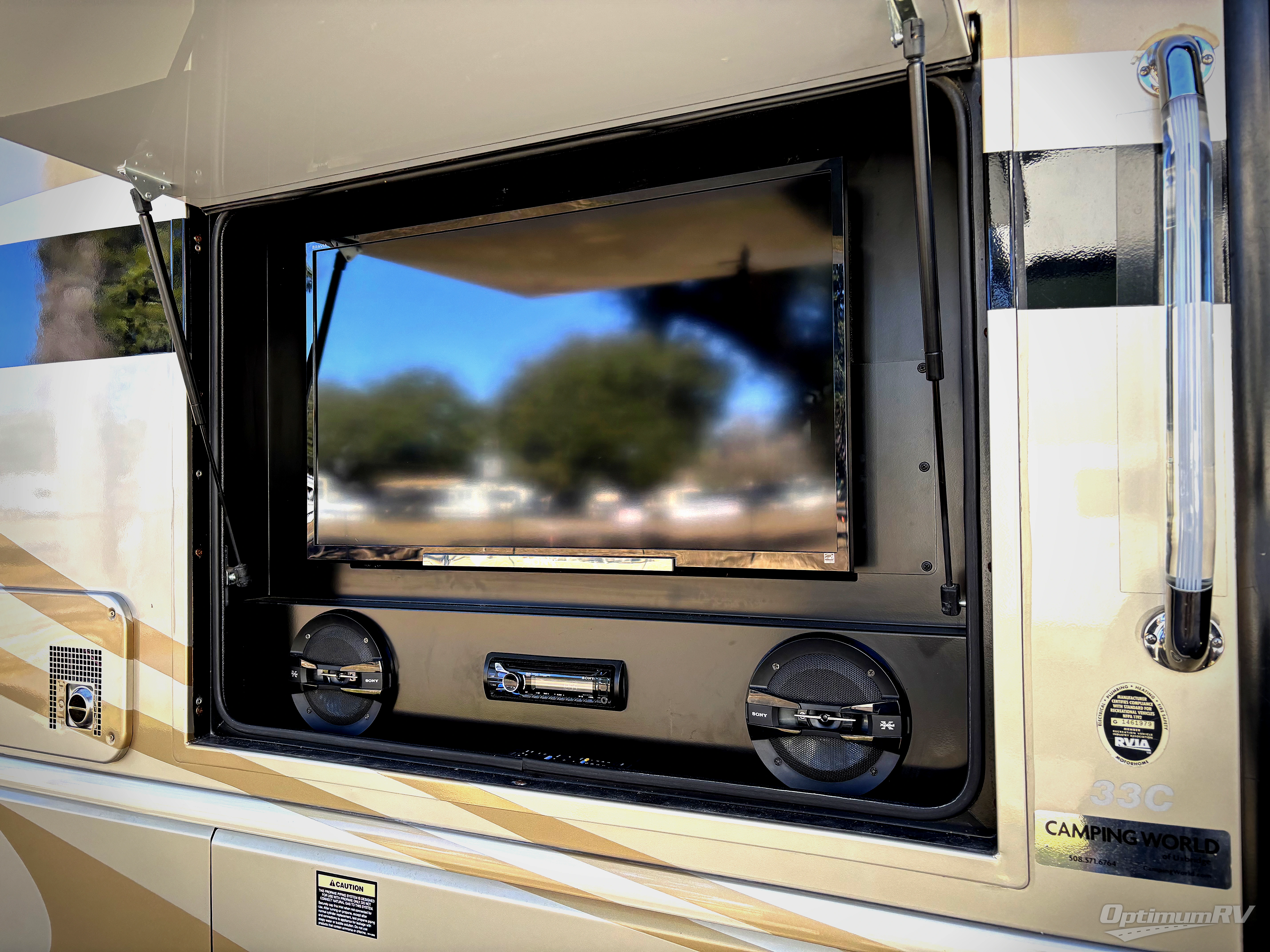 The Bounder 33C Fleetwood motor home features two slides for added space. In the rear of the motor home, you will find a private bedroom with a queen size bed and nightstand slide, double wardrobes, a dresser, and a 32" LED tv. As you leave the bedroom the bath is on the right. In the bathroom you will find a linen cabinet, corner angle shower, sink, and toilet. The living and kitchen areas offer a 40" LED tv, which can be enjoyed from any where in the front of the motor home. You will find a refrigerator, three burner range, microwave, and double kitchen sink along one side of the motor home. The opposite side features a pantry, dinette, l-sofa, and cabinet slide. There is plenty of overhead cabinets throughout this model for storage. You also have many options that you can choose such as a front 32" LCD TV, entertainment center, three burner range with oven, washer and dryer, fireplace, facing dinette, free-standing dinette with credenza or a king bed.