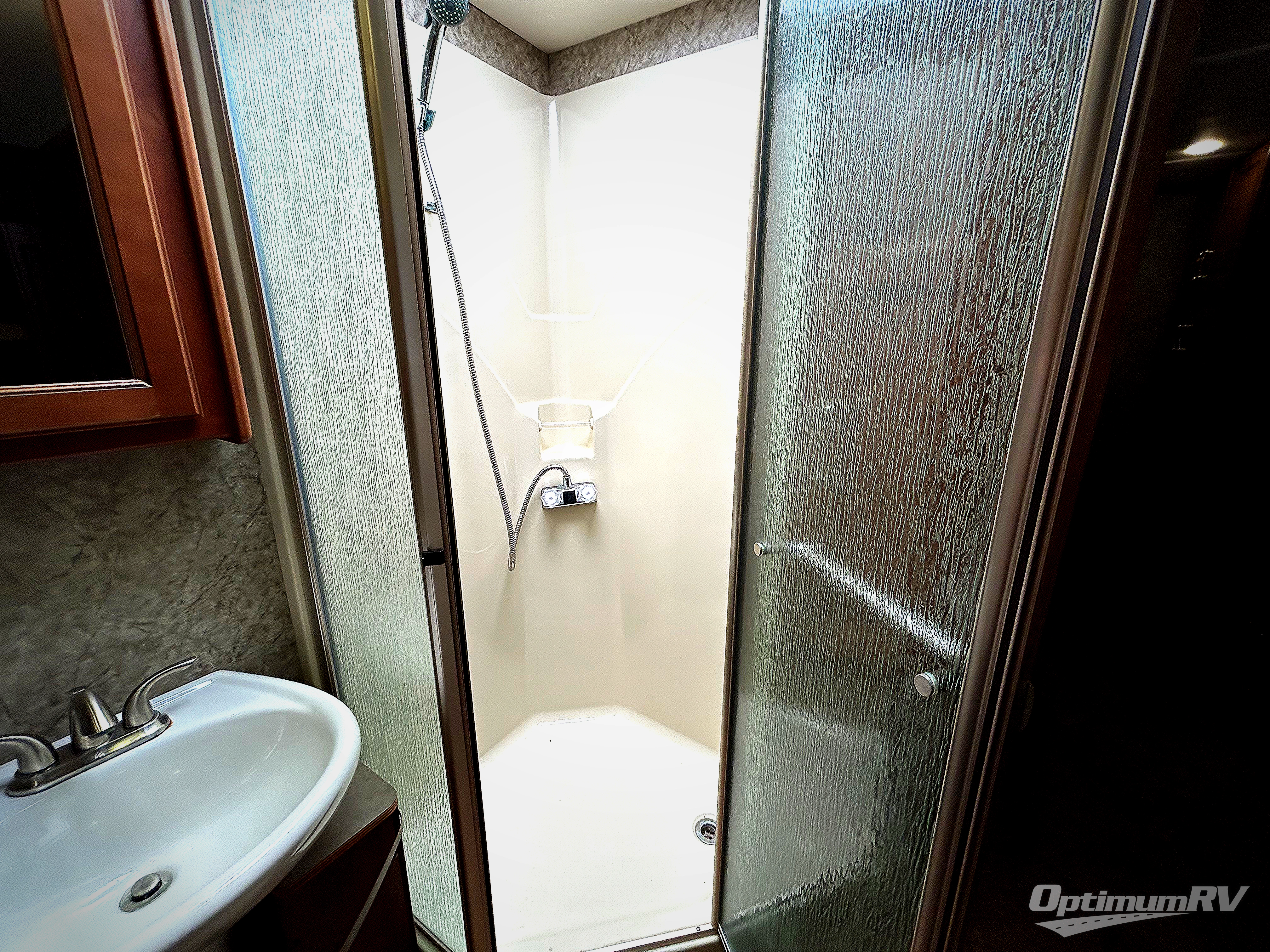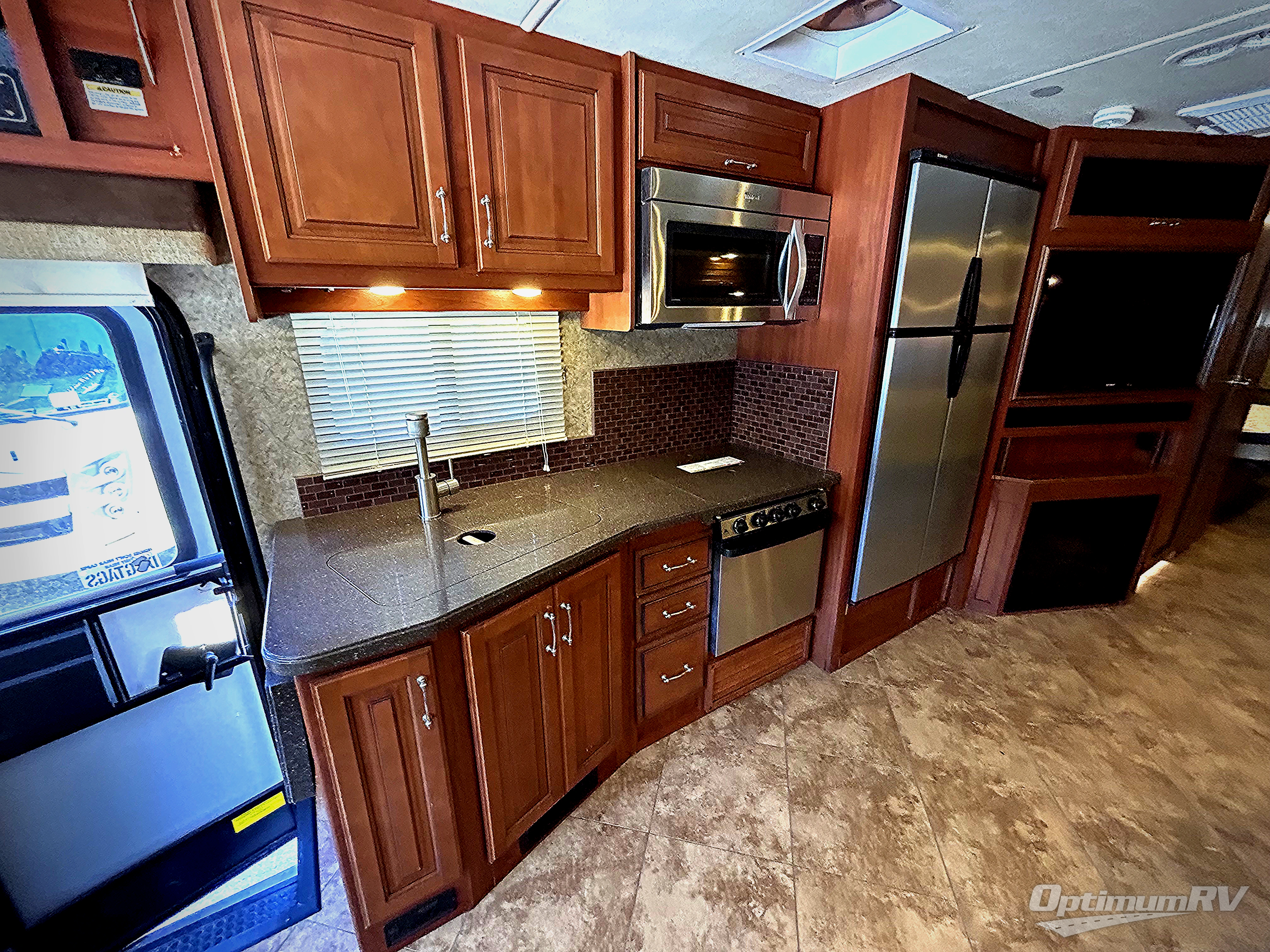 This motor home is not lacking for storage space with all of the overhead cabinets. You can choose many options to make the motor home more of your own, such as a front 32" LED tv, exterior entertainment center, three burner range with oven, washer & dryer, electric fireplace, facing dinette, free-standing dinette with credenza, king bed, queen bed with air mattress and much more!
