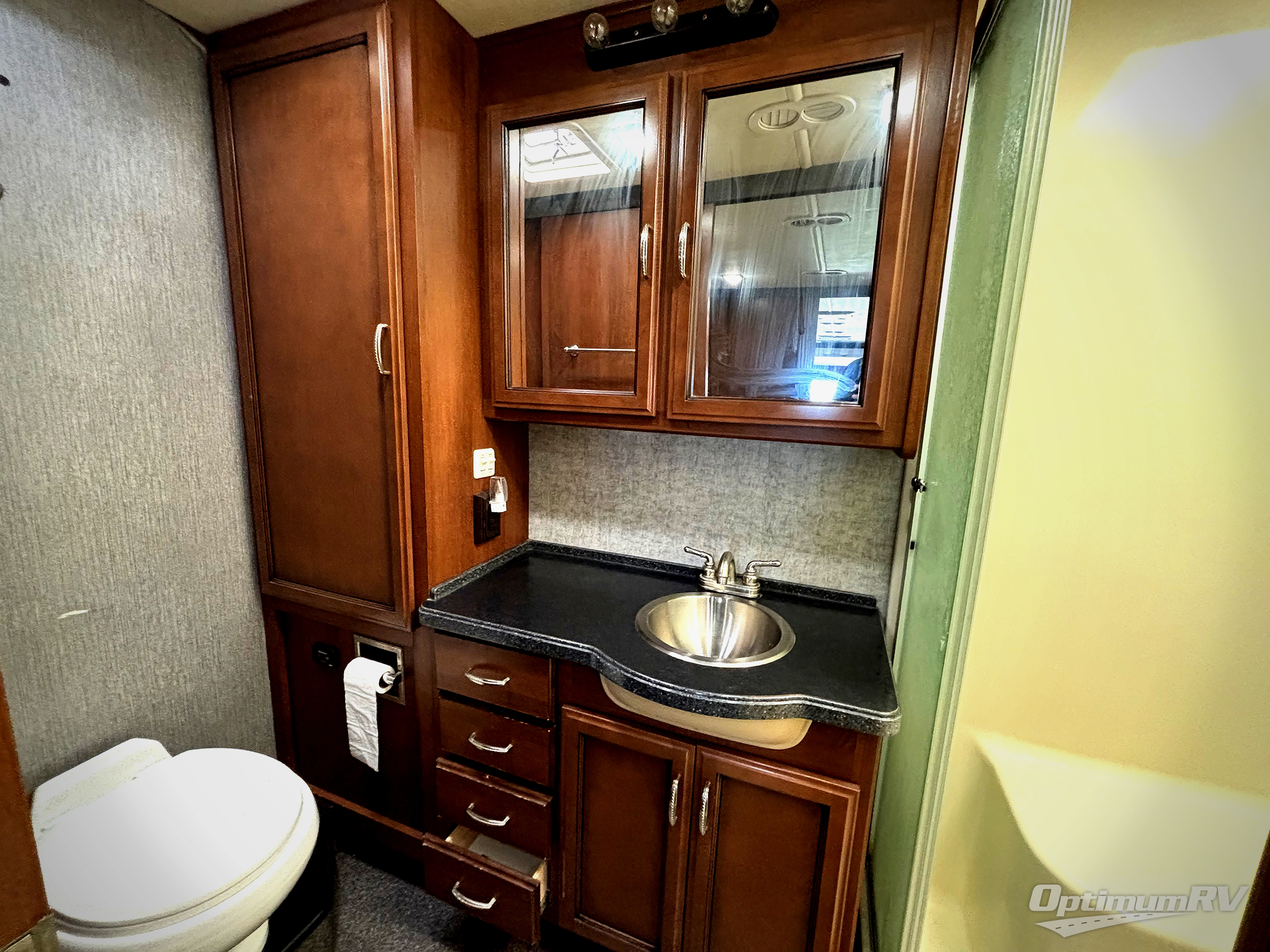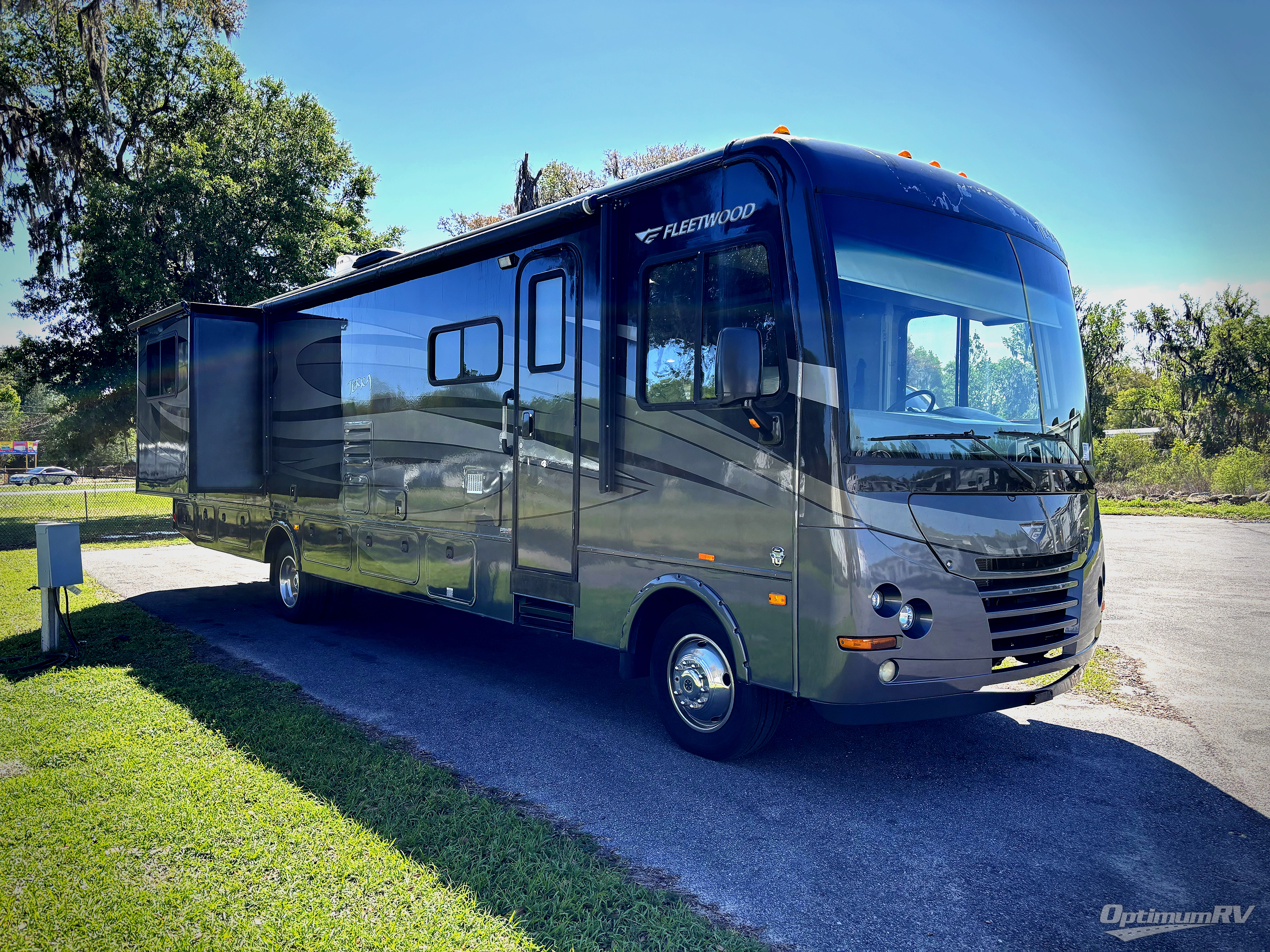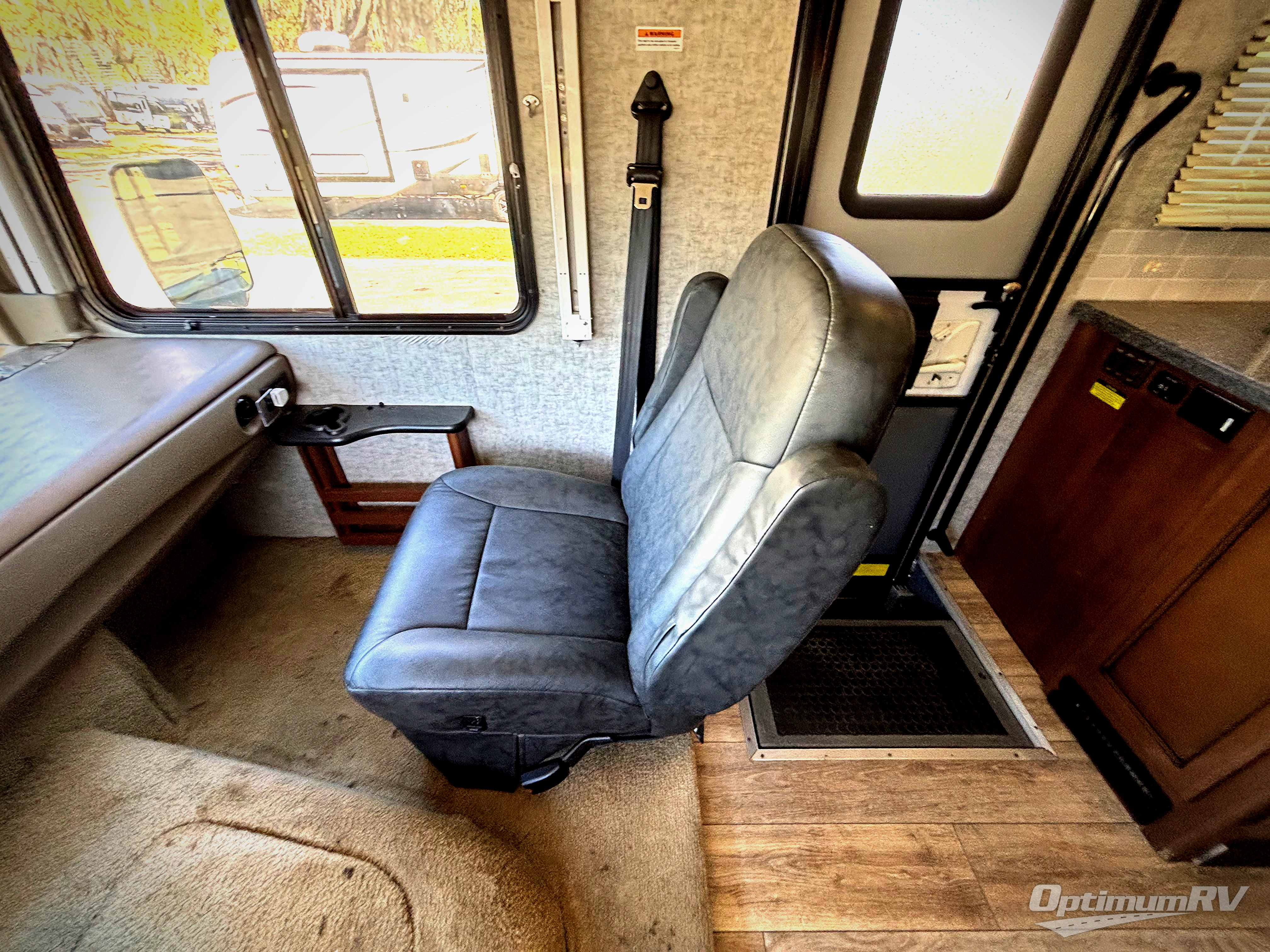 This Terra 34E Fleetwood motor home features a sofa and dinette slide as you walk in. To the left of the entrance, is a double kitchen sink, three burner range, microwave, refrigerator, utility cabinet. While relaxing on the sofa, you can watch tv on the 32" LED tv.