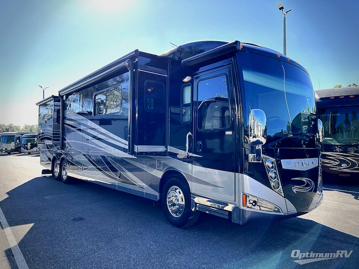 Ellipse Class A Diesel by Itasca w/1-1/2 Bath Including Rear Full Bath w/Shower, Storage Cabinet, Sink, Toilet, King Bed Slide w/Nightstands, Ward./Retractable 26" LCD TV/Ward./Pantry/4 Door Refrig./Dining Table & Chairs/Recliner/Pull-Out Table & 40" LCD TV Slideout, Rest Easy Extendable Sectional Sofa w/Coffee Table/3 Burner Range & Dbl. Kitchen Sink Slide, 1/2 Bath w/Vanity & Sink and More! Available Options May Include: Residential Refrig., Euro Recliner, Washer/Dryer, Fireplace, 2 Ottomans.