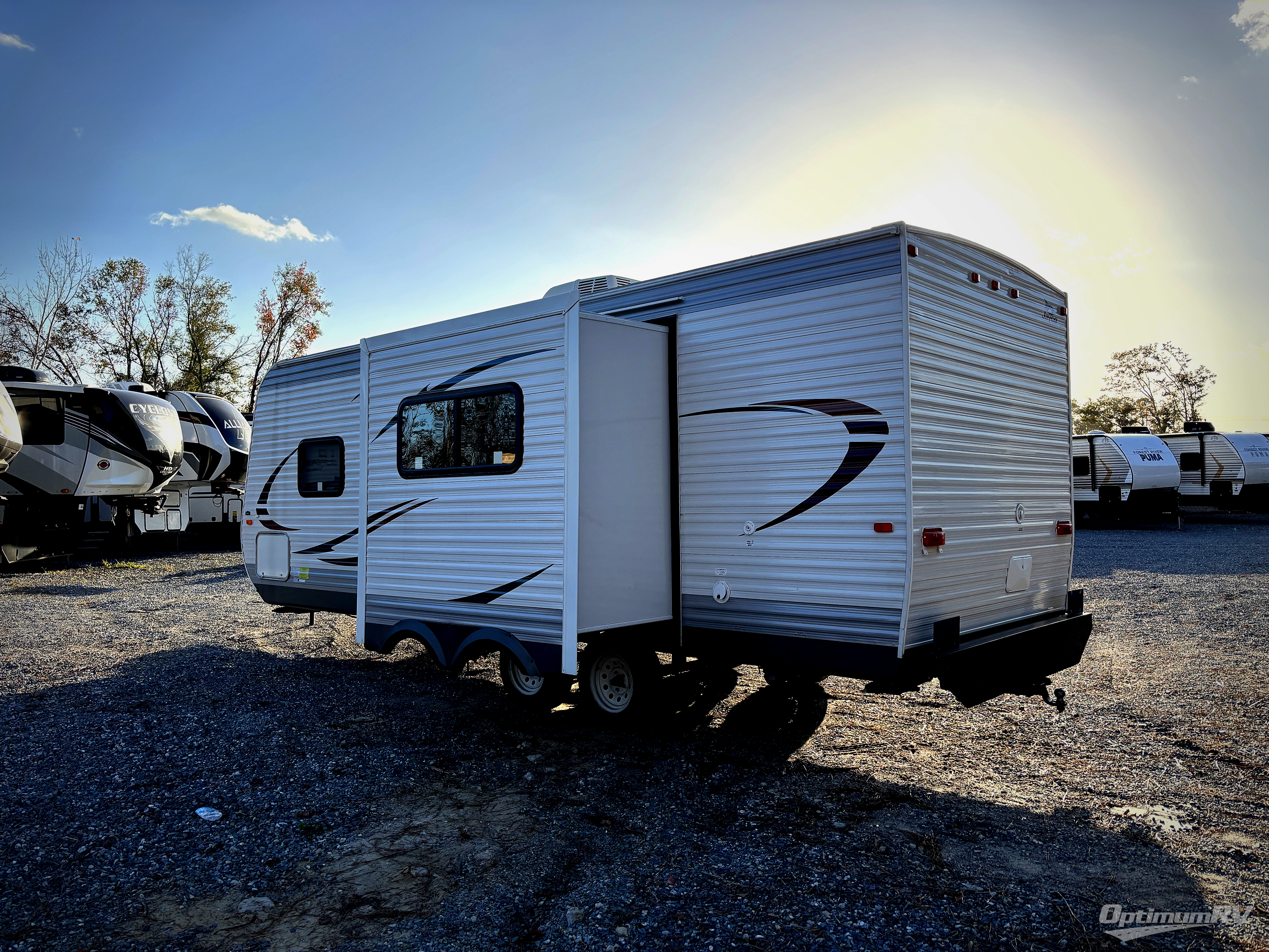 Stepping inside the Jay Flight Swift 248RBS by Jayco, you will find this travel trailer quite cozy. As you enter you will immediately notice the sofa. The kitchen area offers a l-shaped counter with a double kitchen sink, three burner range, and microwave. There is also a refrigerator and a dinette slide. Along one wall is an entertainment center and can be seen from the kitchen or living areas.