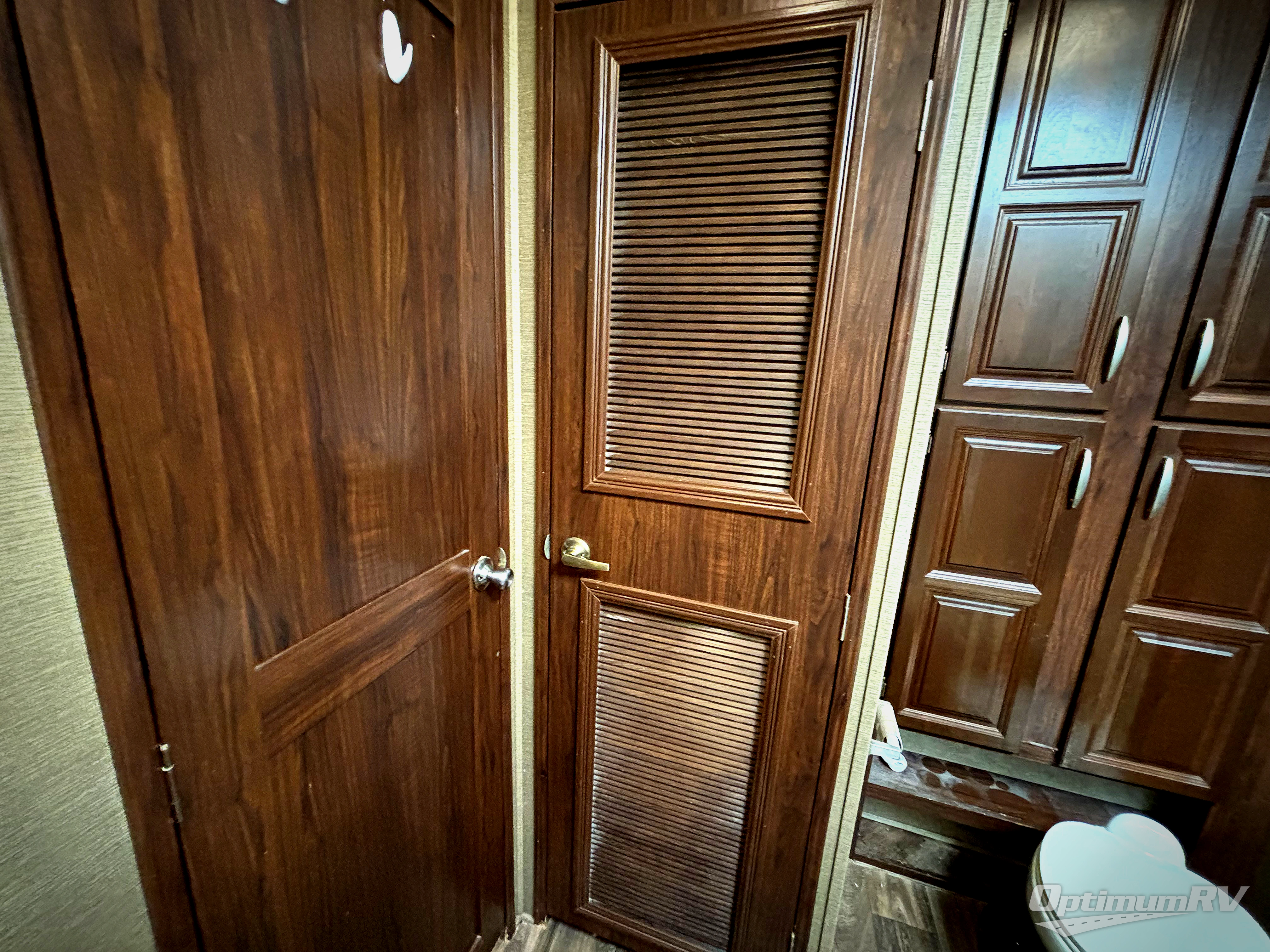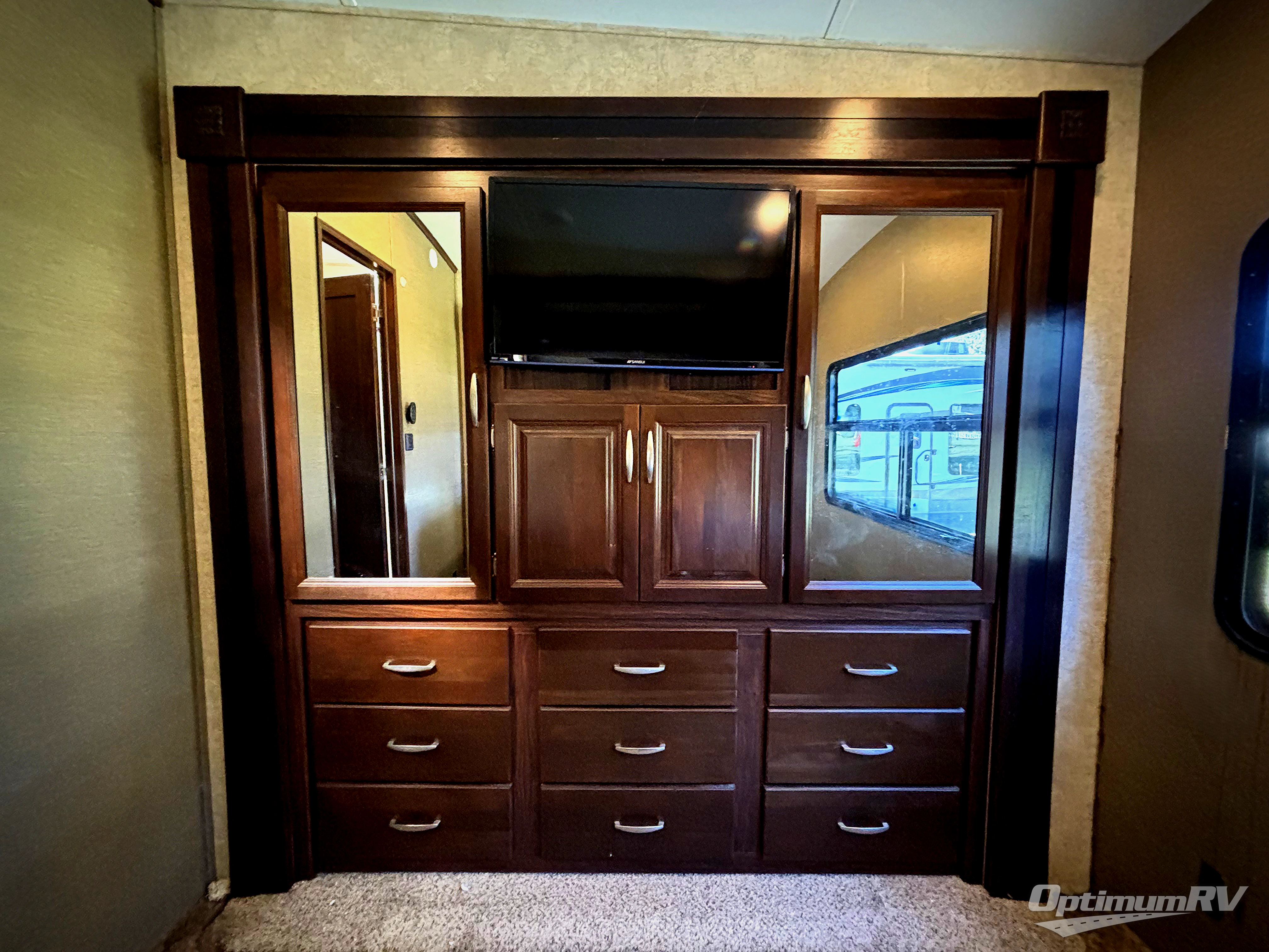 Step inside and notice the convenient closet just inside the door. Take the steps up front to a spacious living room featuring dual opposing hide-a-bed slides. There is also a Euro chair and front entertainment center with an HD TV for your enjoyment. Plus the optional electric fireplace below creates a warm cozy feel.