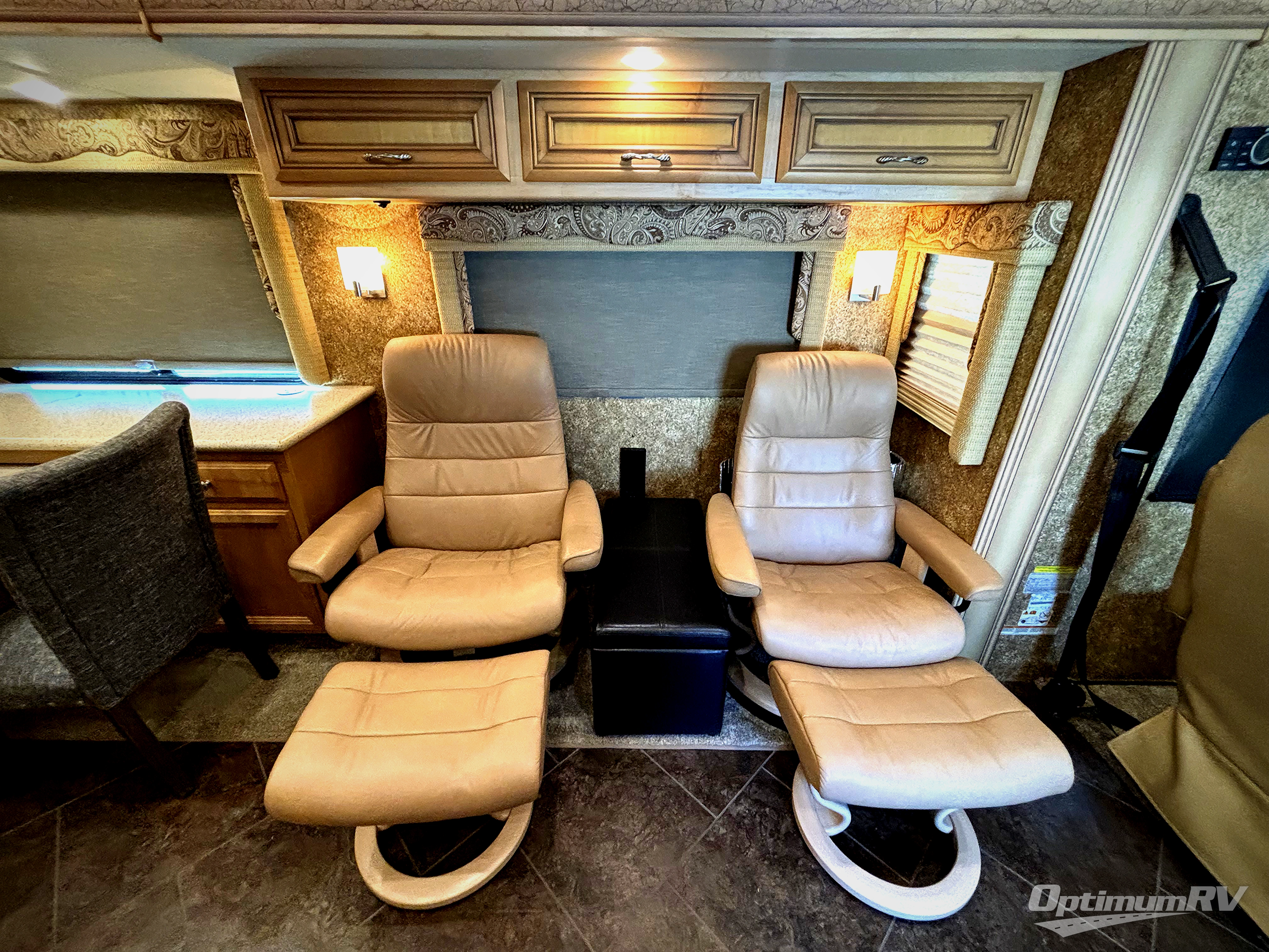 As you enter the motor home, to the left is a double kitchen sink, three burner range, and refrigerator. The opposite side offers a full wall slide with a sofa, dinette, pantry, wardrobe, two shirt closets, a chest of drawers, and an overhead TV.