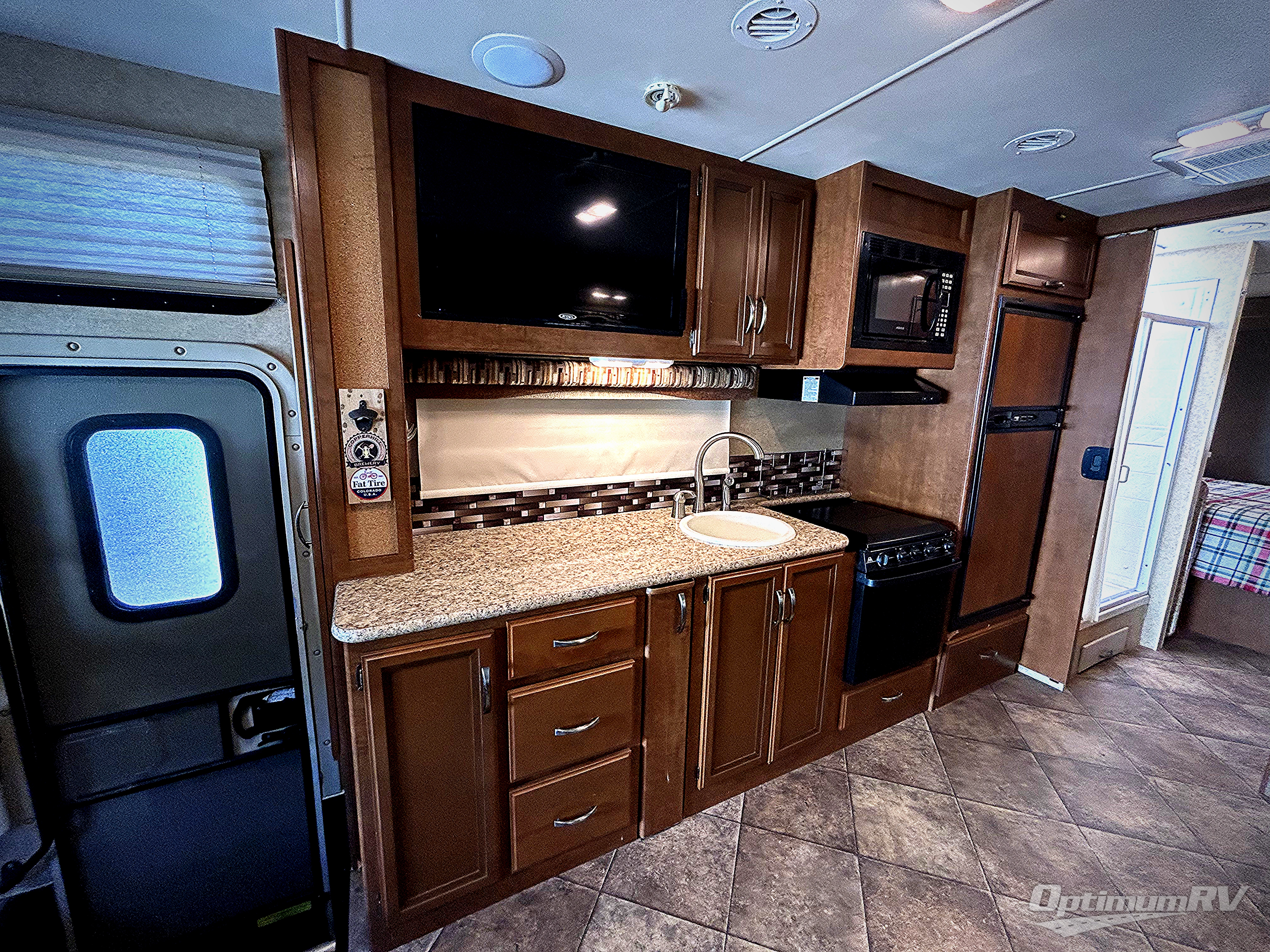 There is also additional sleeping space up front with the drop down overhead bunk, and so much more!
