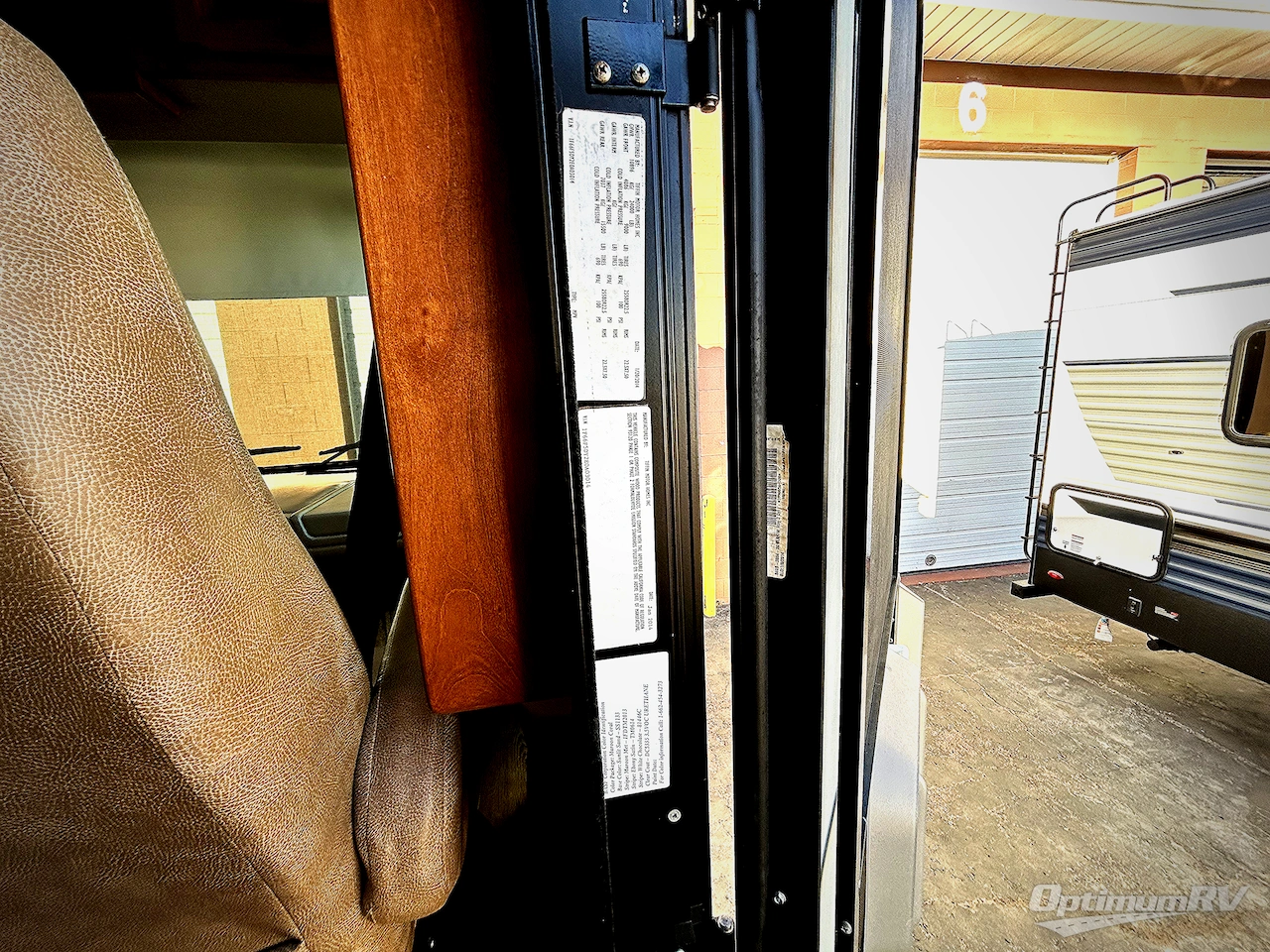 The front includes two captain's chairs with overhead cabinets at each side. You may also choose an optional TV at the center front and an optional driver side door.