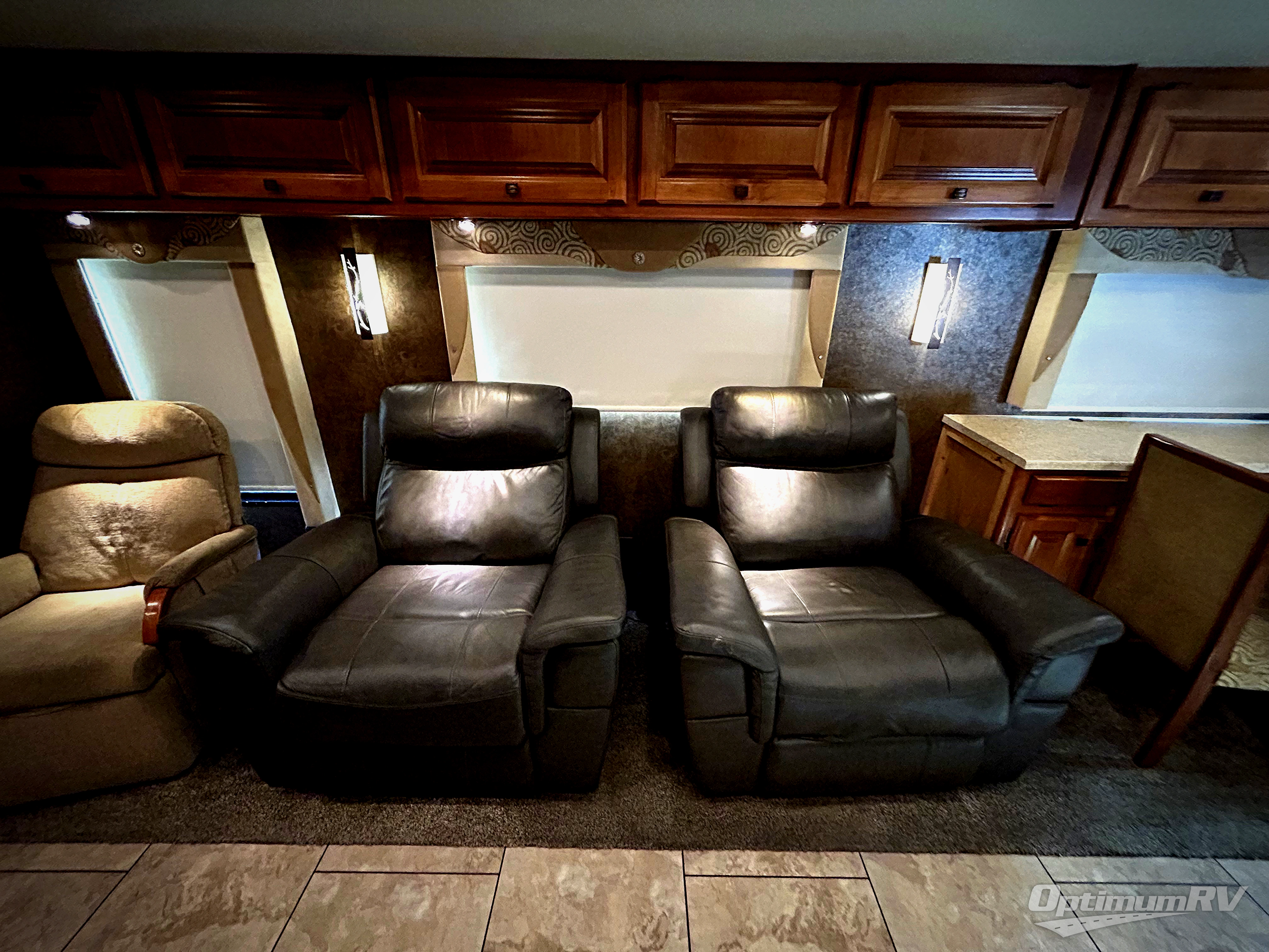 Step into the Allegro 36 LA class A motorhome to find two captain's chairs and overhead cabinets at each side in the front of the coach. You may choose an optional center TV and an optional driver side door.