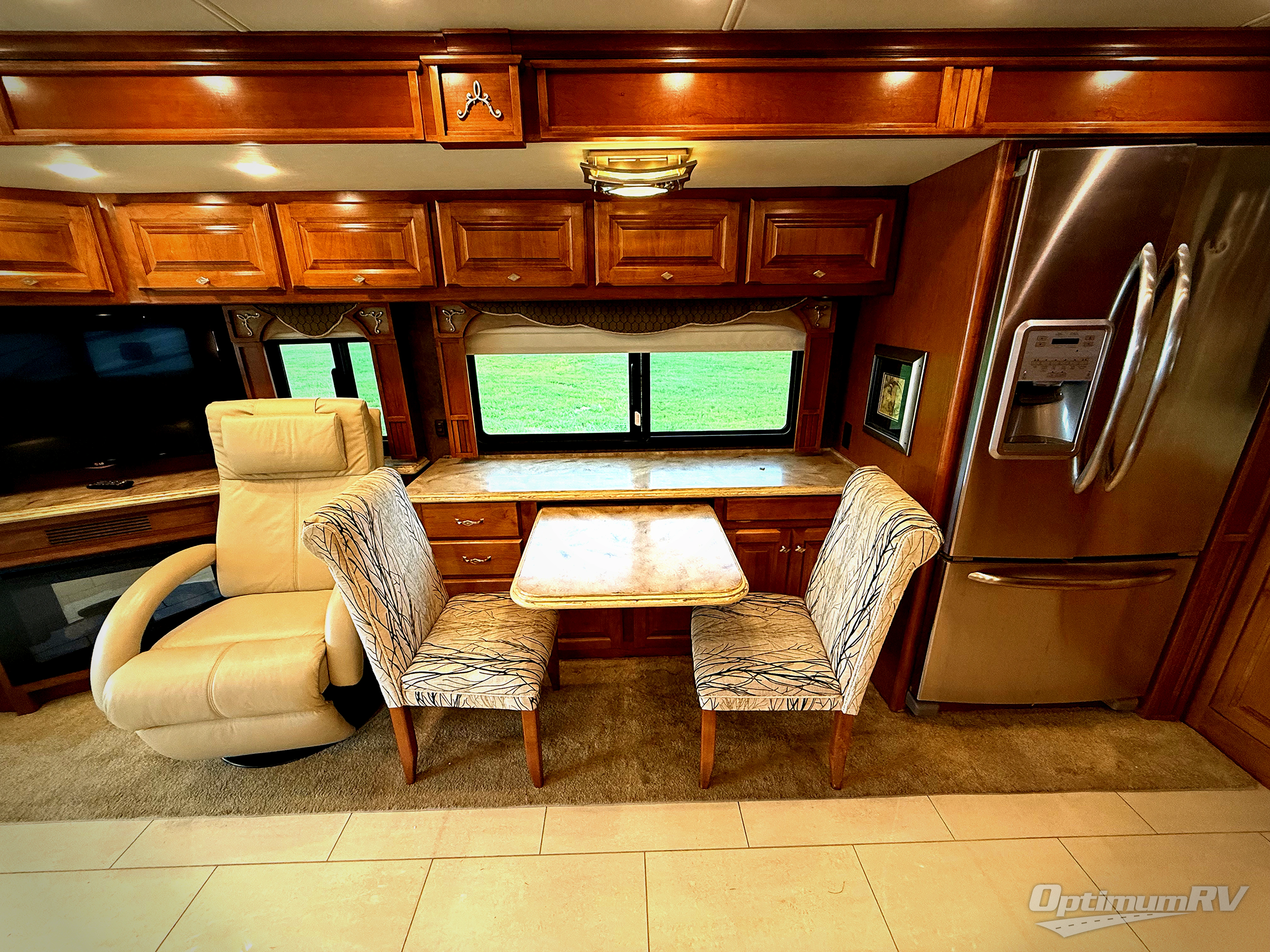 Moving into the living/dining area, the curb side holds a slide out with a residential refrigerator, booth dinette, chair, overhead cabinets and a TV in the corner with an optional fireplace below TV or a sofa bed. In place of the booth dinette you may choose a dinette with computer workstation or a U-shaped booth dinette. You may also choose an optional exterior TV.