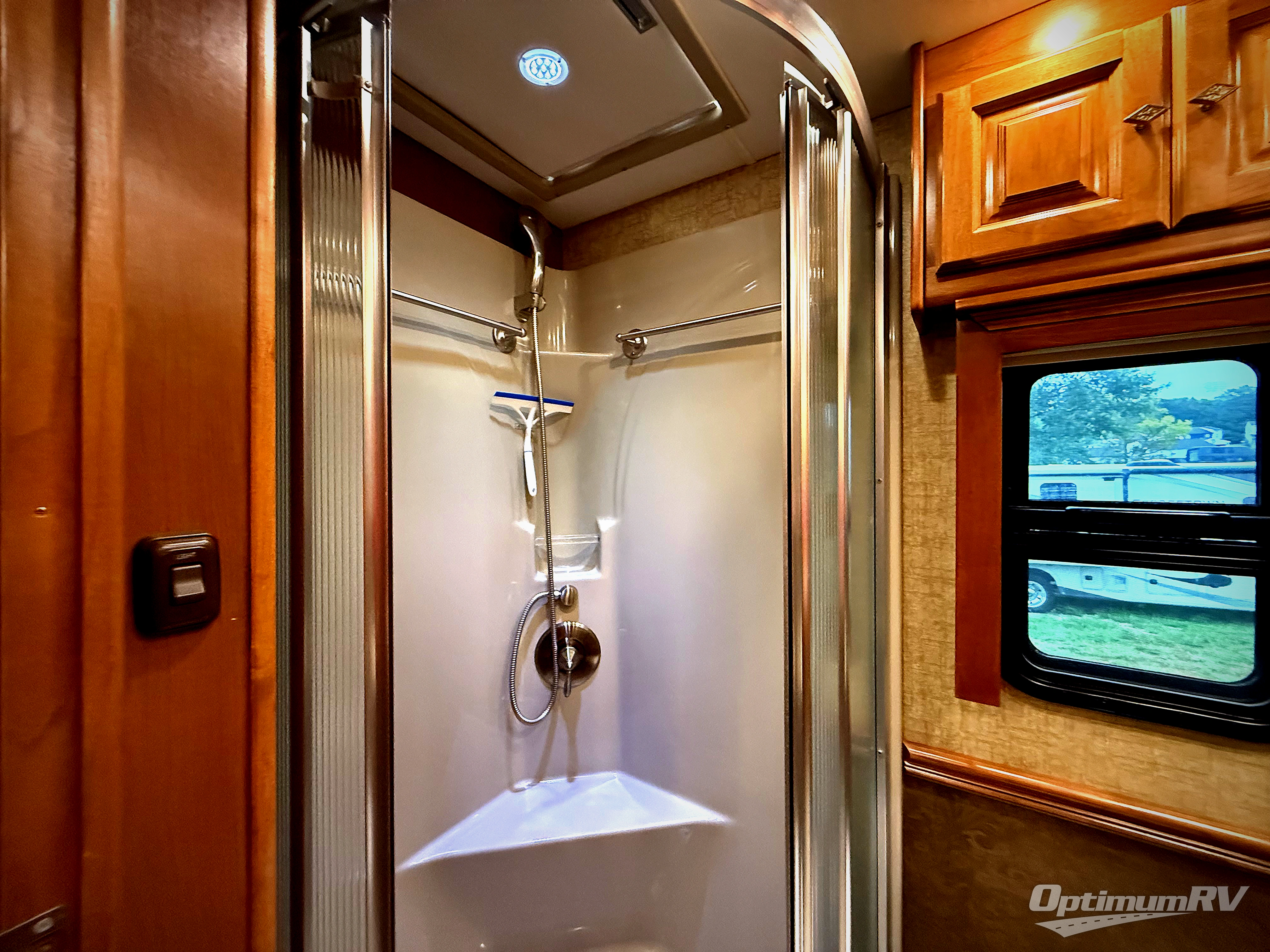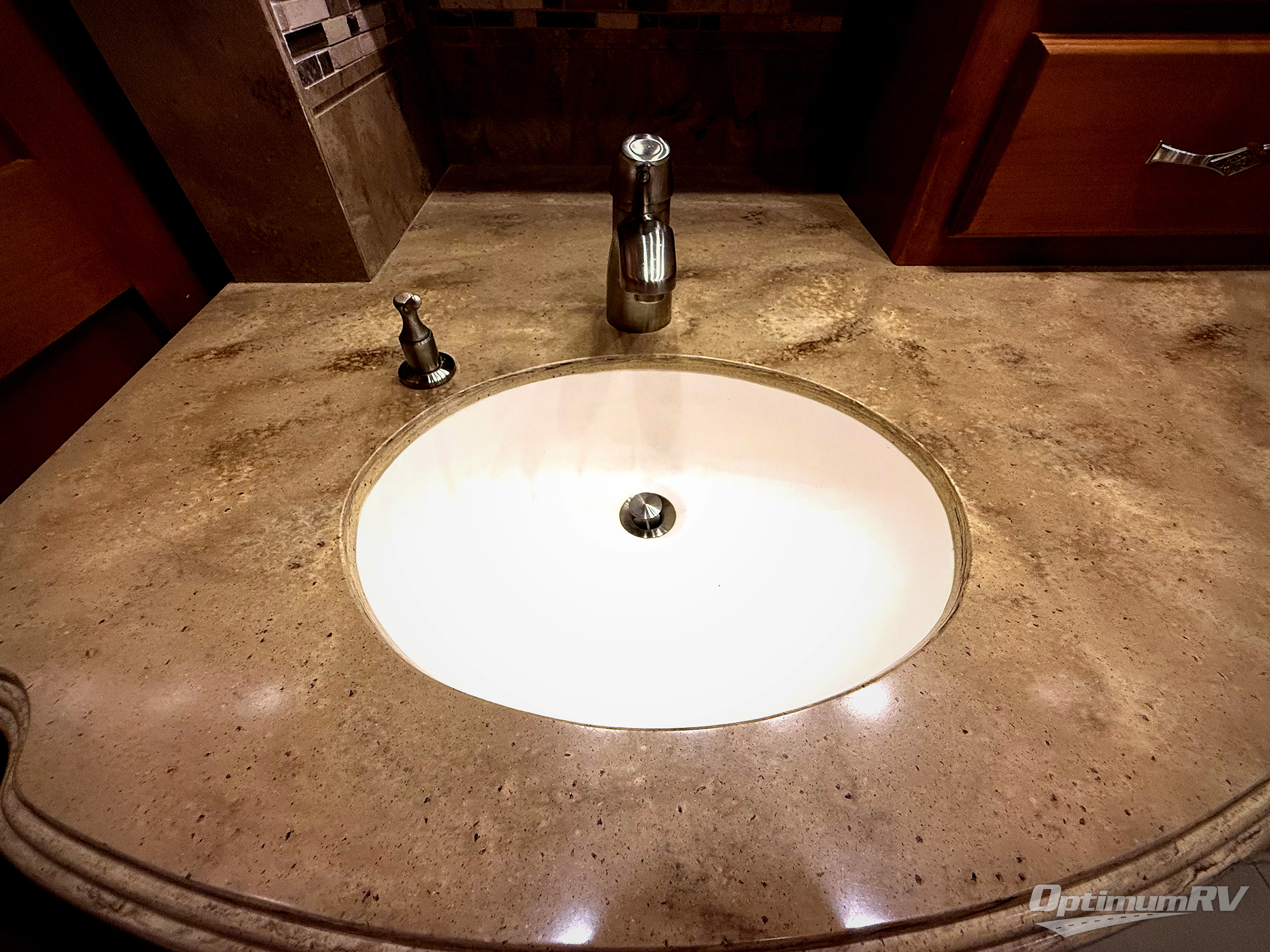 Just outside the bedroom, this slide continues with overhead cabinets and a large vanity with sink. You may choose an optional wardrobe in place of the vanity sink. A side aisle bathroom is across the hall and includes a corner shower, toilet and corner vanity sink.