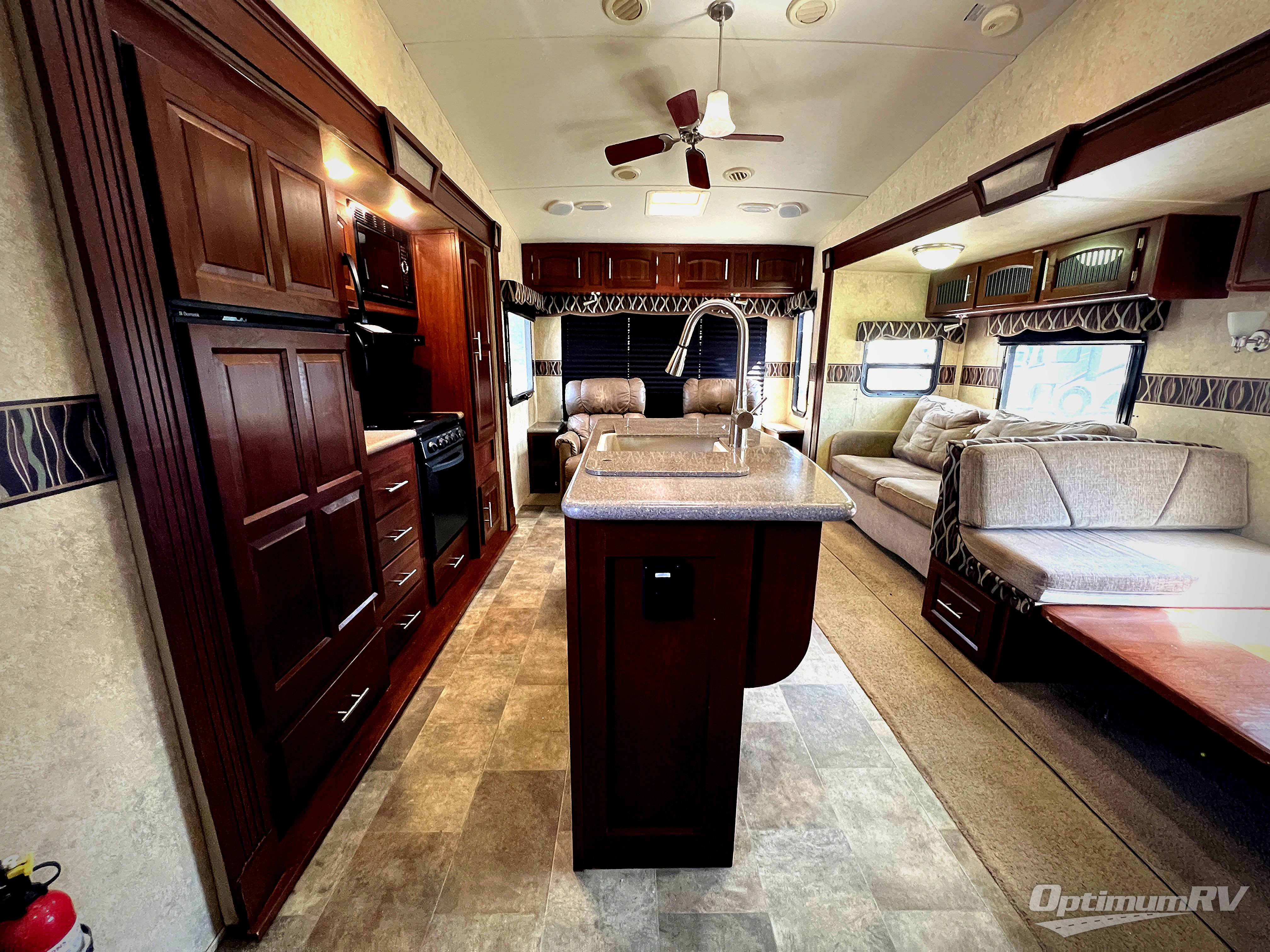 The Flagstaff Classic Super Lite 8528IKWS fifth wheel by Forest River offers triple slides and a kitchen island.
