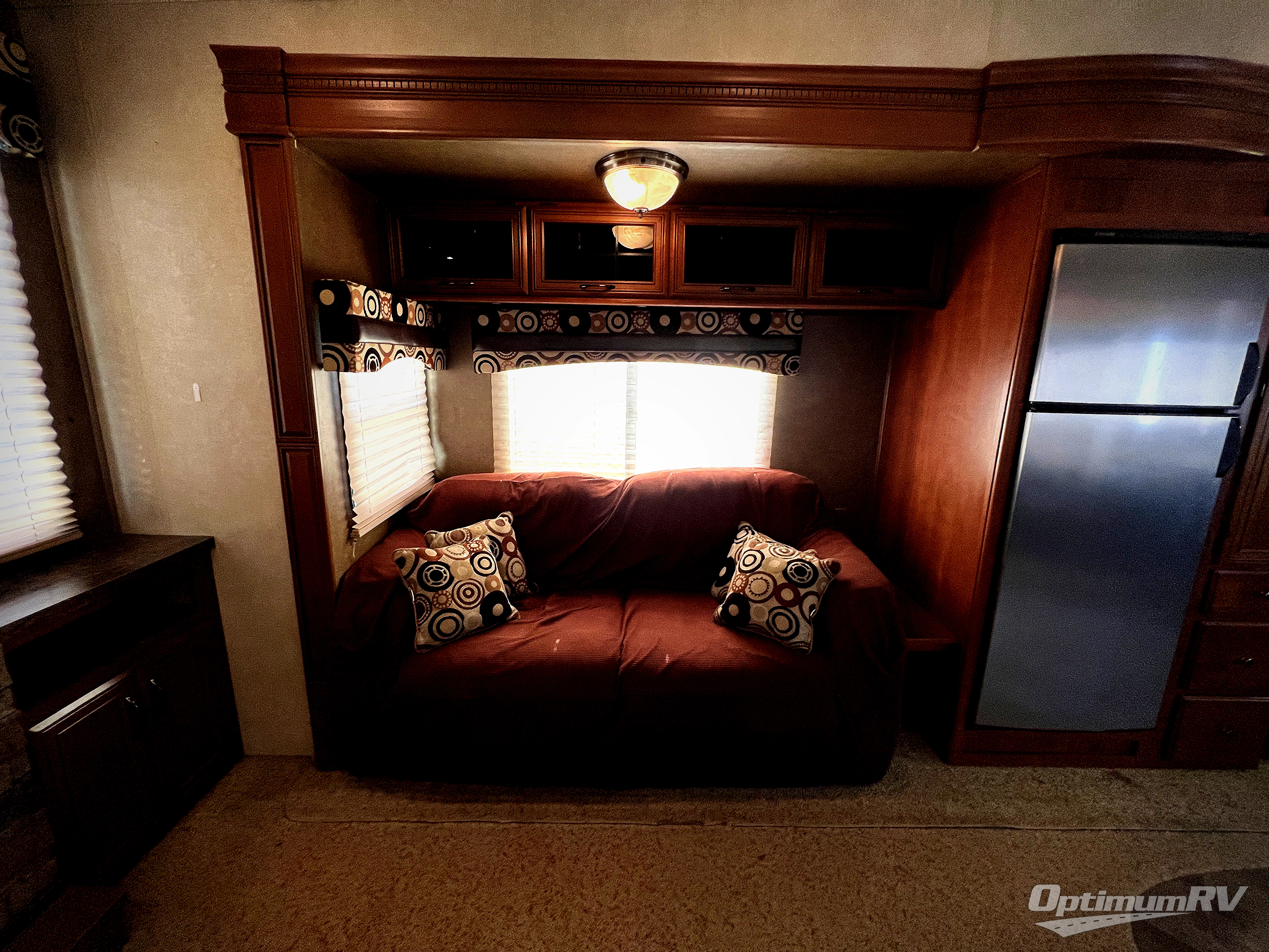 There are plenty of overhead cabinets throughout the inside of the fifth wheel, and a large exterior pass thru storage.