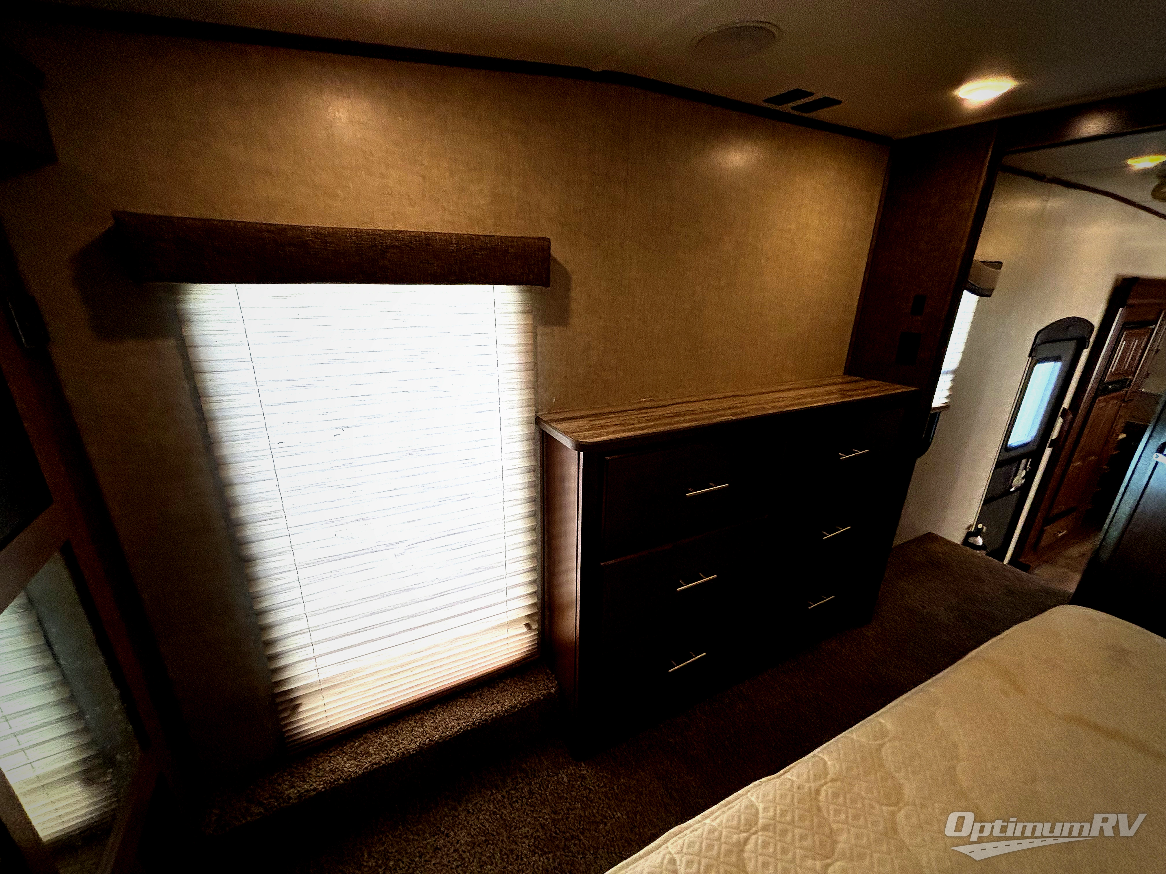 The front bedroom features a king size bed slide with upgraded pillow-top mattress, or optional queen. There is a dresser along the opposite wall of the bed, and a full front wardrobe with sliding doors for all of your hanging clothes, plus it has been prepped for a washer and dryer as well.