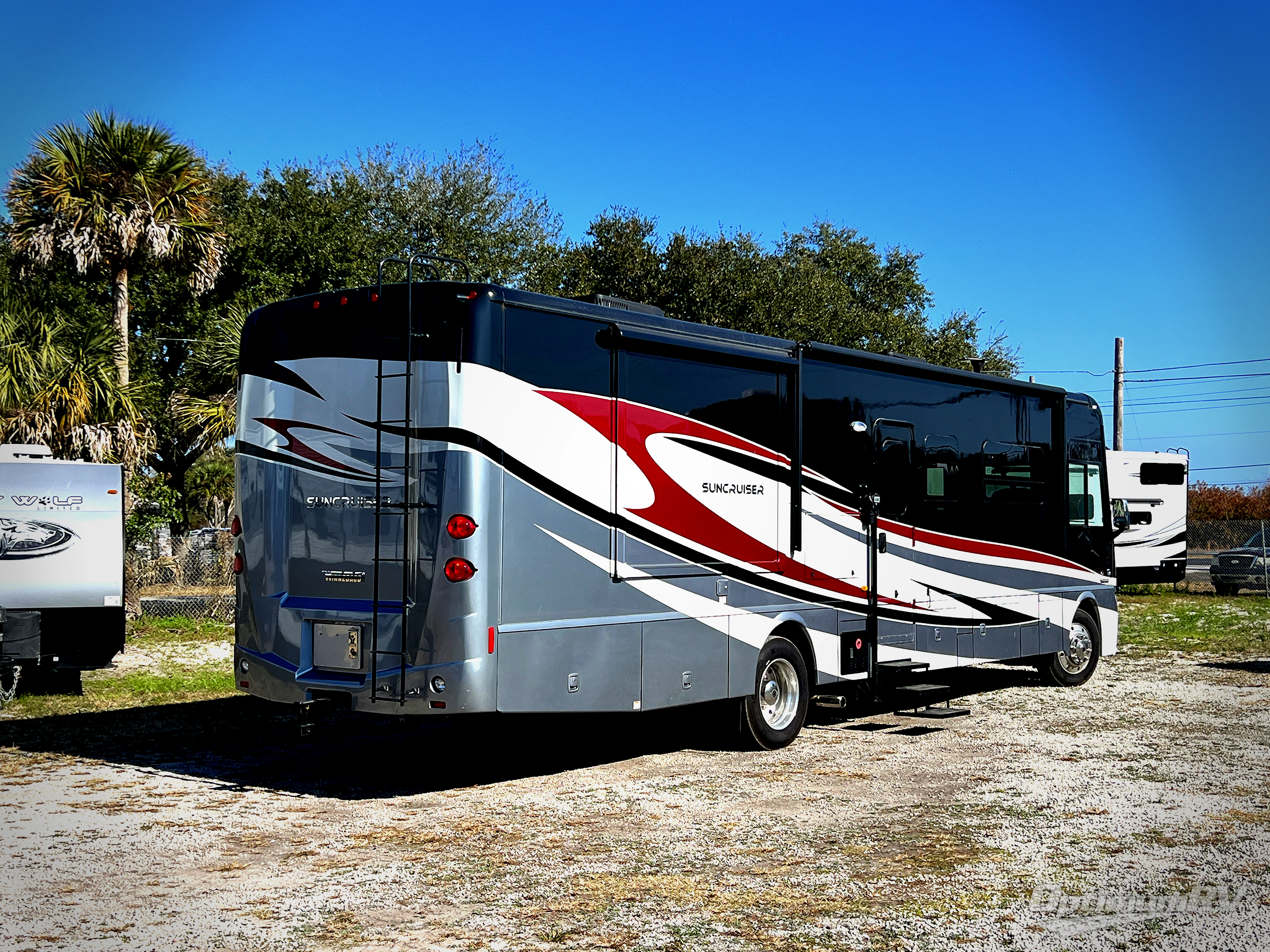 This Itasca Suncruiser 37F features triple slides with one full wall slide, a bath and a half, plus king bed, and so much more!