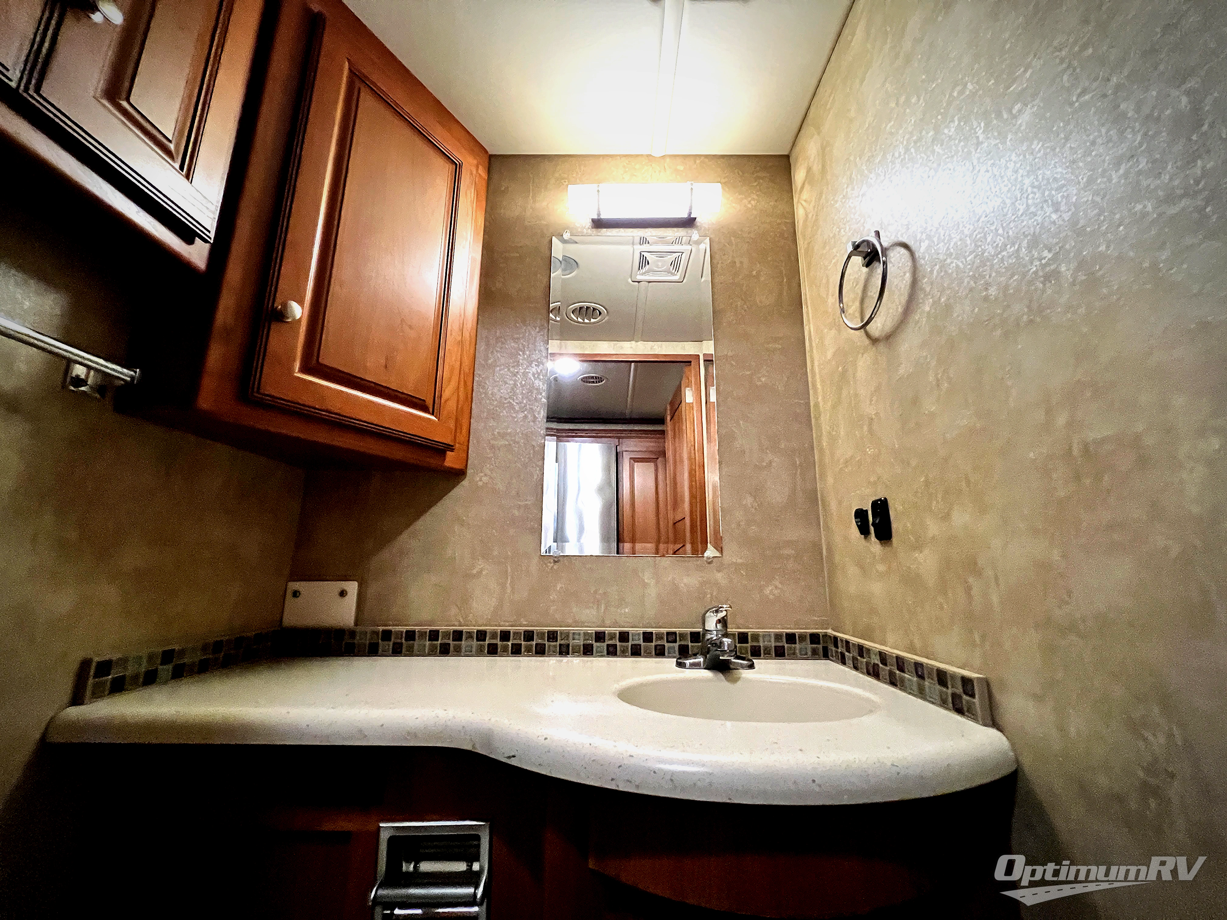 Step into this class A coach and see for yourself how much space is available. There is a Euro recliner and Rest Easy Sofa to the right of the entry door for seating. The sofa features seatbelts for safe traveling.
