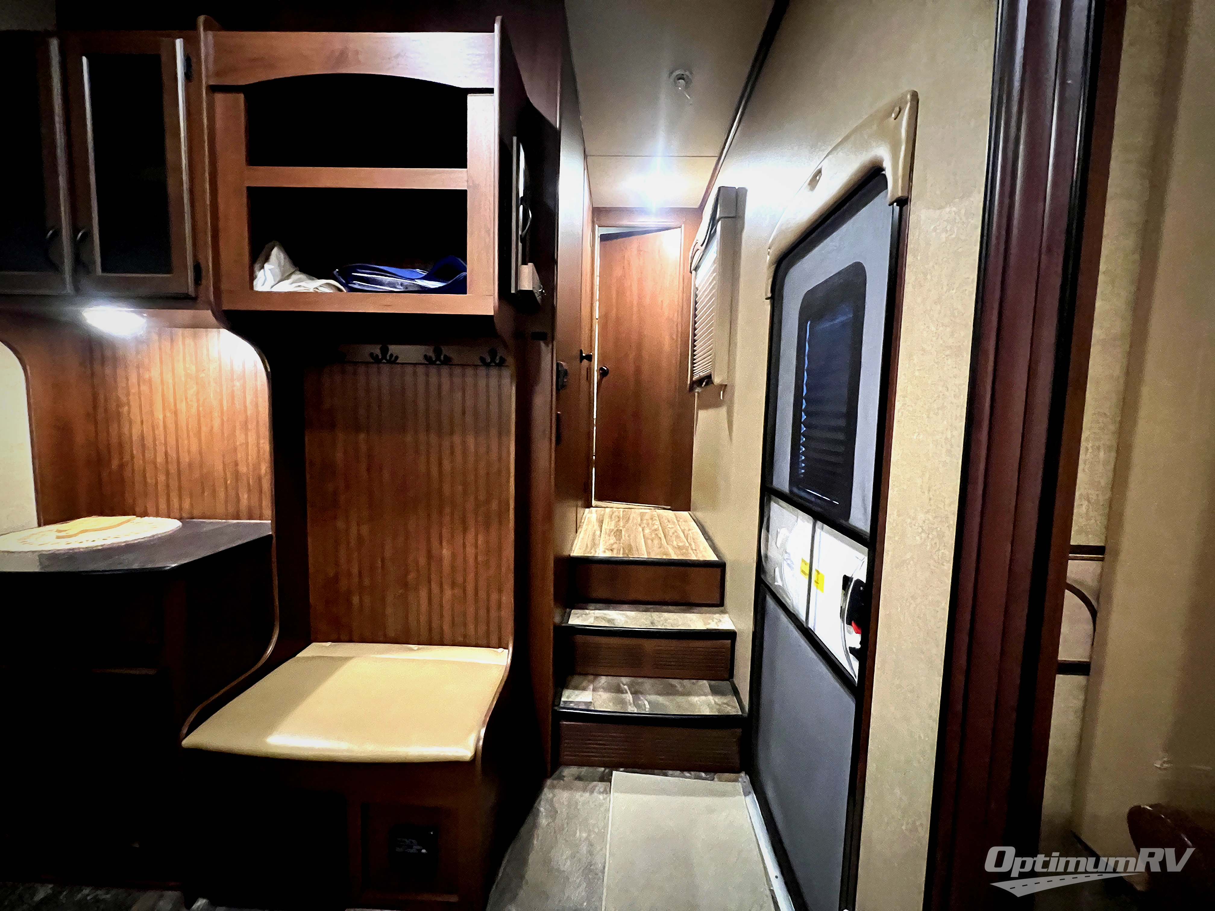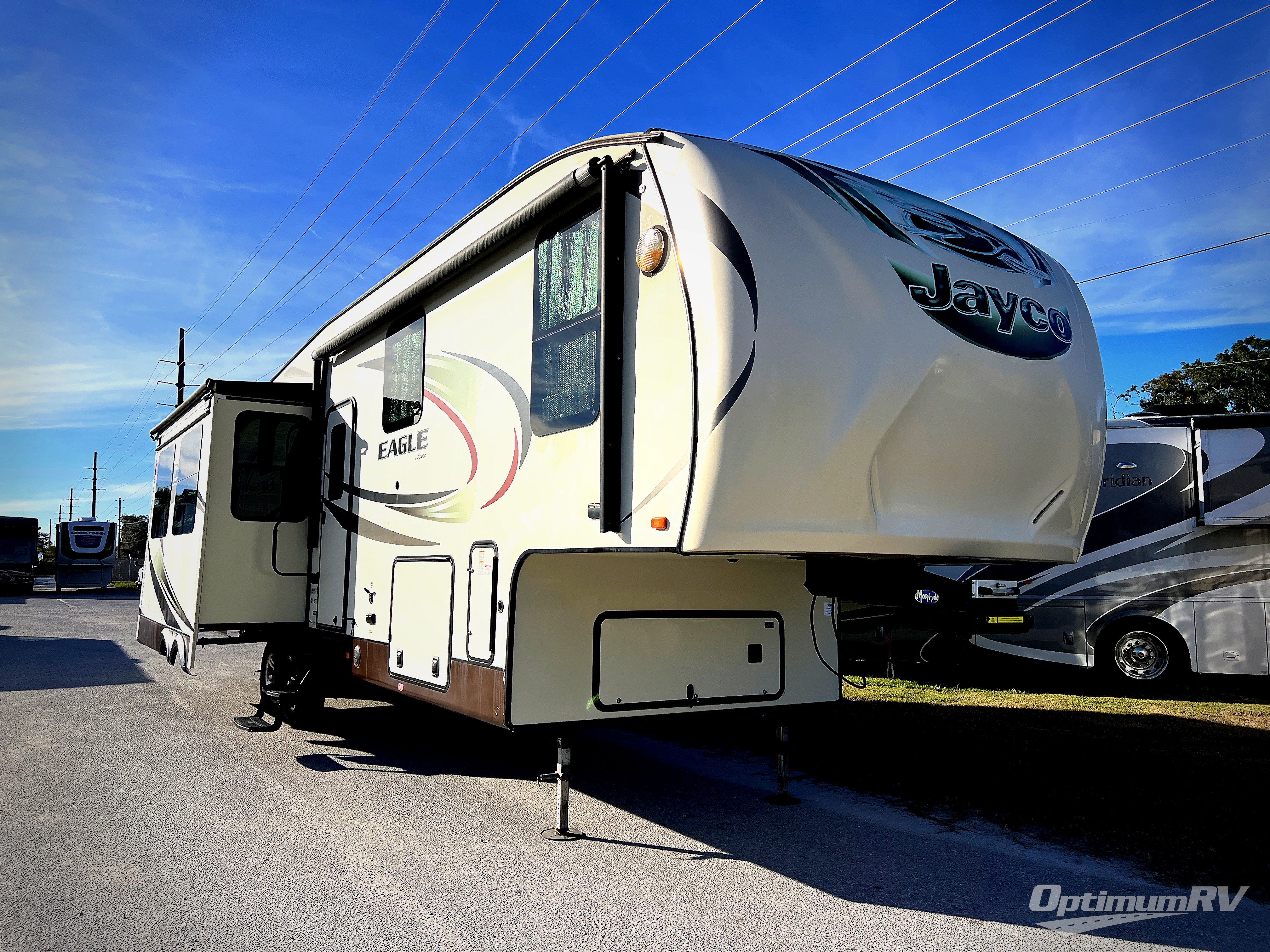 The 321RLTS Eagle Premier fifth wheel by Jayco offers triple slides and a rear entertainment center.