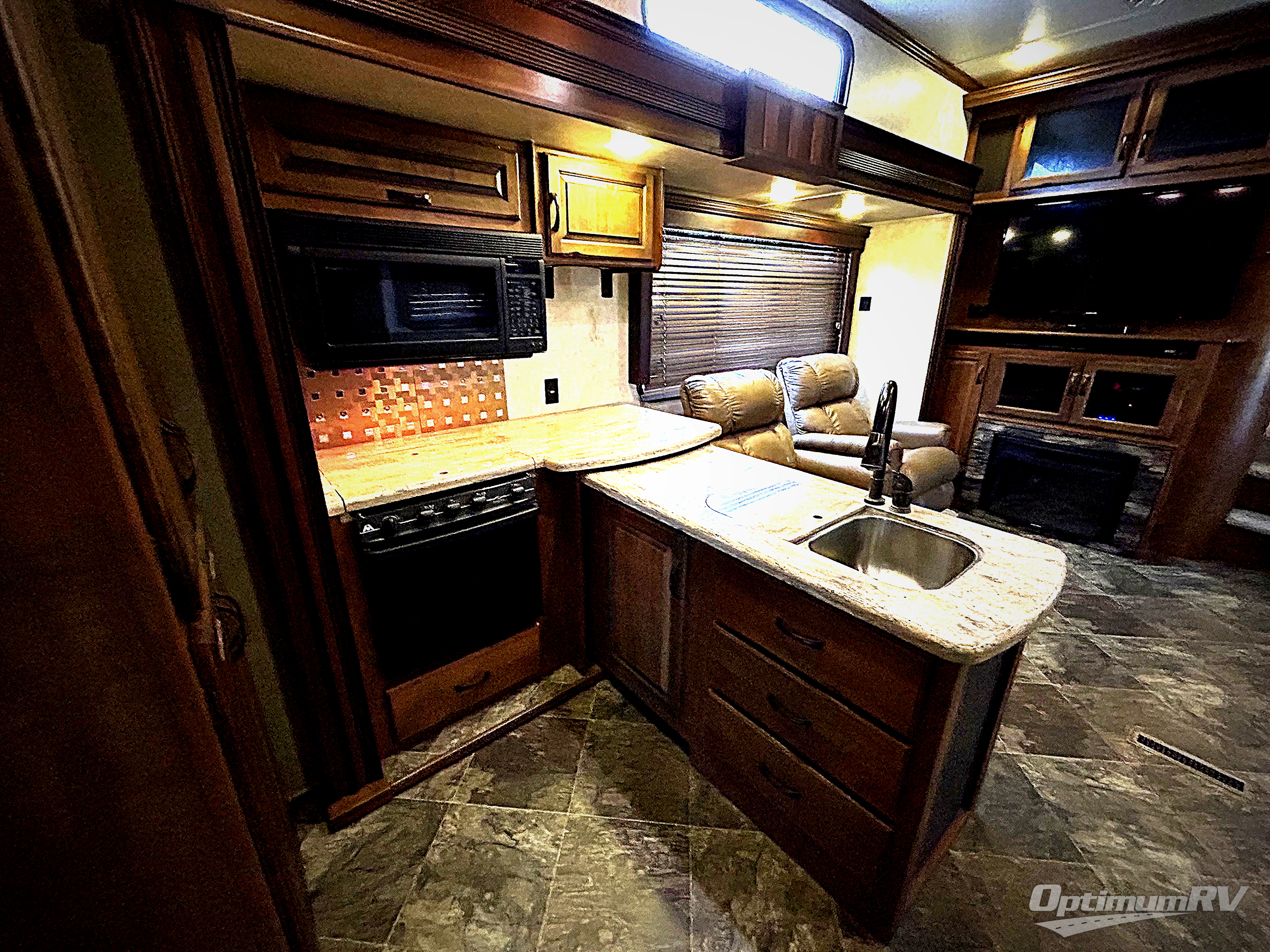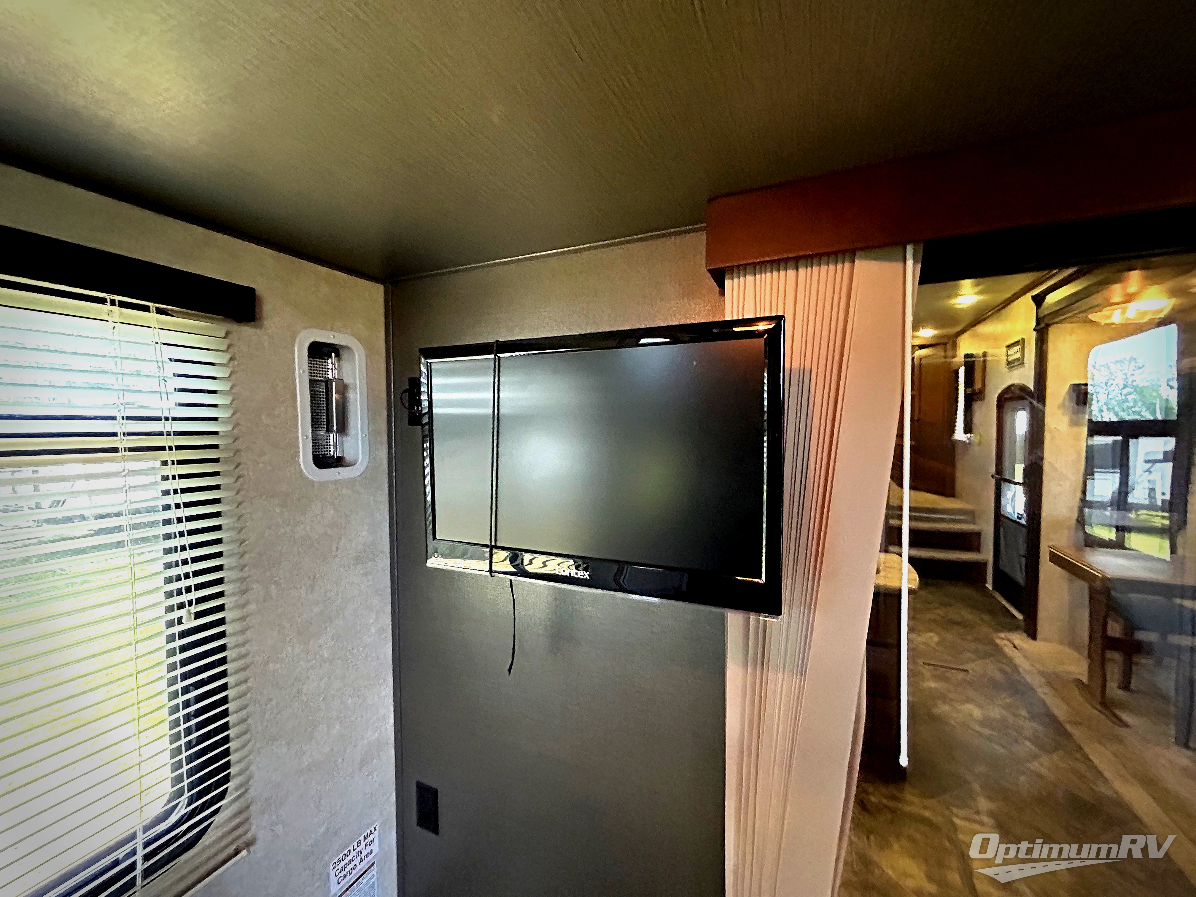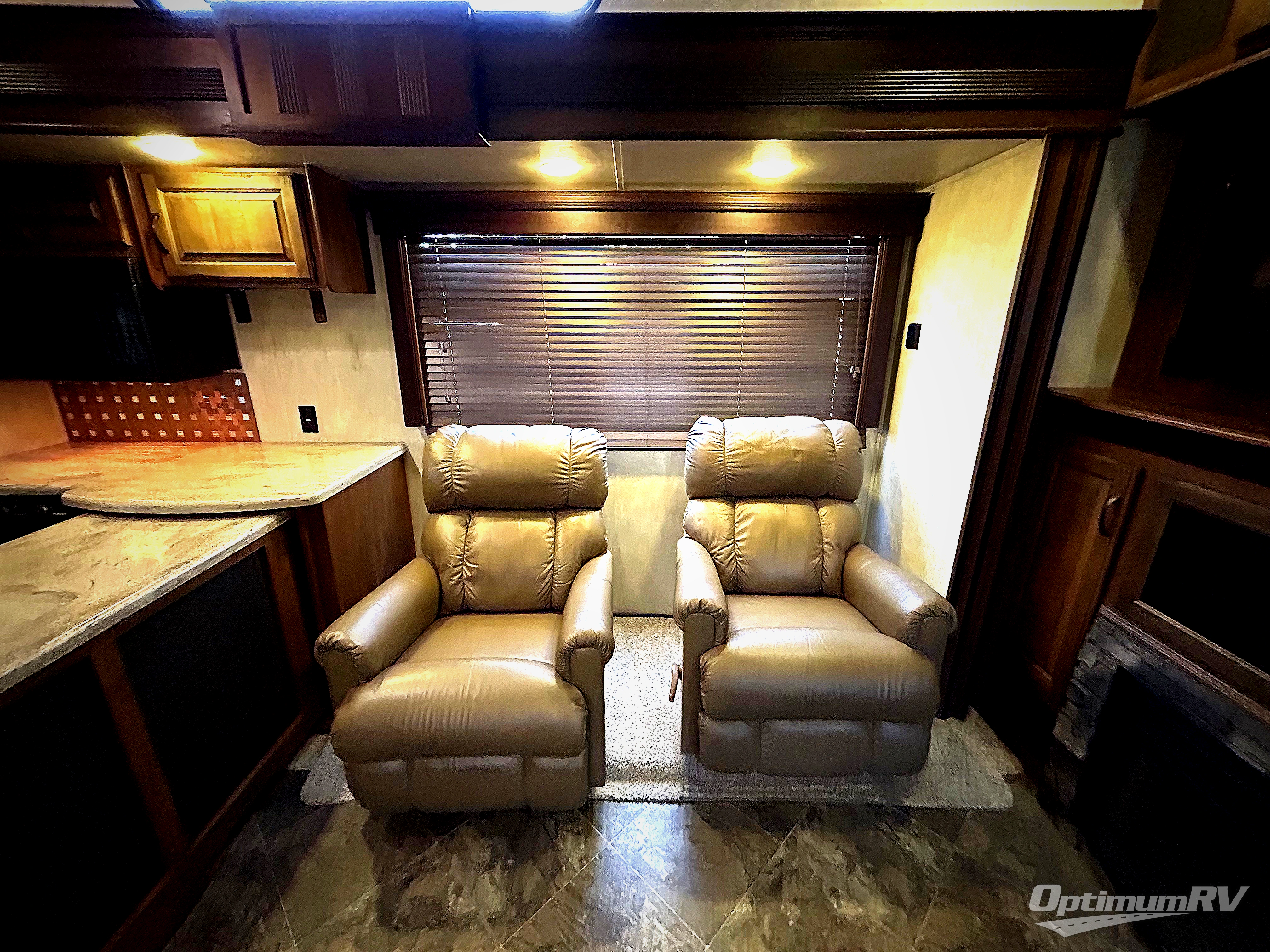 You will have no problem traveling with your favorite toys in this Keystone Raptor model 412TS. This fifth wheel toy hauler has everything you need for comfort on the inside, plus a 12' garage with 30 gallon fuel station to keep the toys going all weekend long.