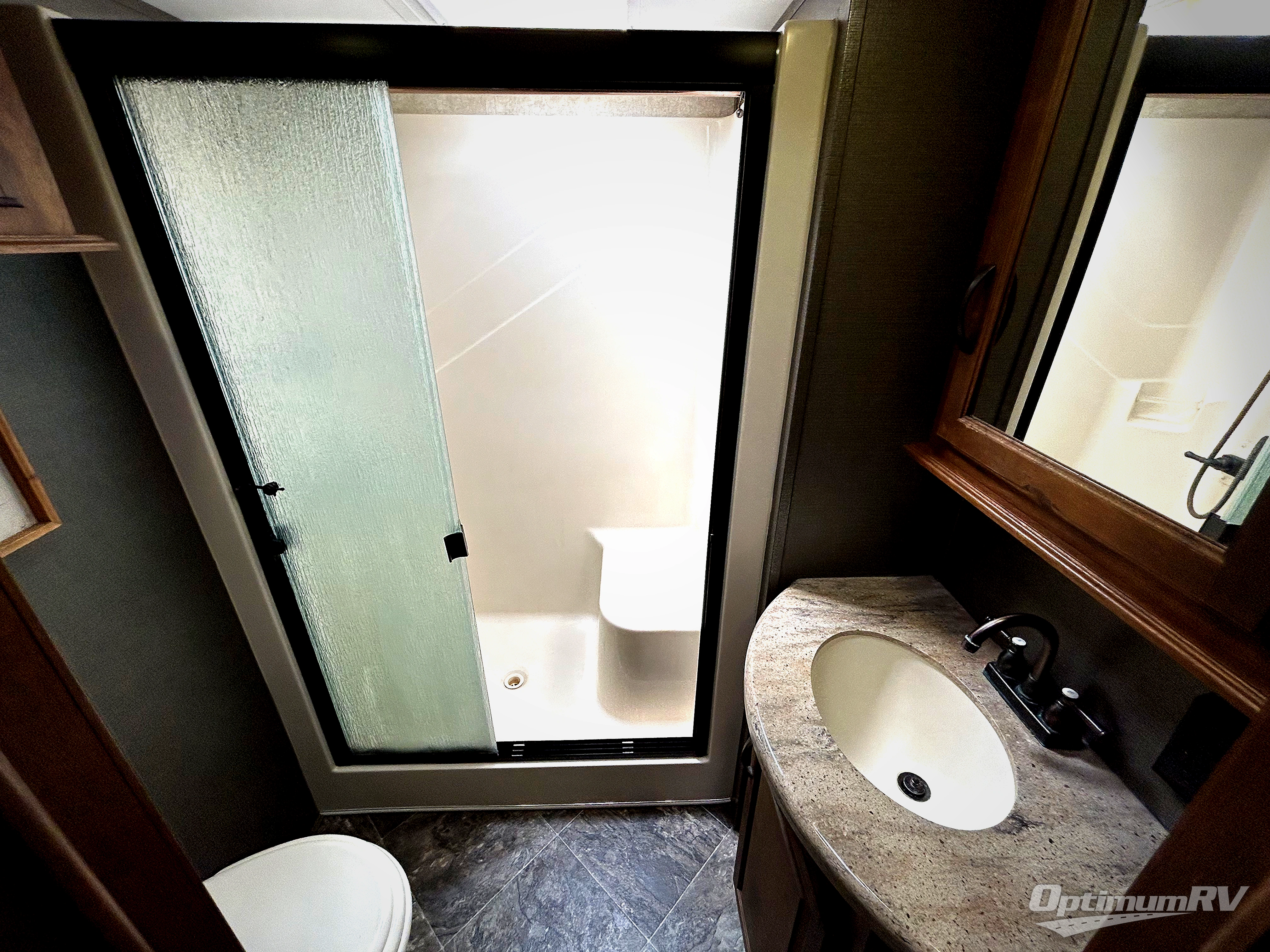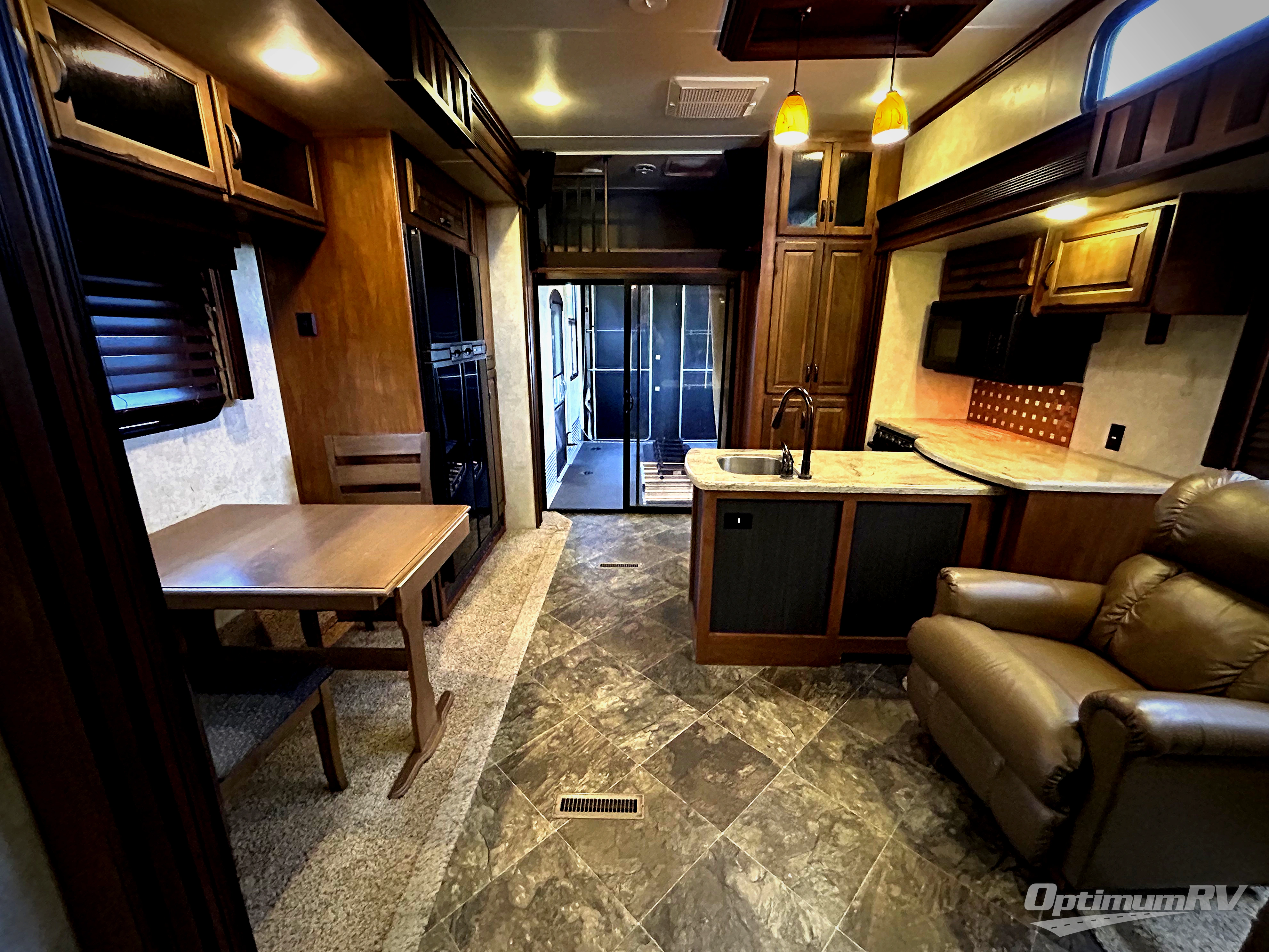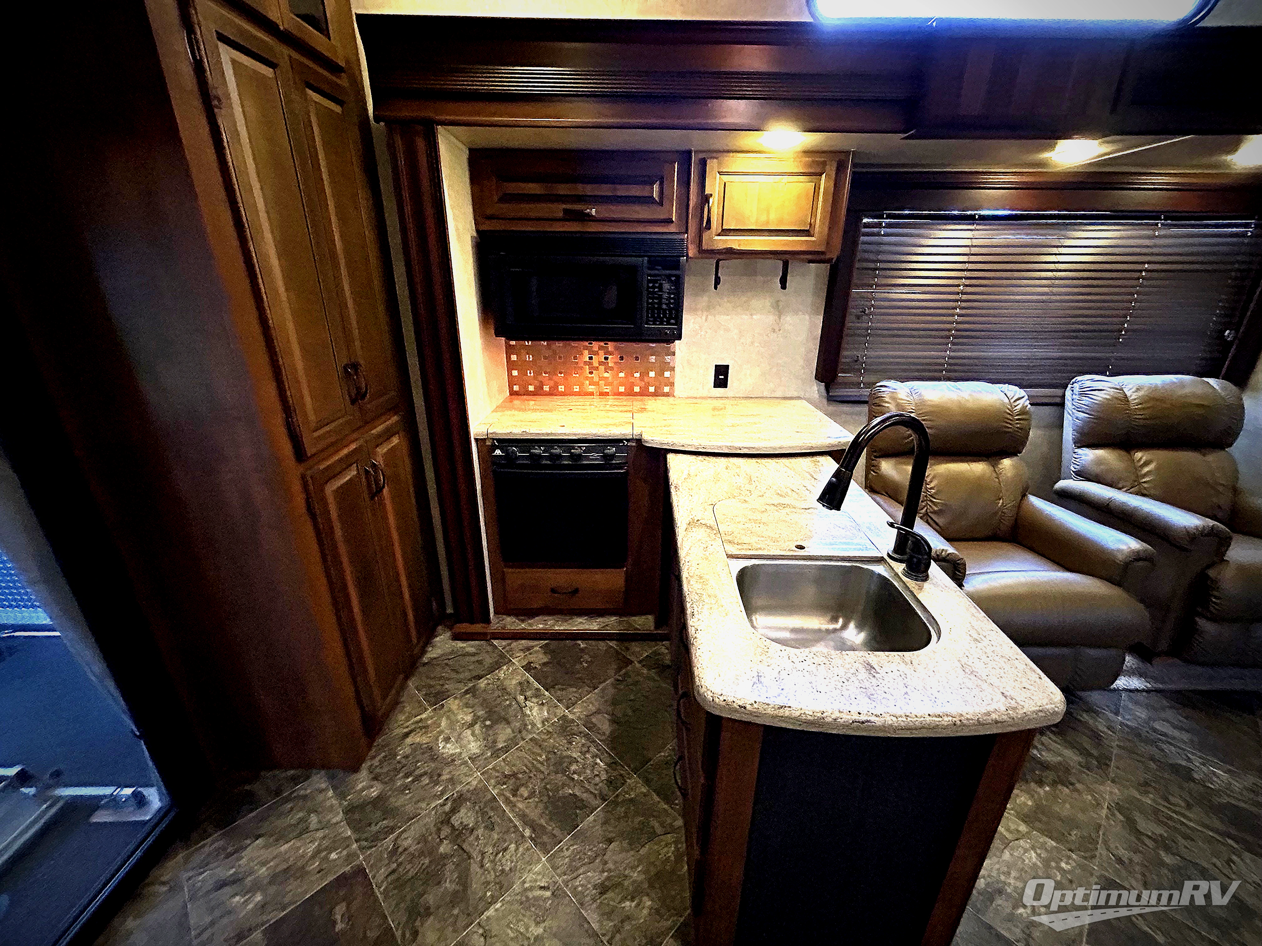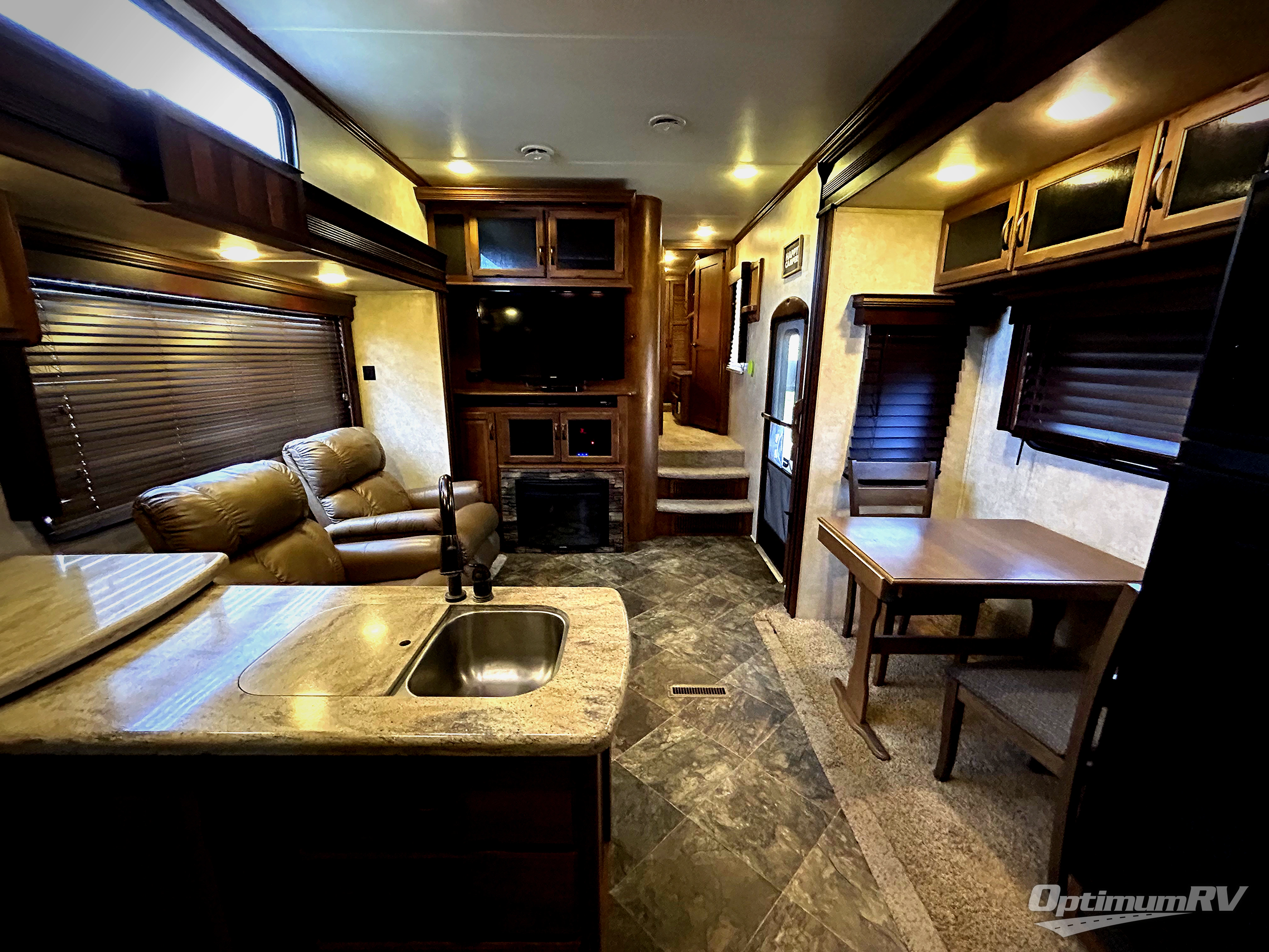 You will have no problem traveling with your favorite toys in this Keystone Raptor model 412TS. This fifth wheel toy hauler has everything you need for comfort on the inside, plus a 12' garage with 30 gallon fuel station to keep the toys going all weekend long.