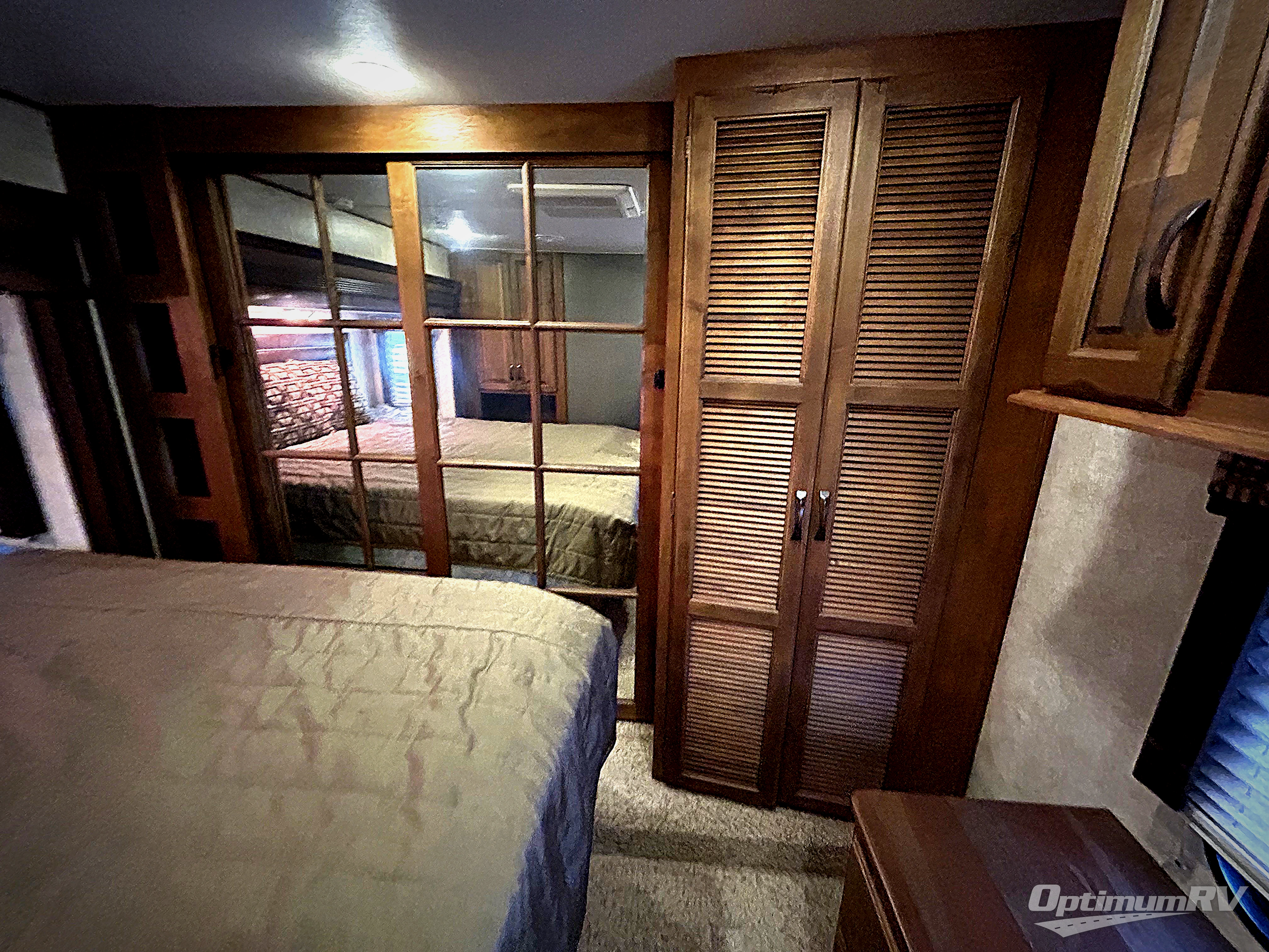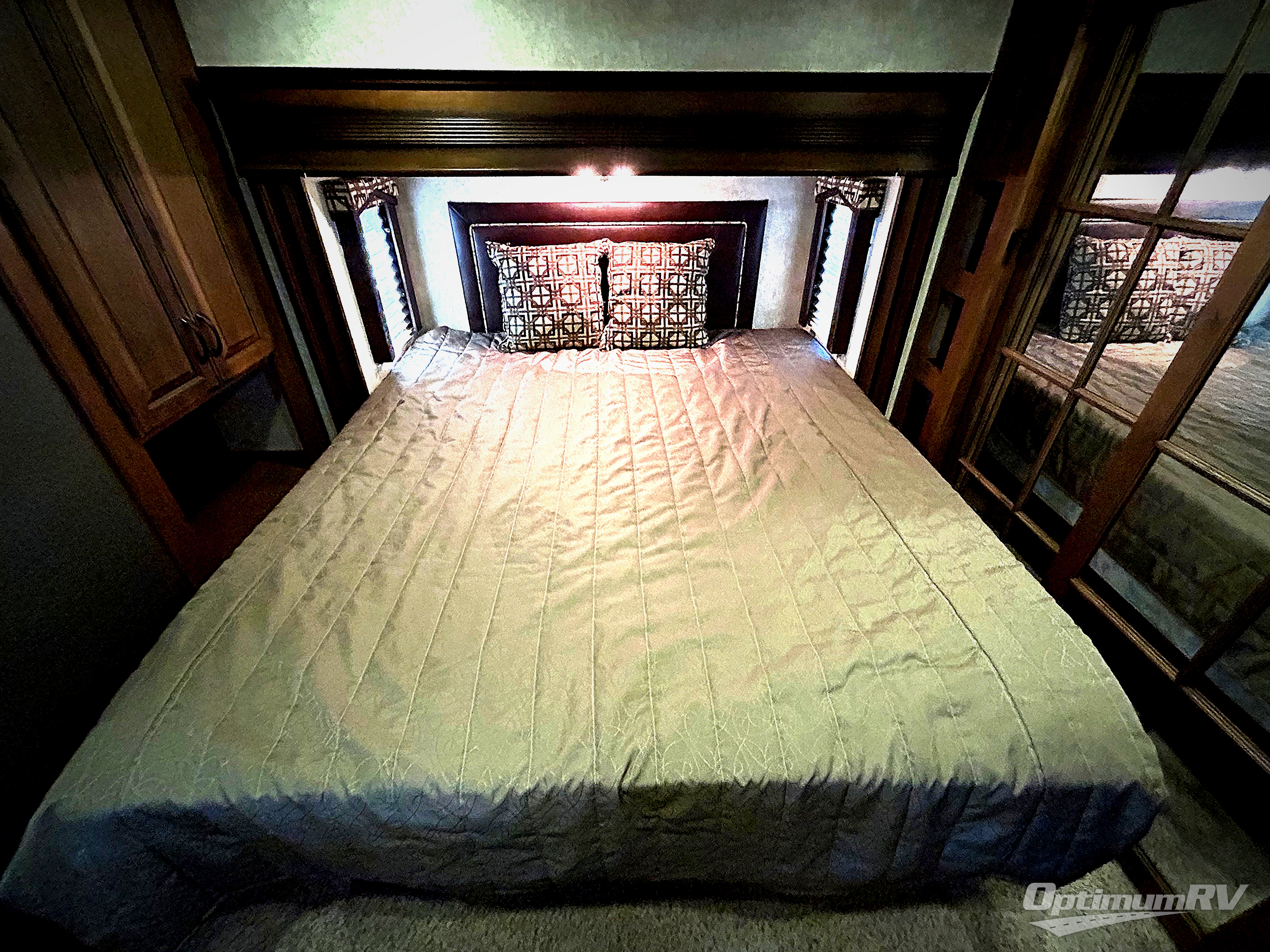 Head into the front private bedroom with slide out king size bed, dresser with entertainment center above, and full wall wardrobes along the front wall. There is also a convenient wardrobe to the left of the bed with laundry chute, and so much more!