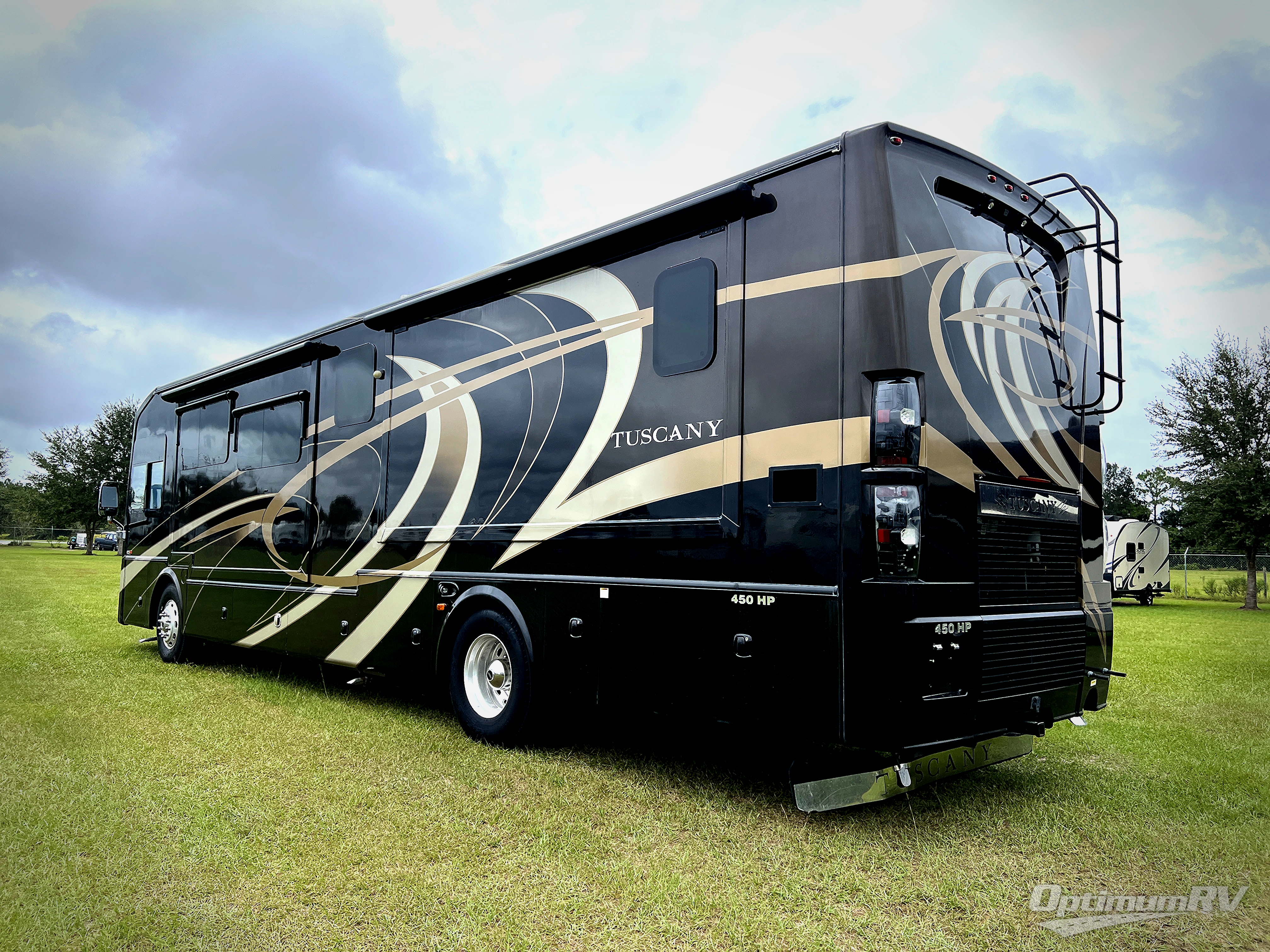 One and a half baths, a rear master bedroom with king sized bed, triple slides, and a retractable 60" LED TV are just a few of the highlights in this Tuscany 40DX class A diesel coach.