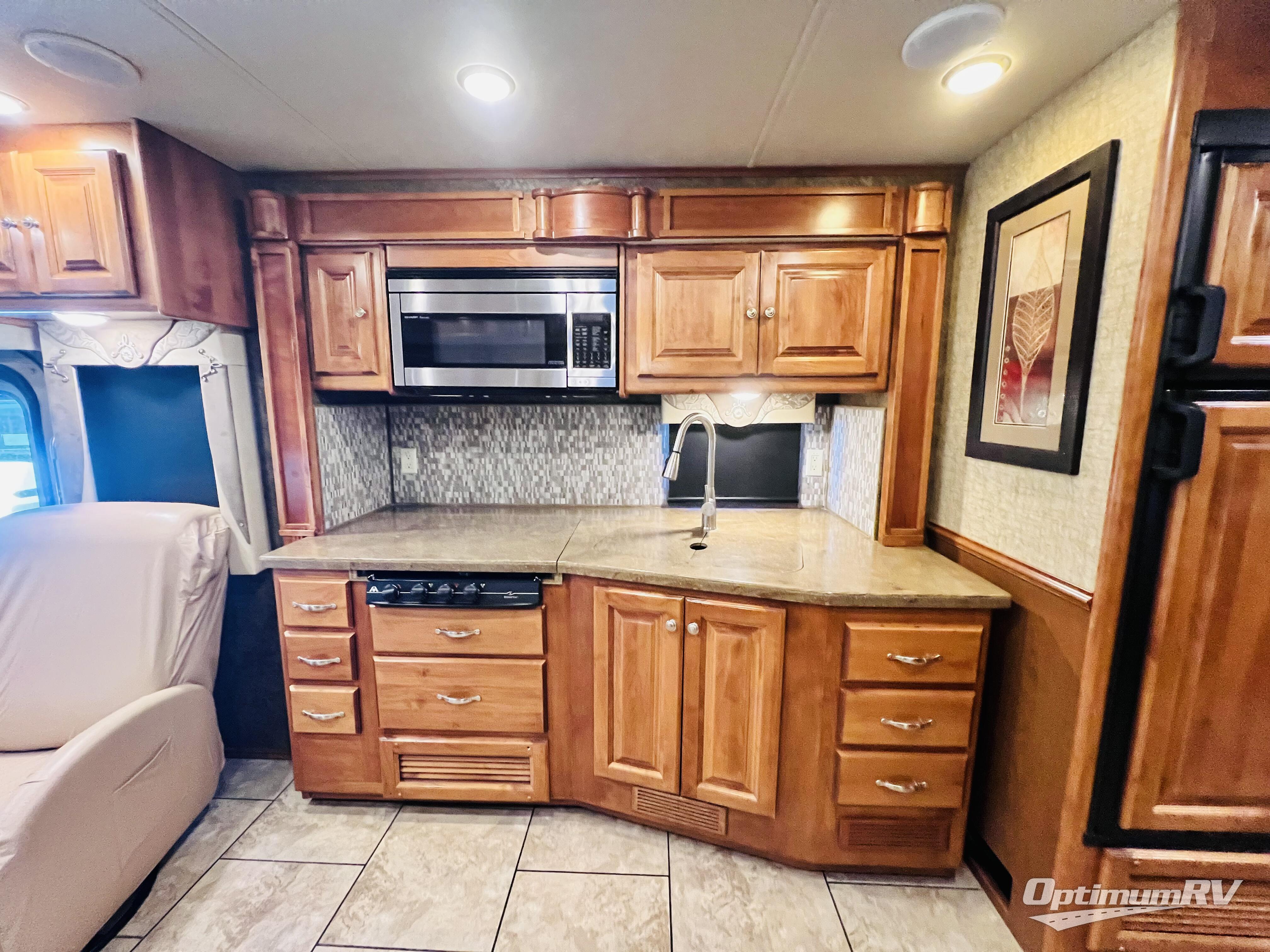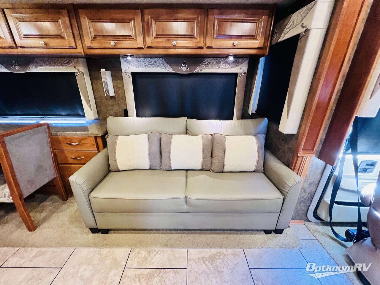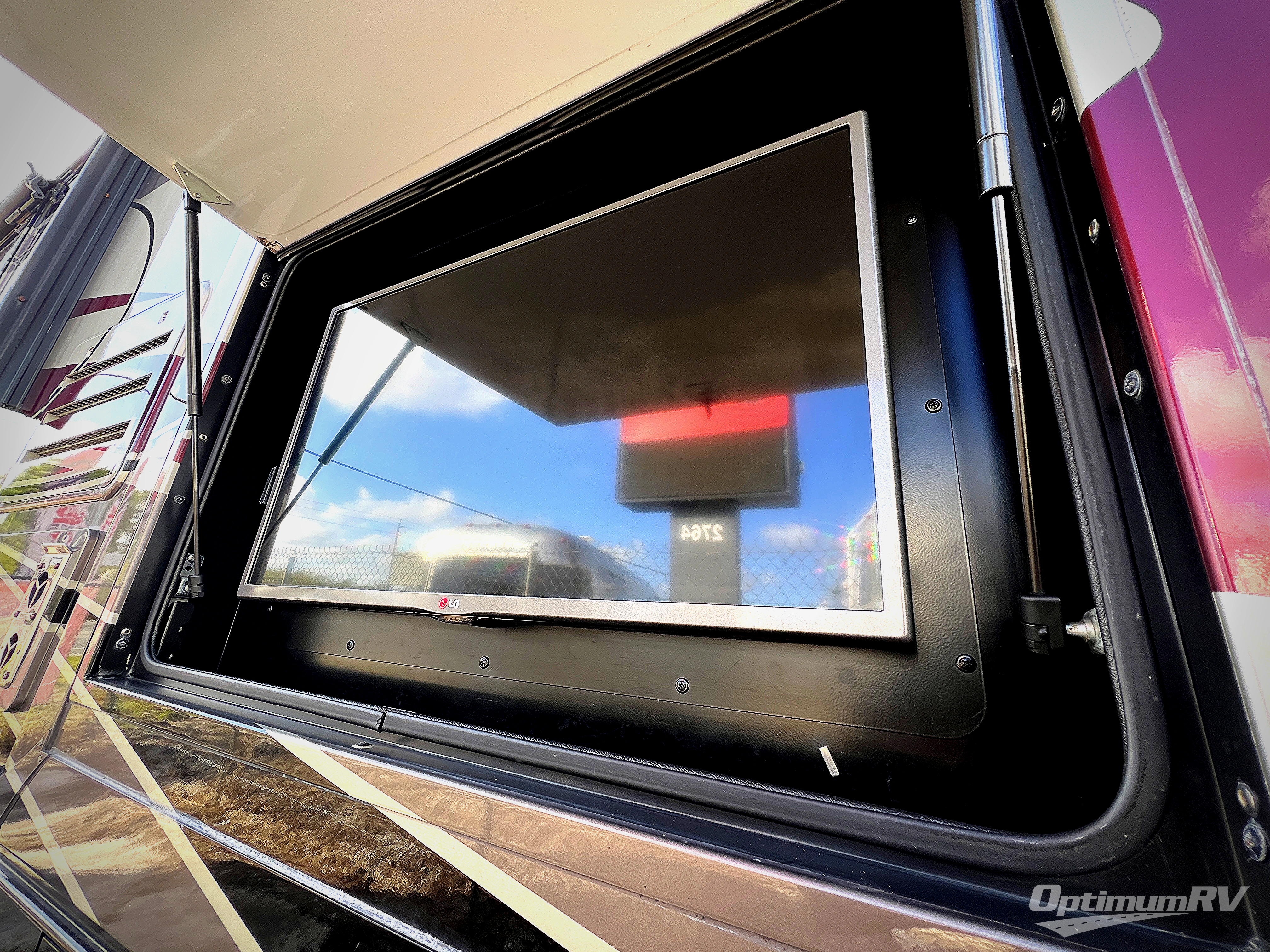A large slide out on the driver's side has a sofa bed, a booth dinette and overhead cabinets. A standard TV with a pantry below is on an inside wall and the TV faces the front of the coach. In place of the booth dinette, you may choose a dinette with computer workstation.