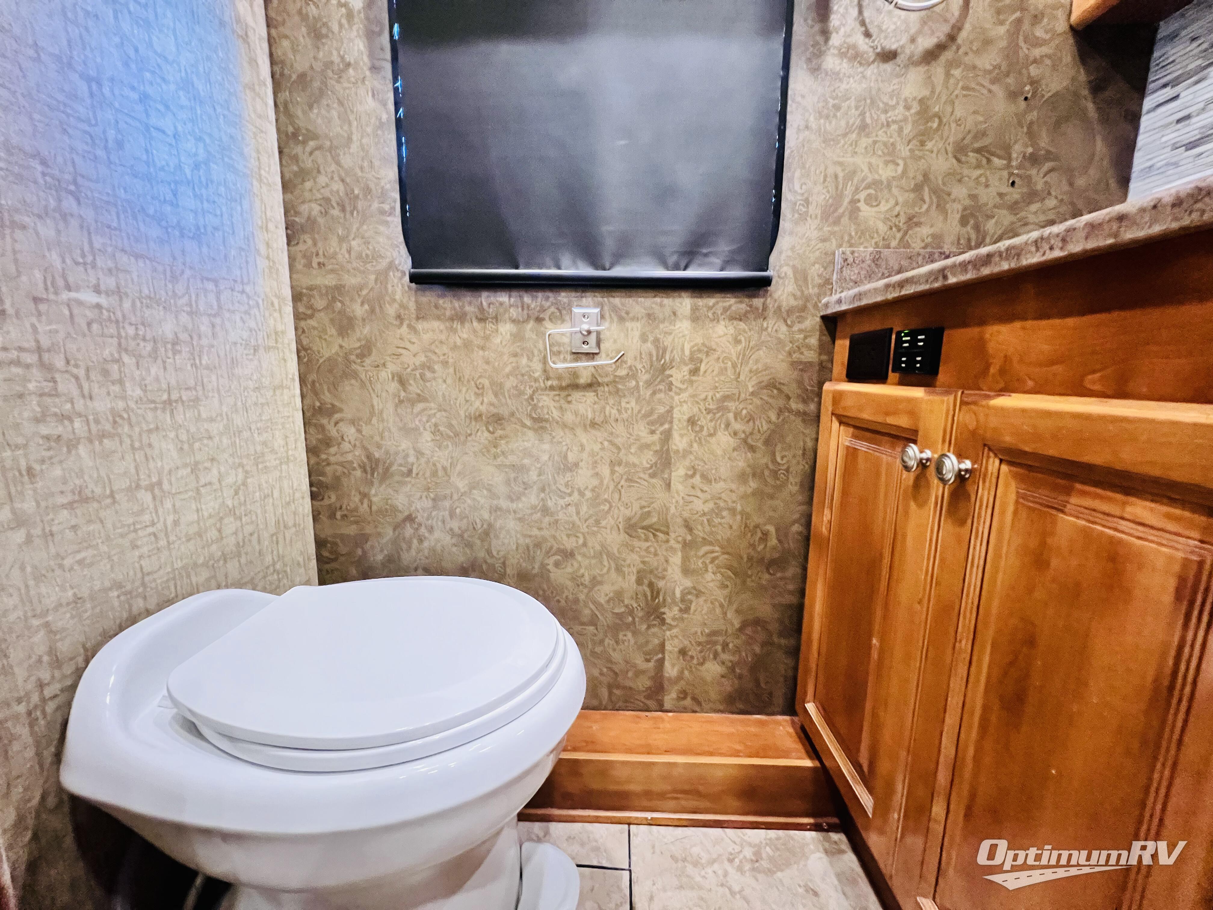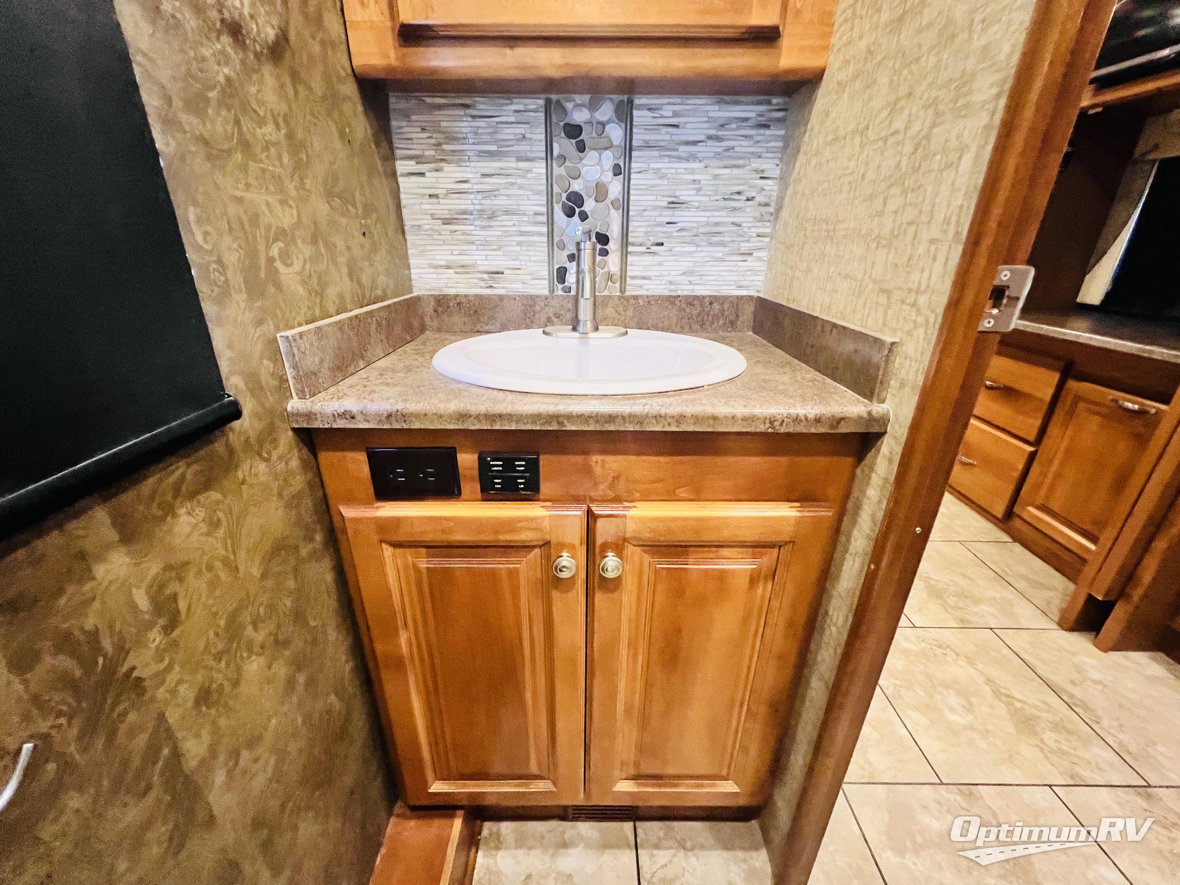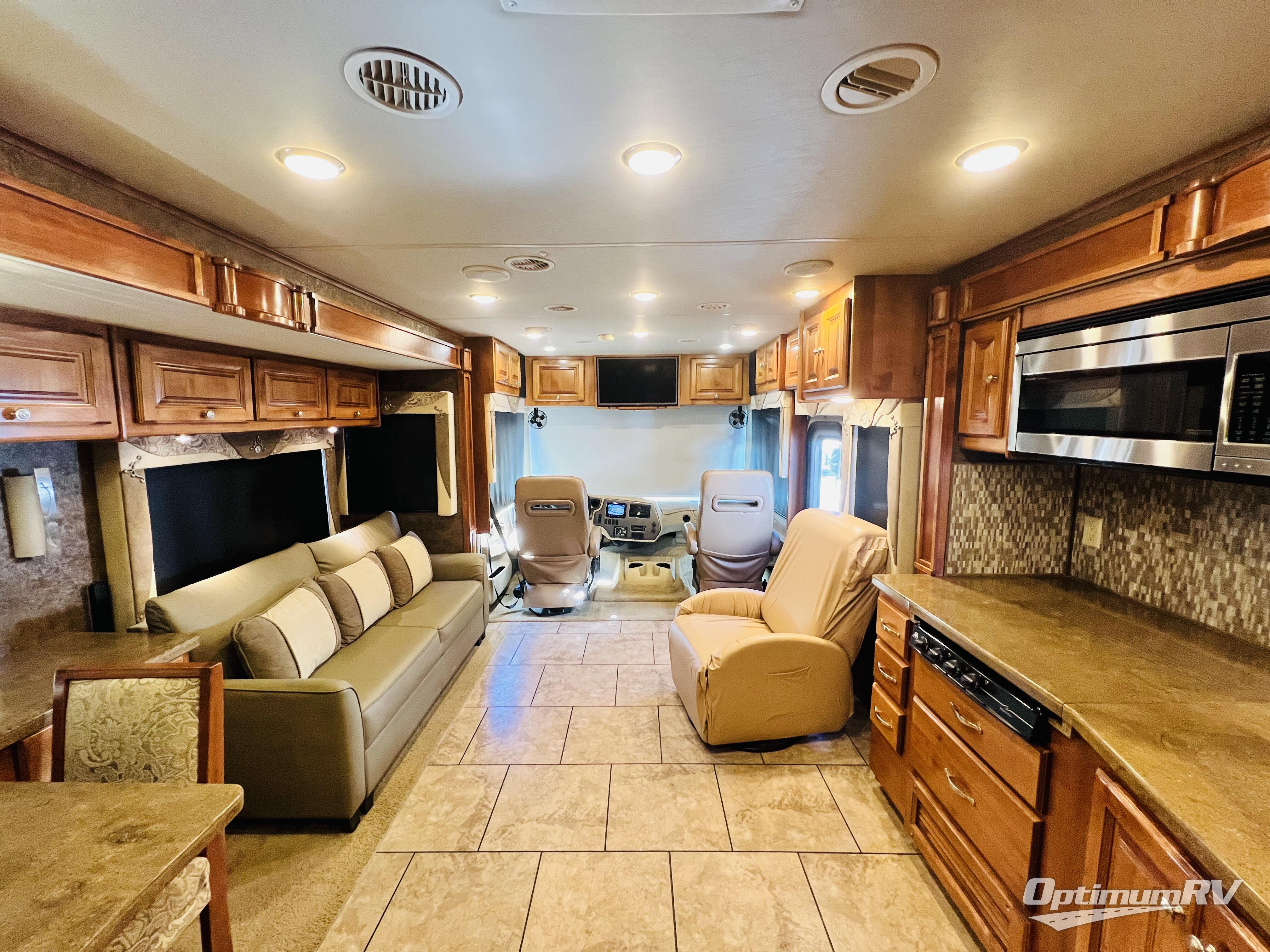 A large slide out on the driver's side has a sofa bed, a booth dinette and overhead cabinets. A standard TV with a pantry below is on an inside wall and the TV faces the front of the coach. In place of the booth dinette, you may choose a dinette with computer workstation.