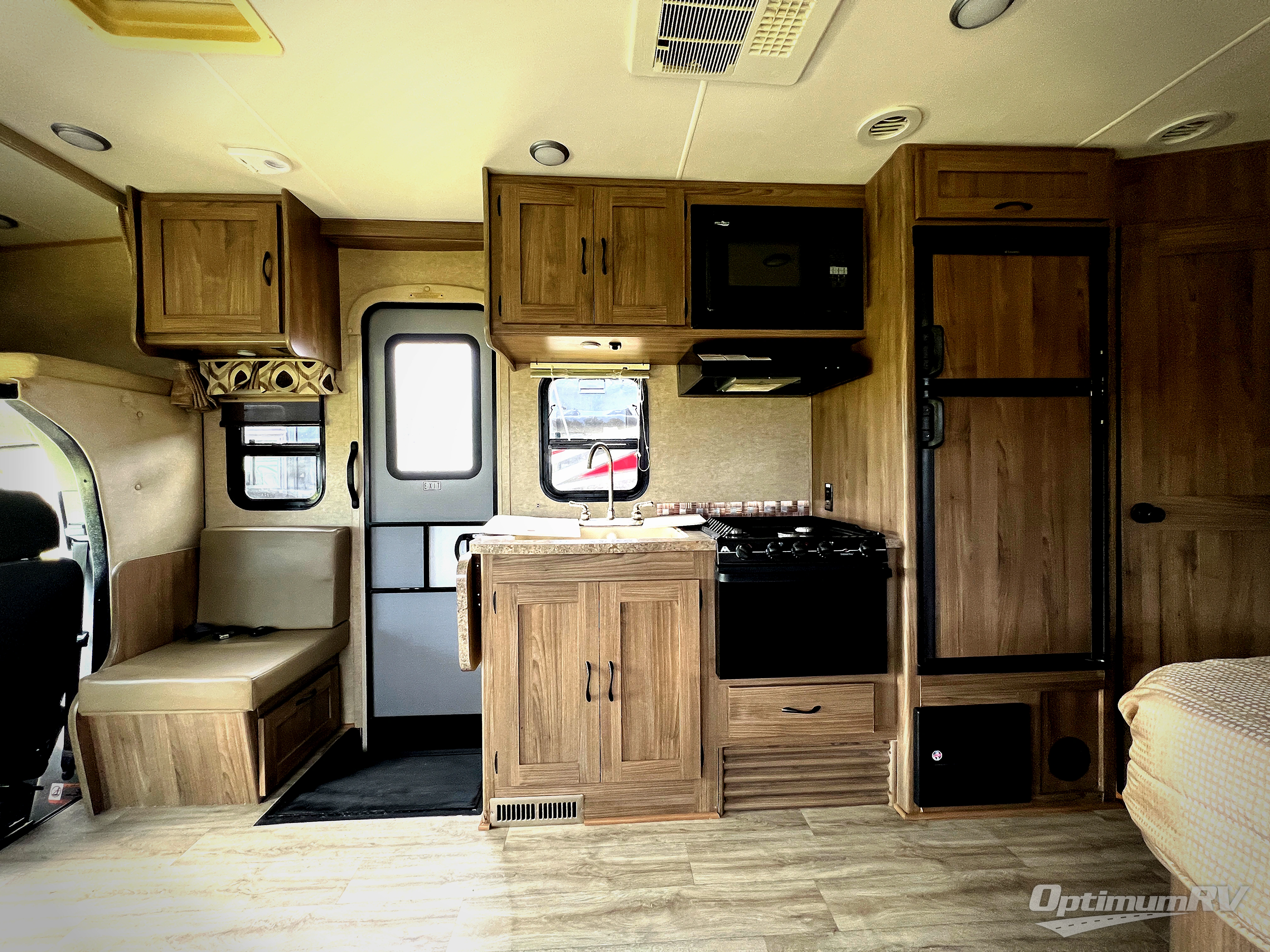 Along the passenger side just in front of the kitchen area there is a single seat with storage above, plus so much more!