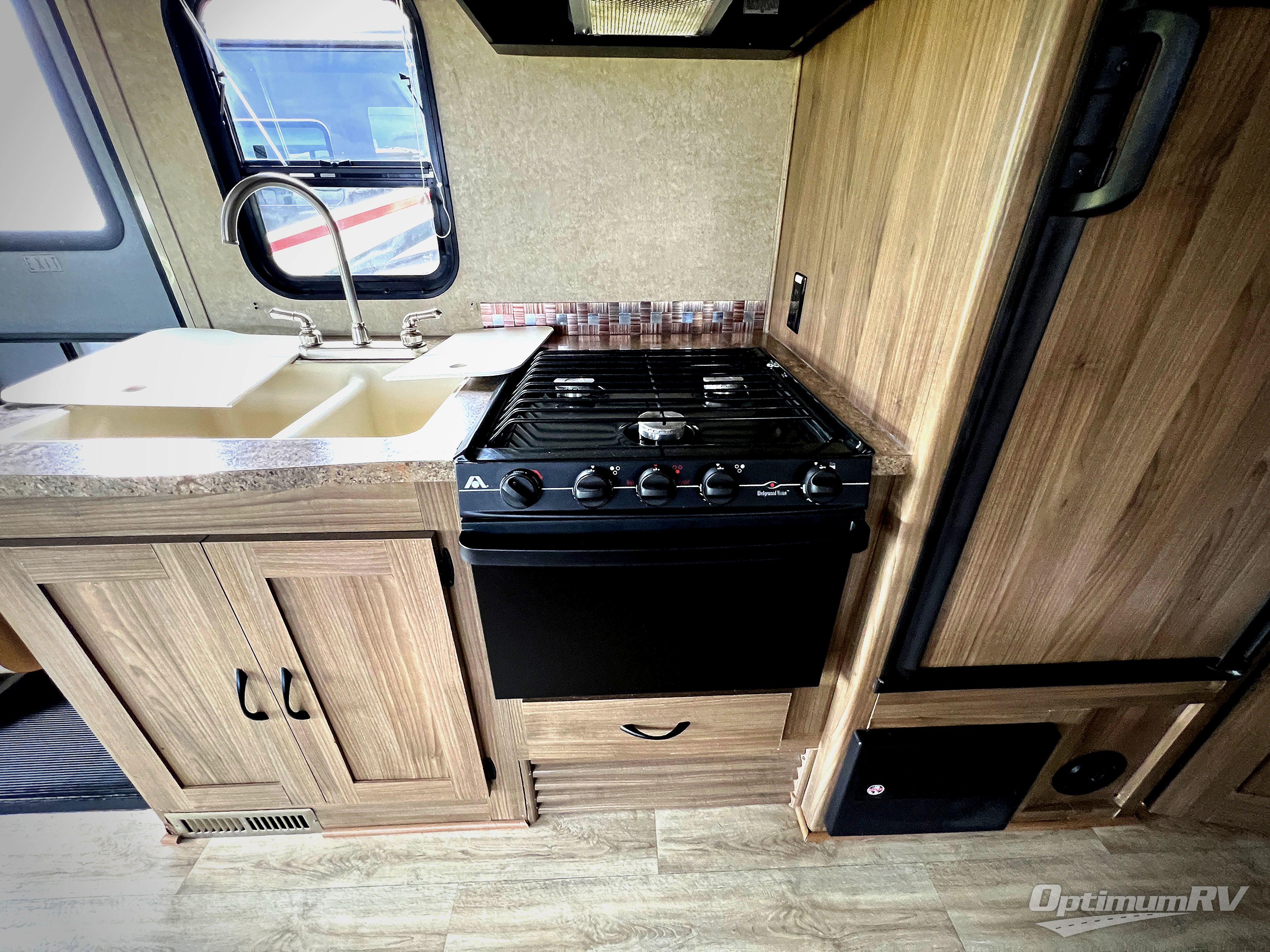 Step inside and take a look back at the open floor space created with a large slide out along the driver side. The slide features a u-shaped dinette, pantry, and queen size bed with shelf. You can also opt. for double recliners, or a sofa in place of the u-dinette if you wish.