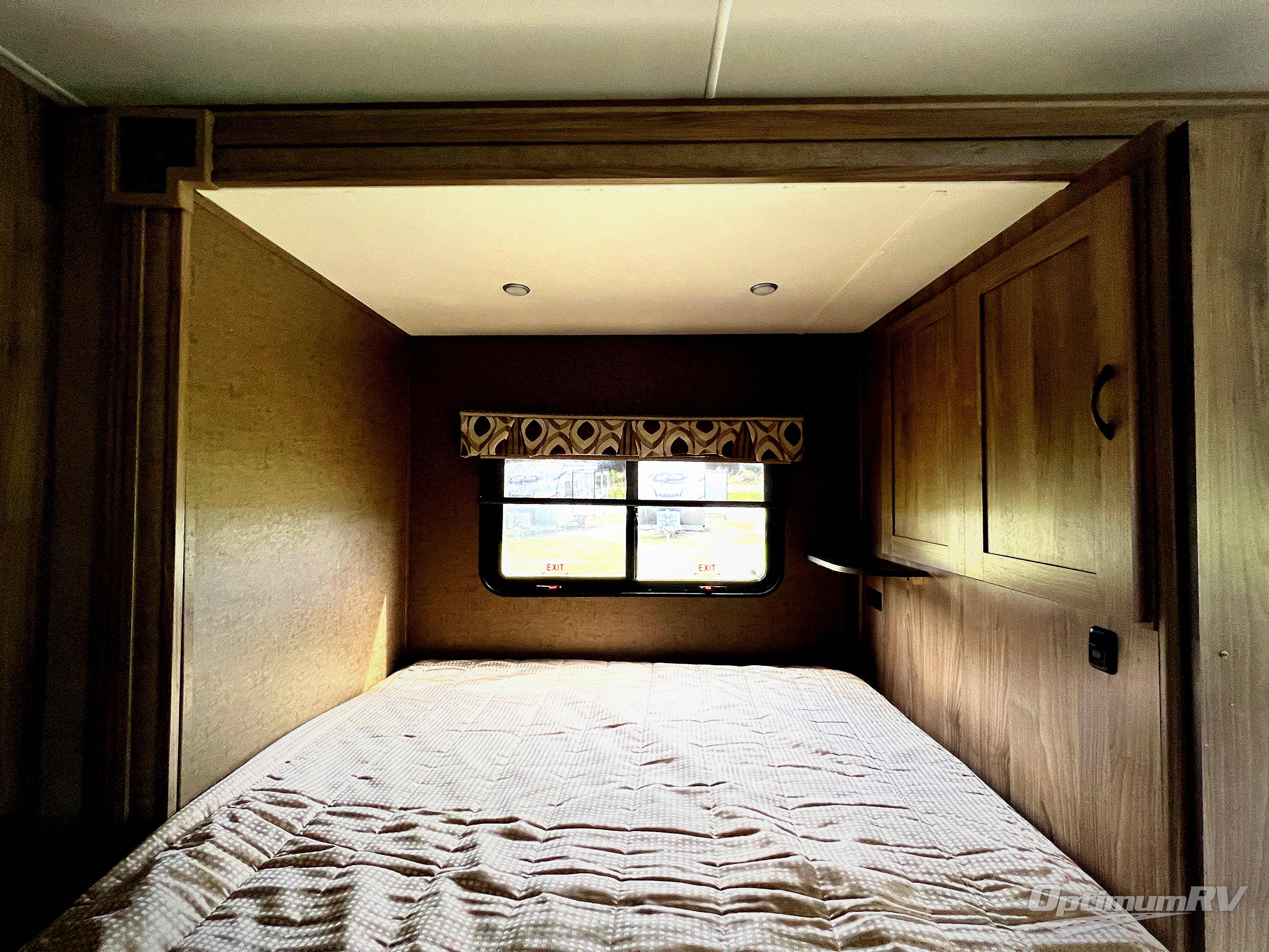 In the very rear there is plenty of clothing storage with a closet for hanging clothes, plus a linen cabinet just outside the rear corner bath. Enjoy the convenience of an on board full bath with a shower, toilet, and vanity with sink including overhead medicine cabinet.