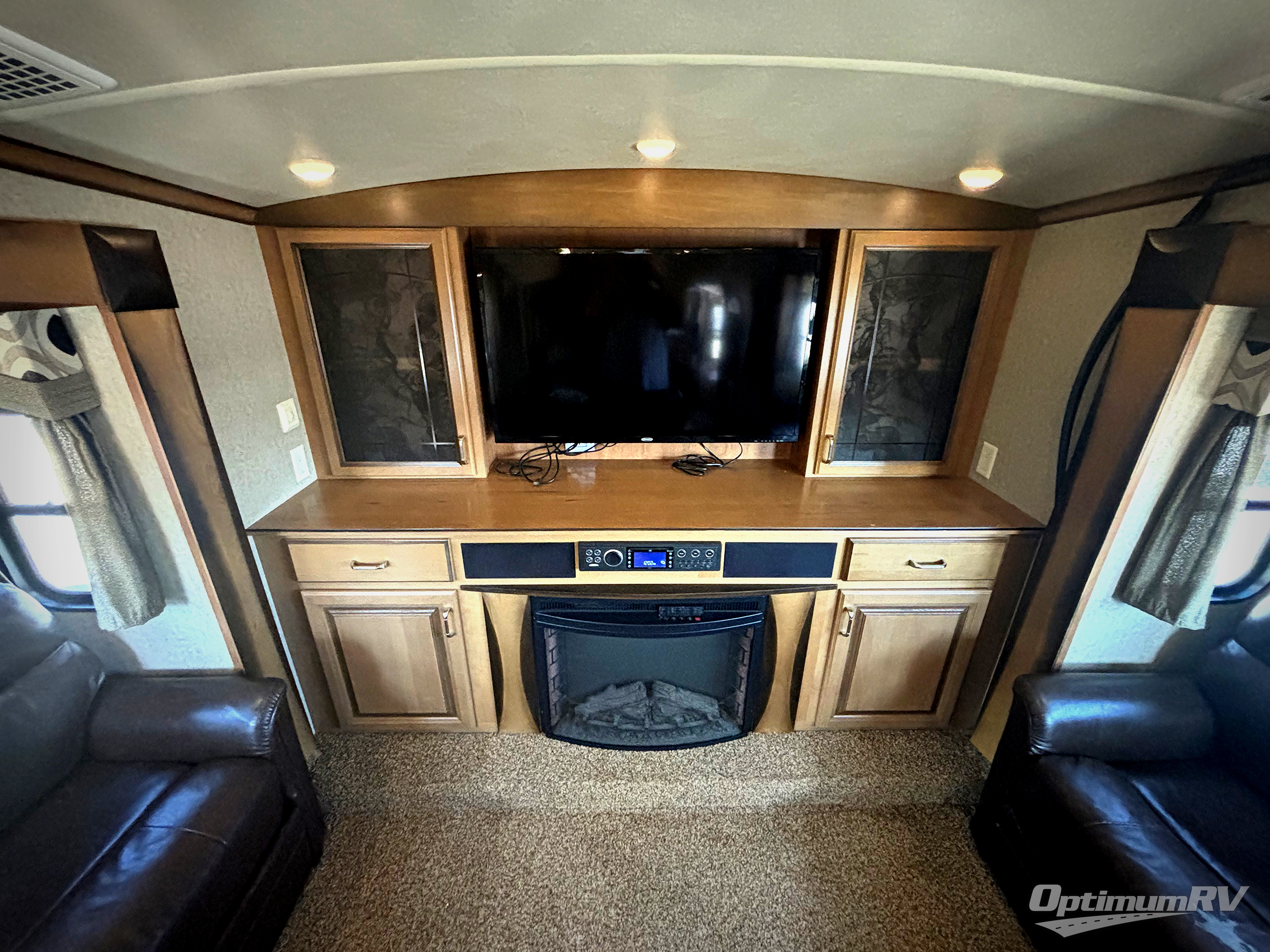 Inside the living room you will feel like you are home. There are double slides facing on another, each featuring a La-Z-Boy sofa, plus a love seat can be found along the inside wall for even more seating. This is a great gathering space with a full front wall entertainment center including a 48" TV and fireplace.