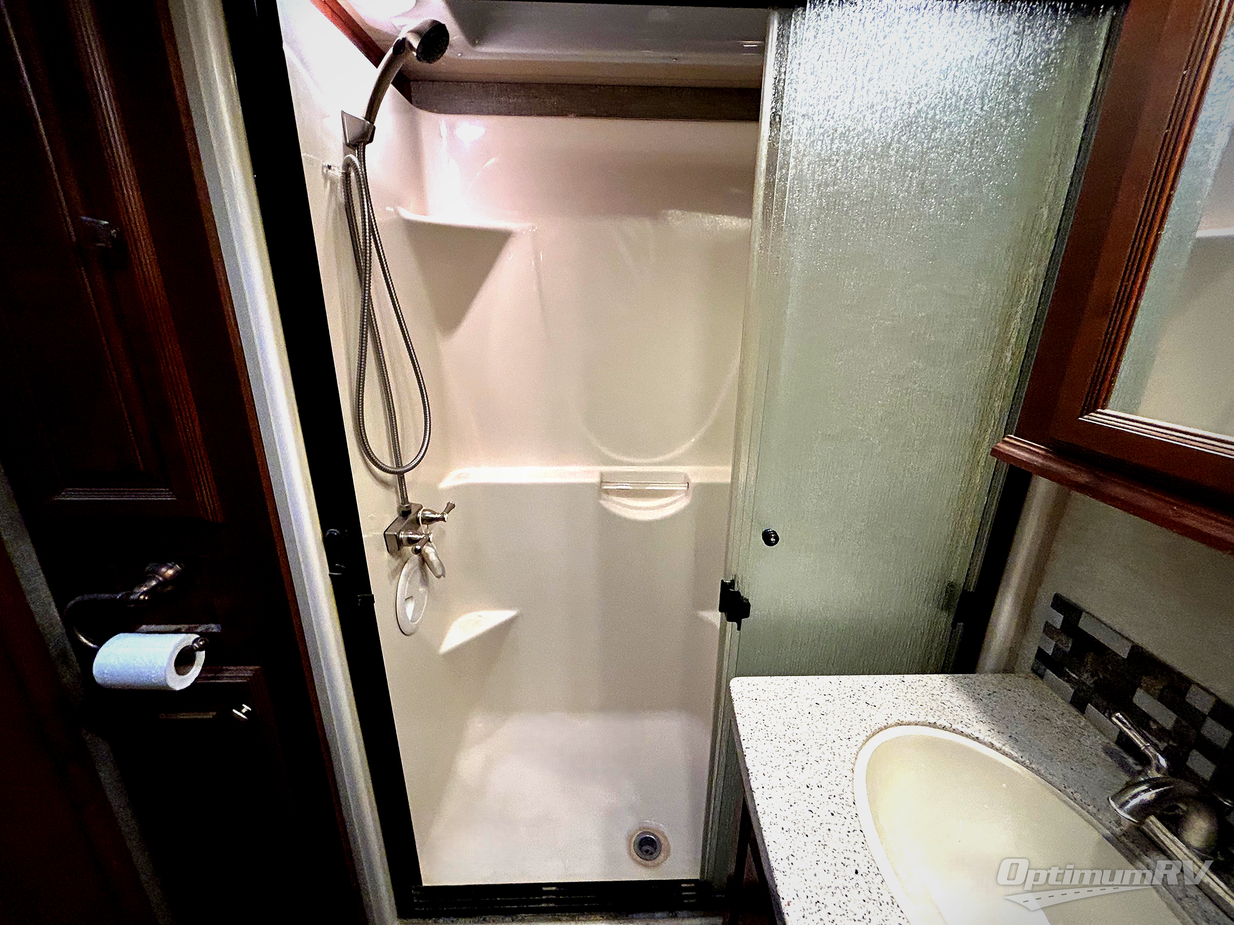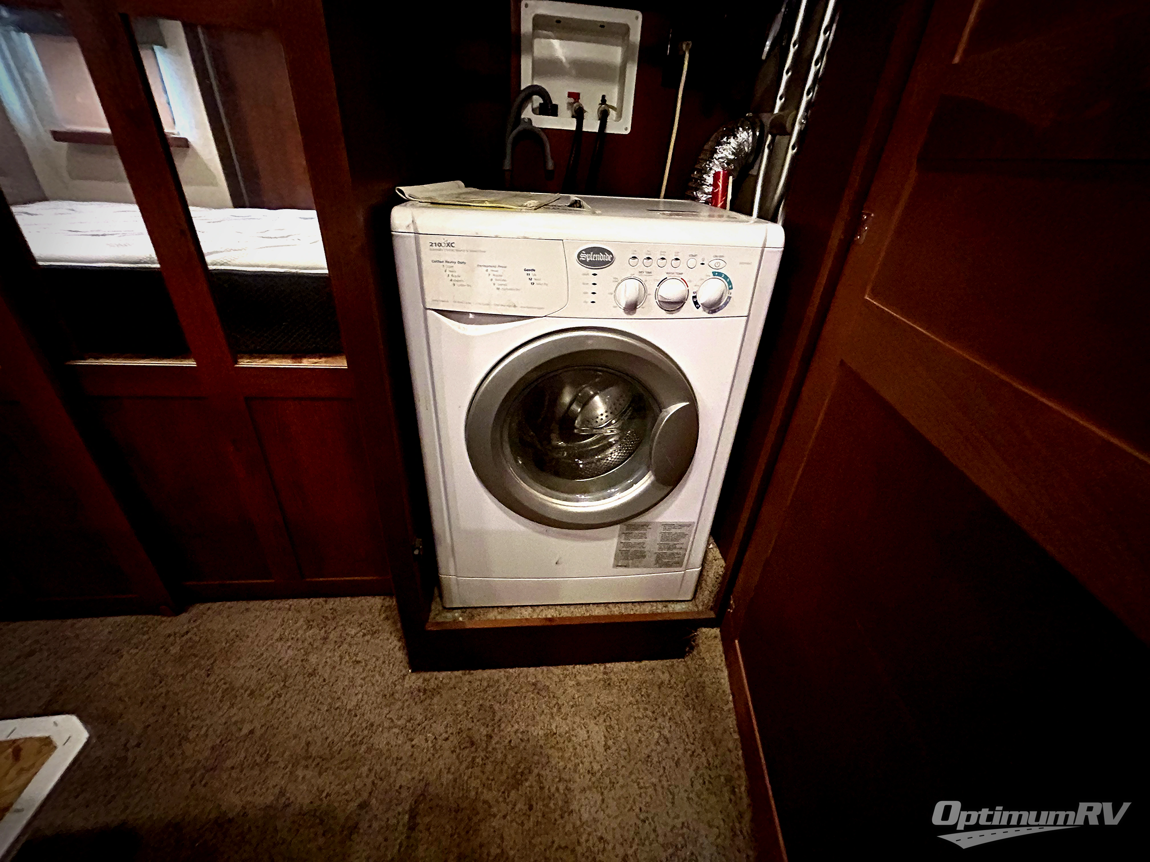 Head up the steps to the right of the main entry door and find a complete bath with shower including a seat, and a vanity with sink. There is also storage for linens and a toilet. There is a second sliding door in the bath that leads right into the front master bedroom where you will find a comfortable king size bed slide out, a dresser opposite along the curb side wall, and a front wall closet with sliding doors. For added convenience there is a washer/dryer prepped space so you can easily add the appliances, and so much more!