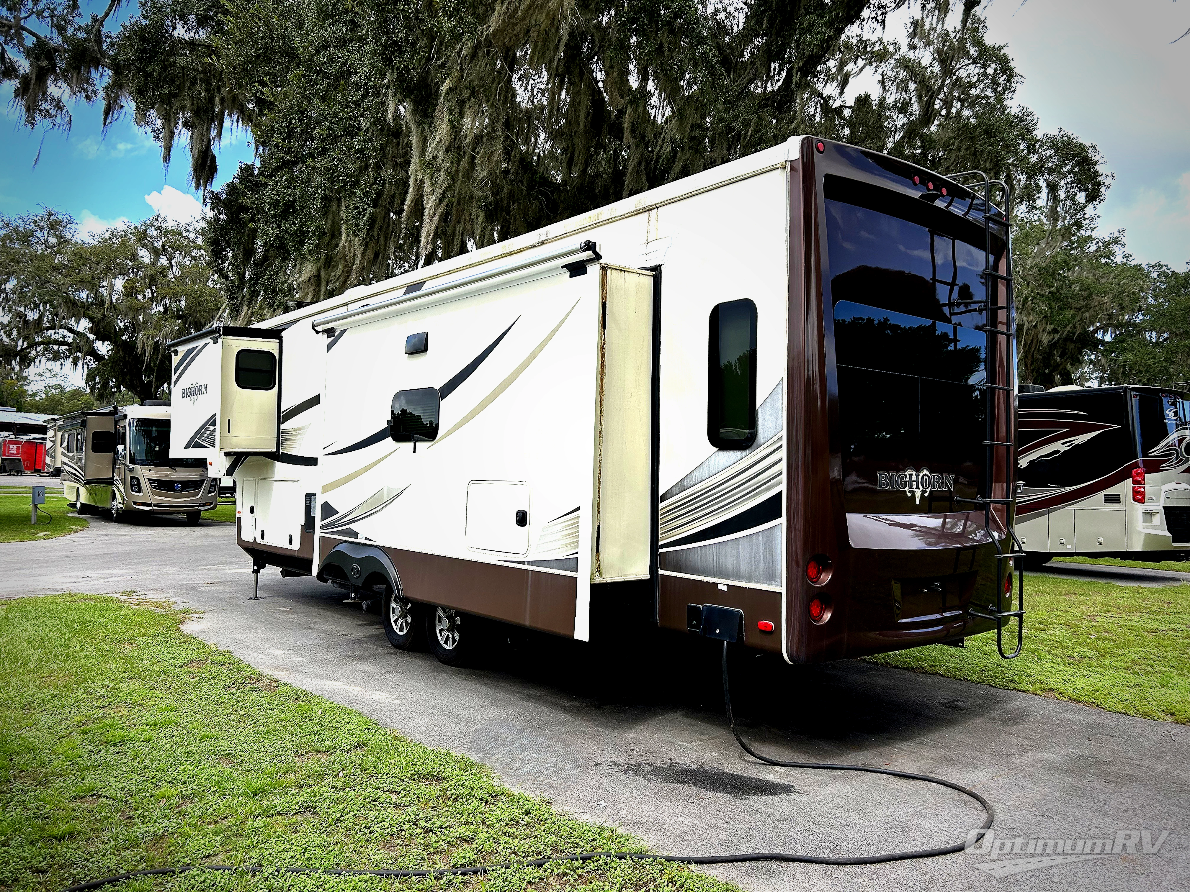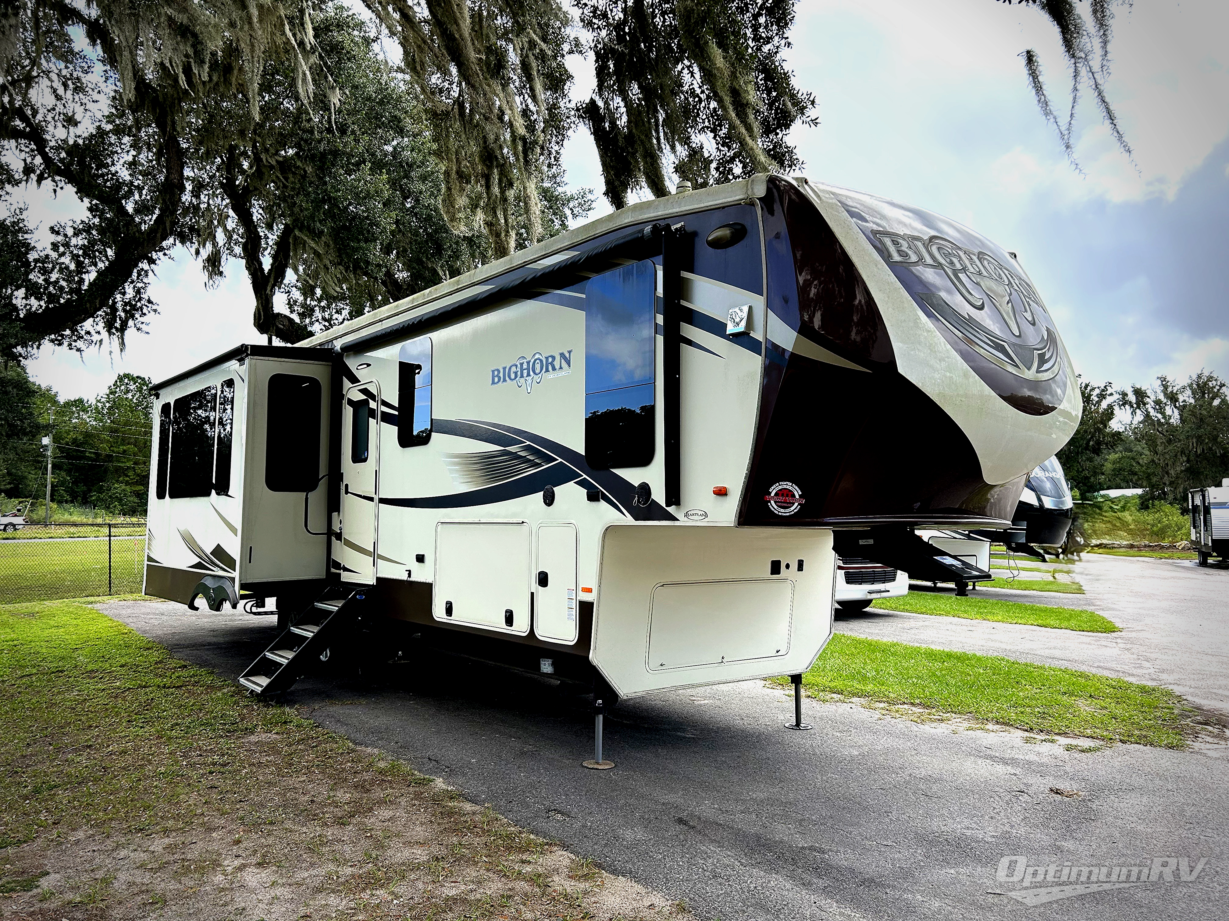 This Heartland Bighorn luxury fifth wheel model 3575EL will have you enjoying your every adventure! This model features a rear living layout, Mega tall slide outs, a convenient kitchen island, and a king size bed in the master, plus more!