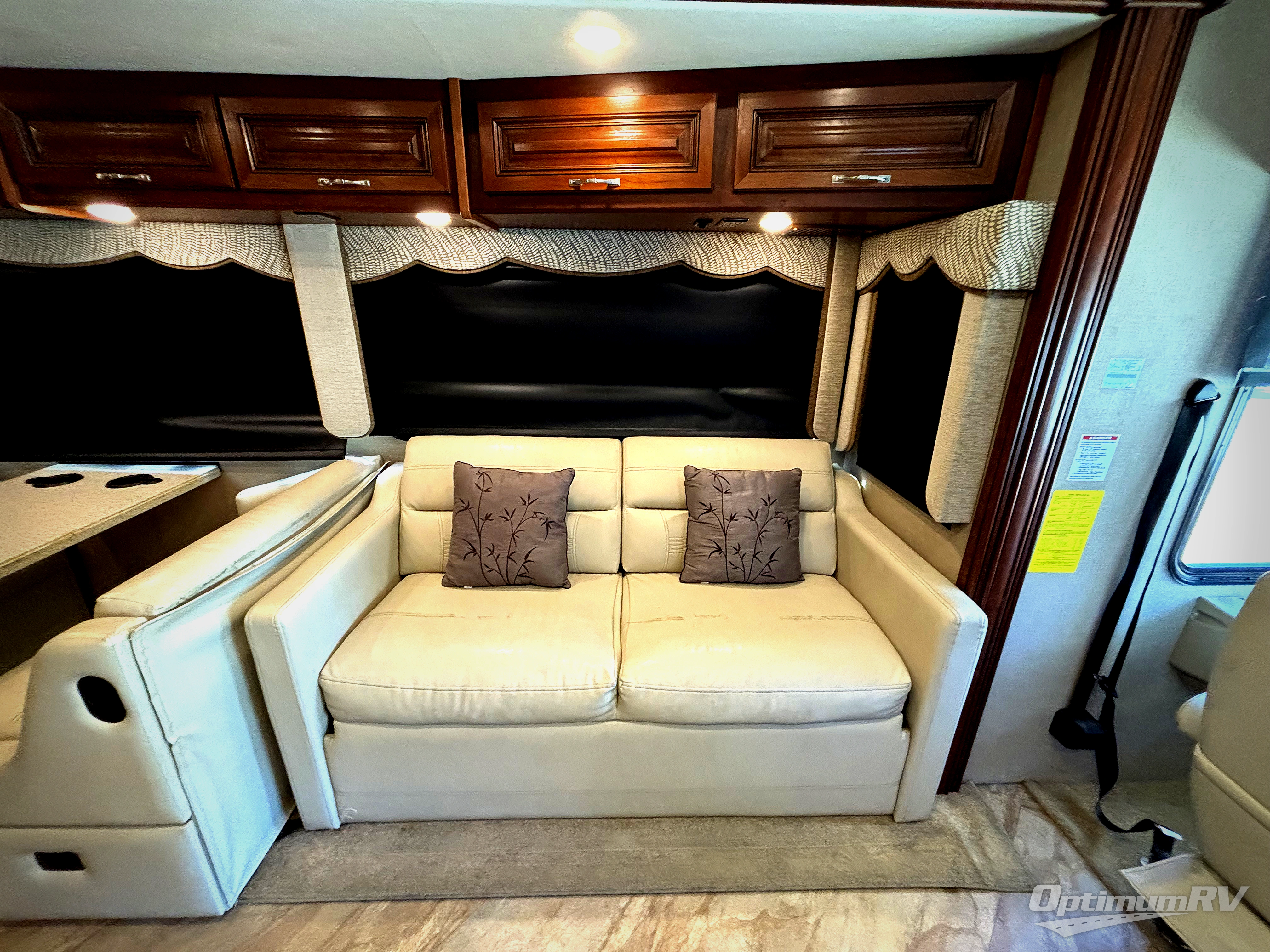 Step inside behind the front passenger captains seat and see just how comfortable traveling will be. There is a slide out sofa sleeper and booth dinette along the road side. Both seating pieces feature seat belts for safety of your back seat travelers, and both can easily be transformed into added sleeping space when needed as well.