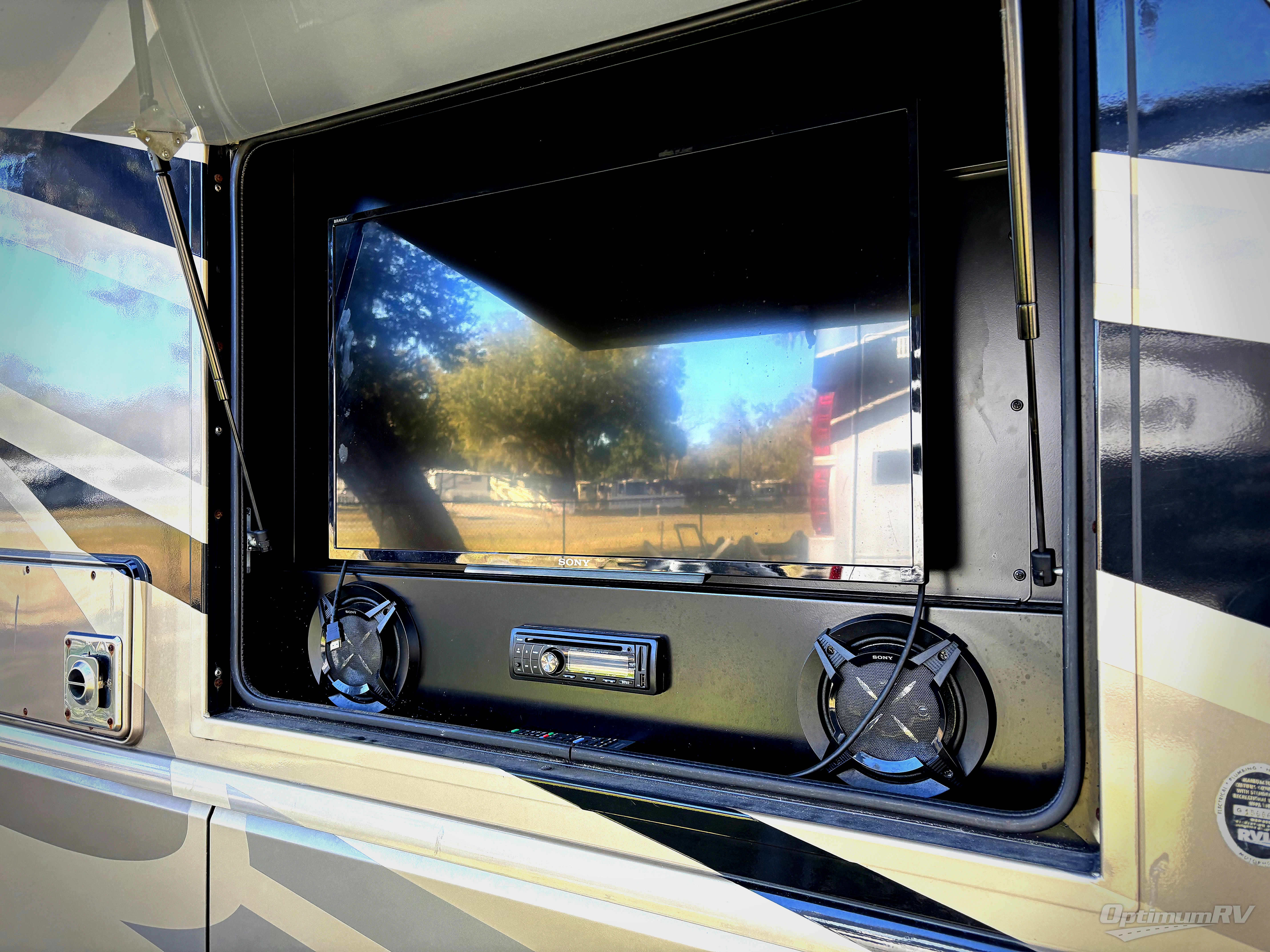 A 40" LED TV is along the interior wall mid coach for your enjoyment, and you can also add a fireplace beneath if you wish.