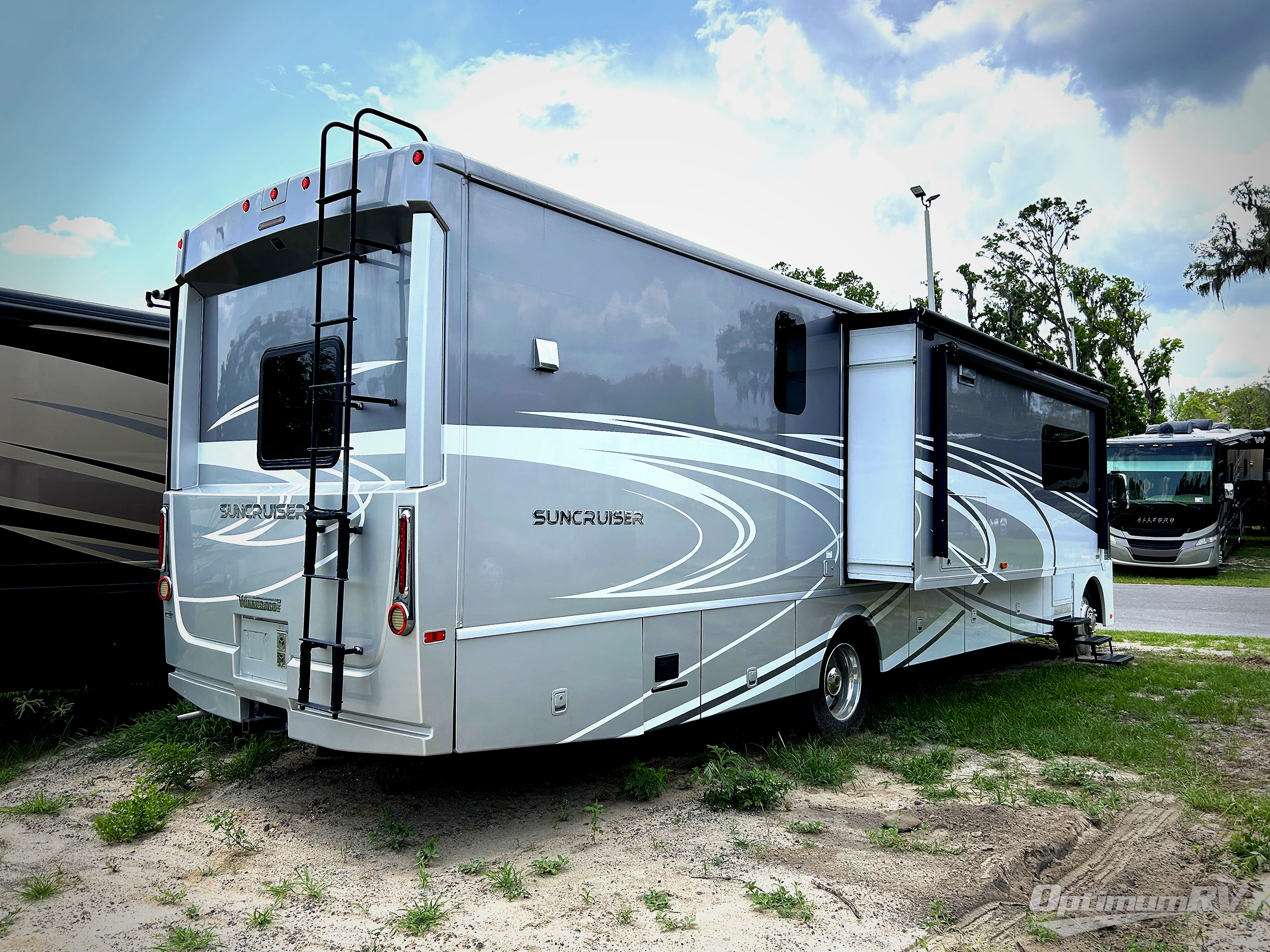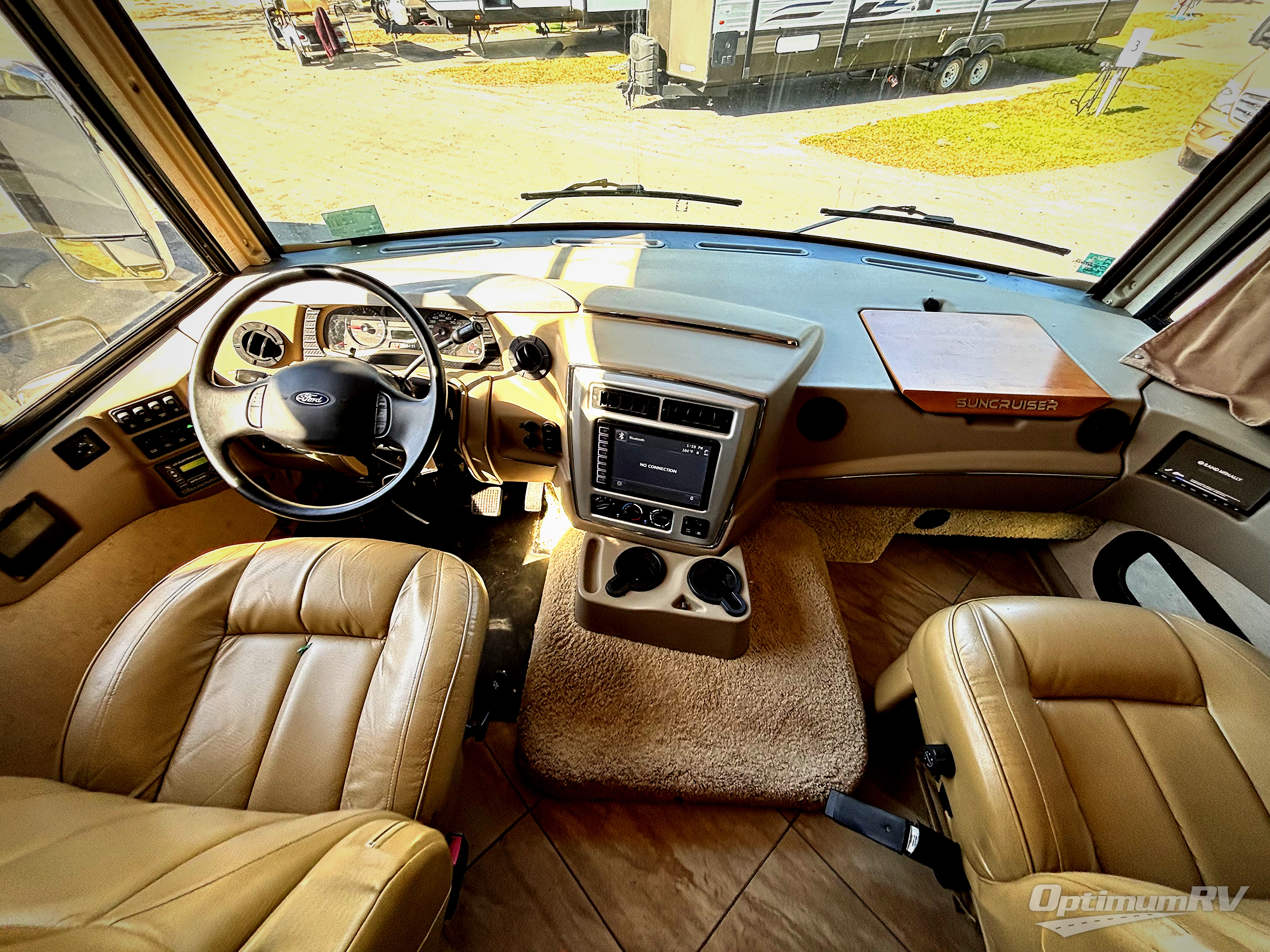 Hit the road in this Suncruiser class A gas coach by Itasca. Model 38Q features triple slide outs for added interior space, a fireplace, a split bath, and recline/incline king size bed!